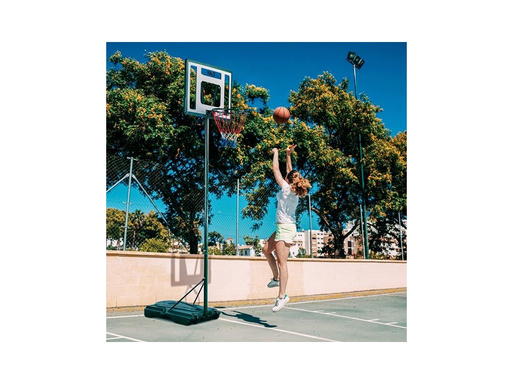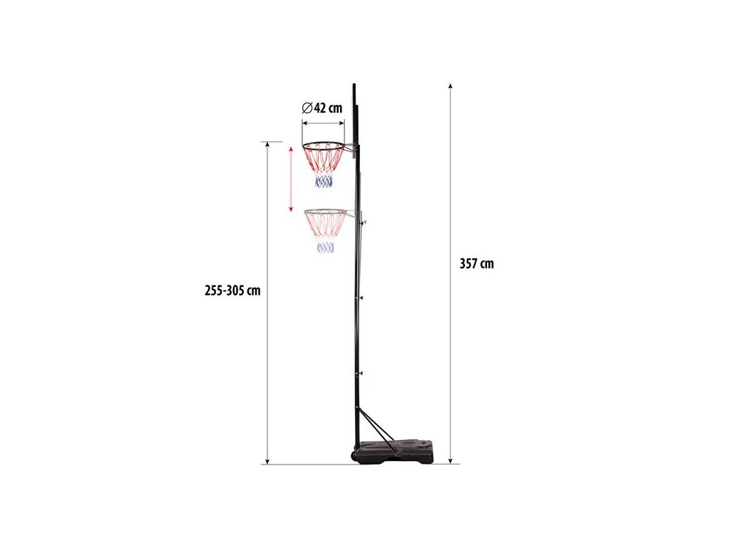 Díky možnosti nastavení výšky se koš dokonale přizpůsobí vašim potřebám. Ať už jste začátečník, nebo zkušený šampion, náš koš vám poskytne dokonalé nastavení pro maximální využití vašeho potenciálu. Změna výšky se provádí uvolněním 2 šroubů s ergonomickou hlavou a následným nastavením teleskopického, trojdílného sloupu. Výšku obruče lze nastavit do 5ti úrovní v rozsahu od 2,55 do 3,05 metru.