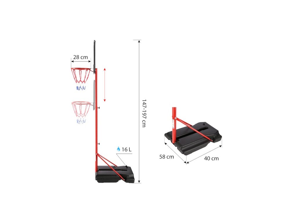 - Výška obruče od země: 1,07 a 1,57 m