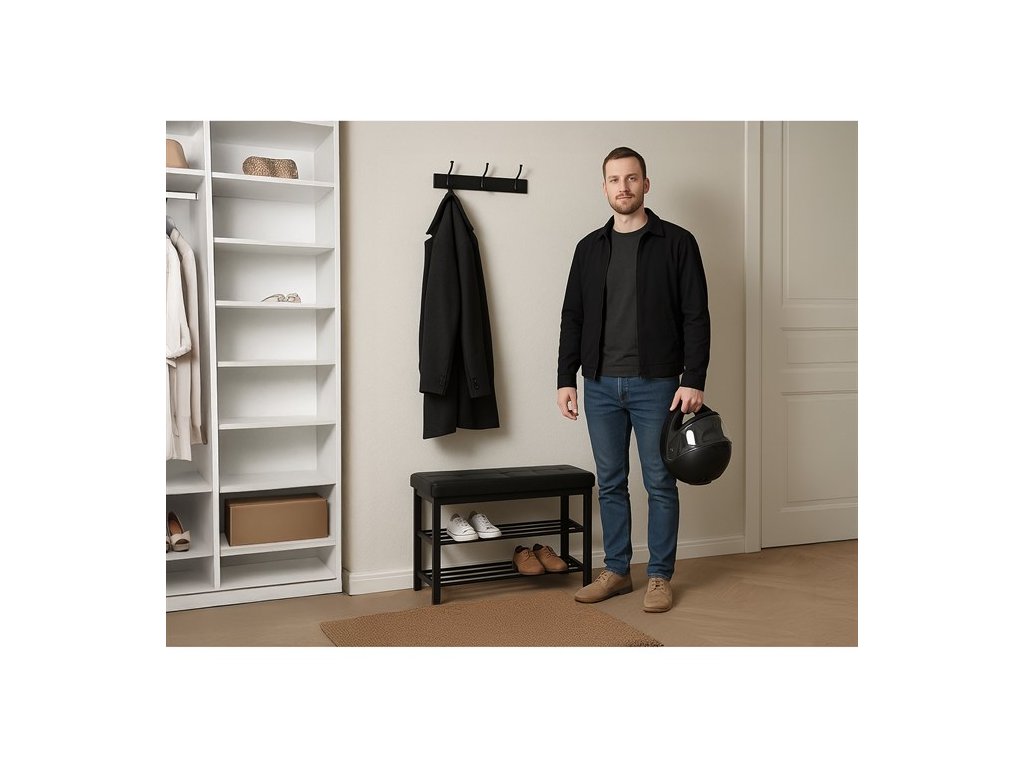 - Polstrované sedátko v černém provedení pro pohodlné obouvání
