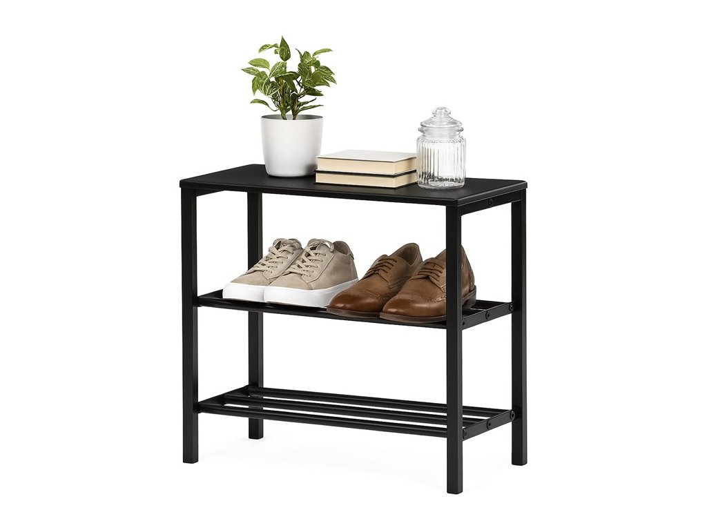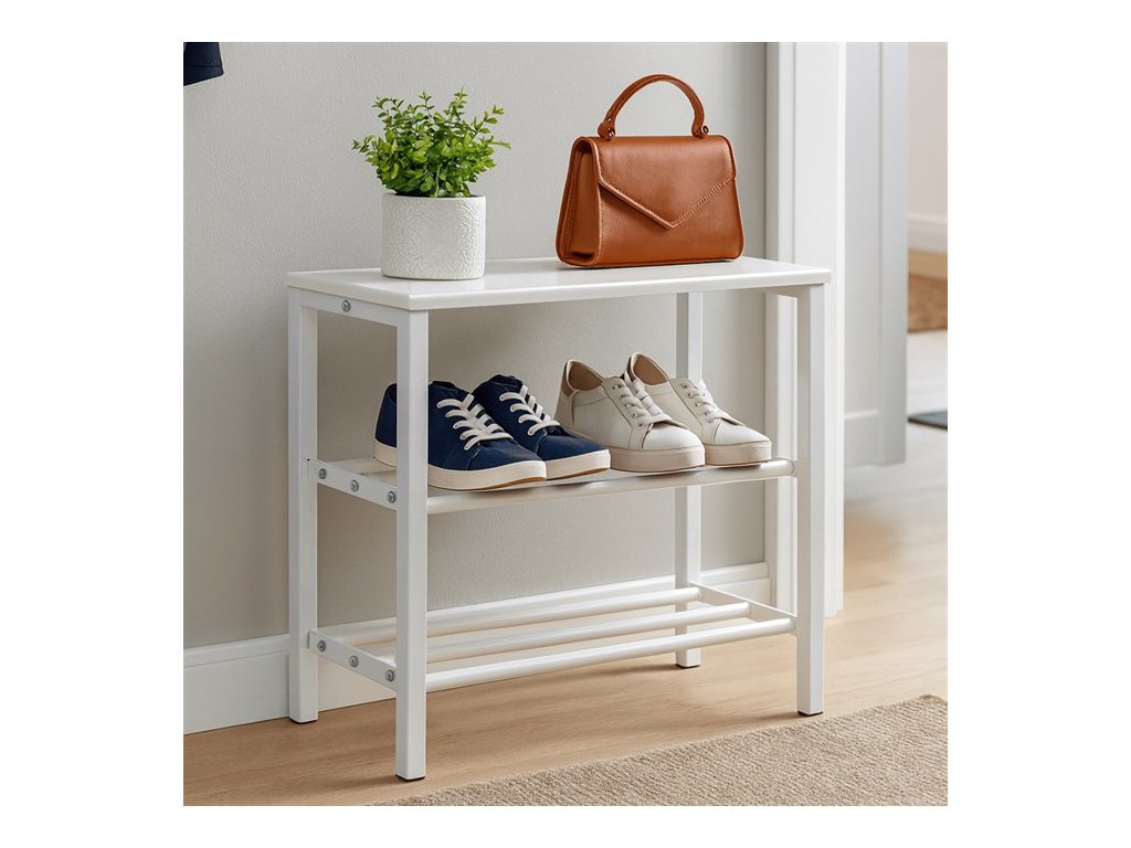 Stylový botník SPIRIT je praktickým pomocníkem, který spojuje funkčnost s elegantním designem. Pevná kovová konstrukce zajišťuje stabilitu a dlouhou životnost, takže zvládne každodenní používání. Dvě prostorné police poskytují dostatek místa pro uložení několika párů obuvi, zatímco horní desku z MDF lze využít na dekorace, tašky či drobné předměty. Díky minimalistickému vzhledu se botník snadno přizpůsobí moderním i klasickým interiérům a pomůže vám udržet předsíň vždy uspořádanou.