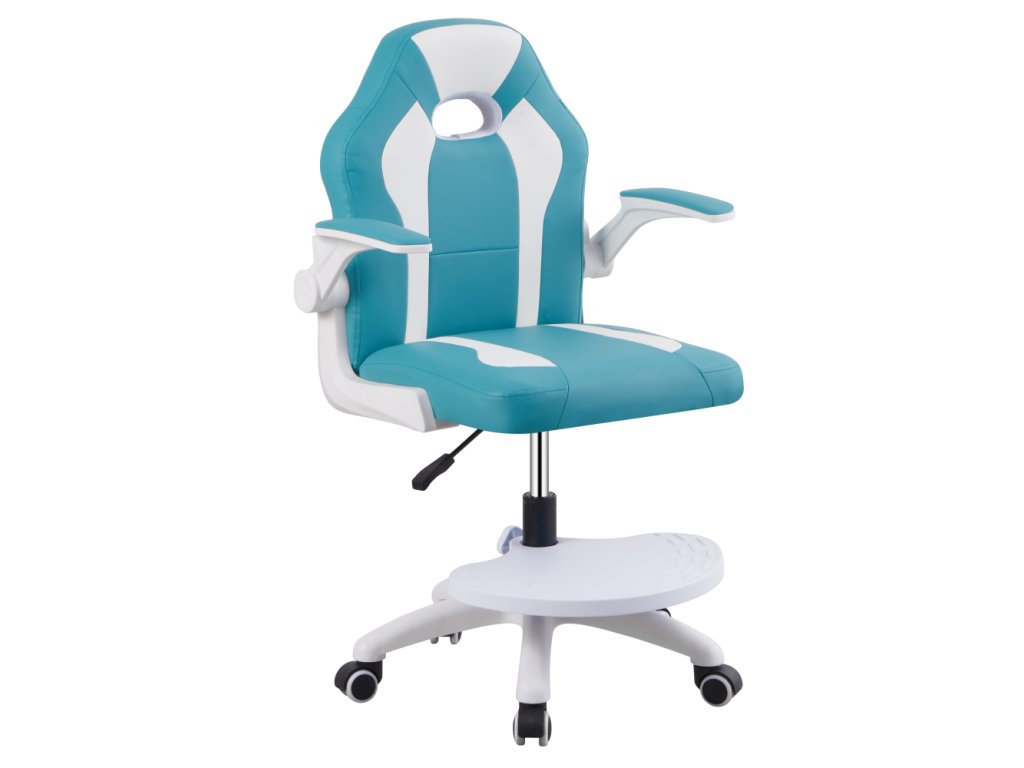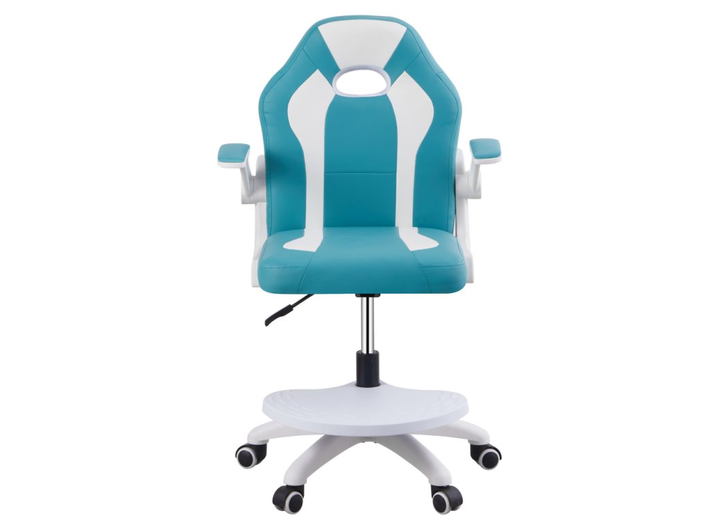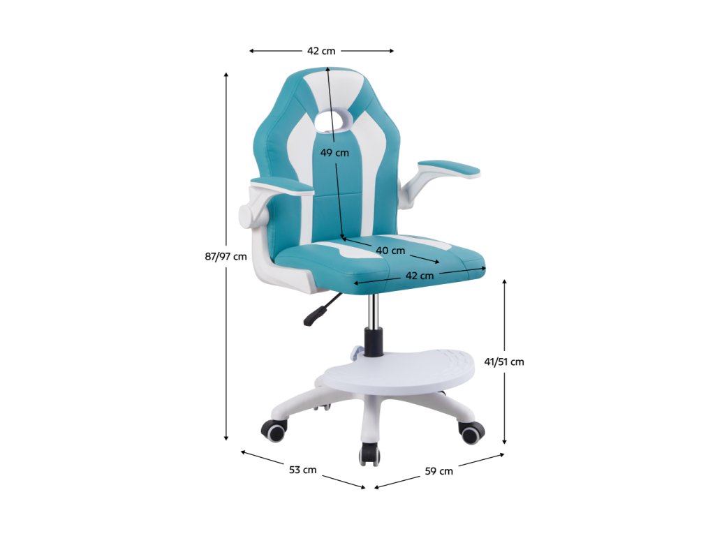 Dětská otočná židle MIKE přináší kombinaci moderního designu, praktických funkcí a vysokého komfortu při sezení. Díky modrému čalounění z kvalitní ekokůže a bílé plastové konstrukci působí svěže a hravě, takže skvěle zapadne do dětského pokoje.