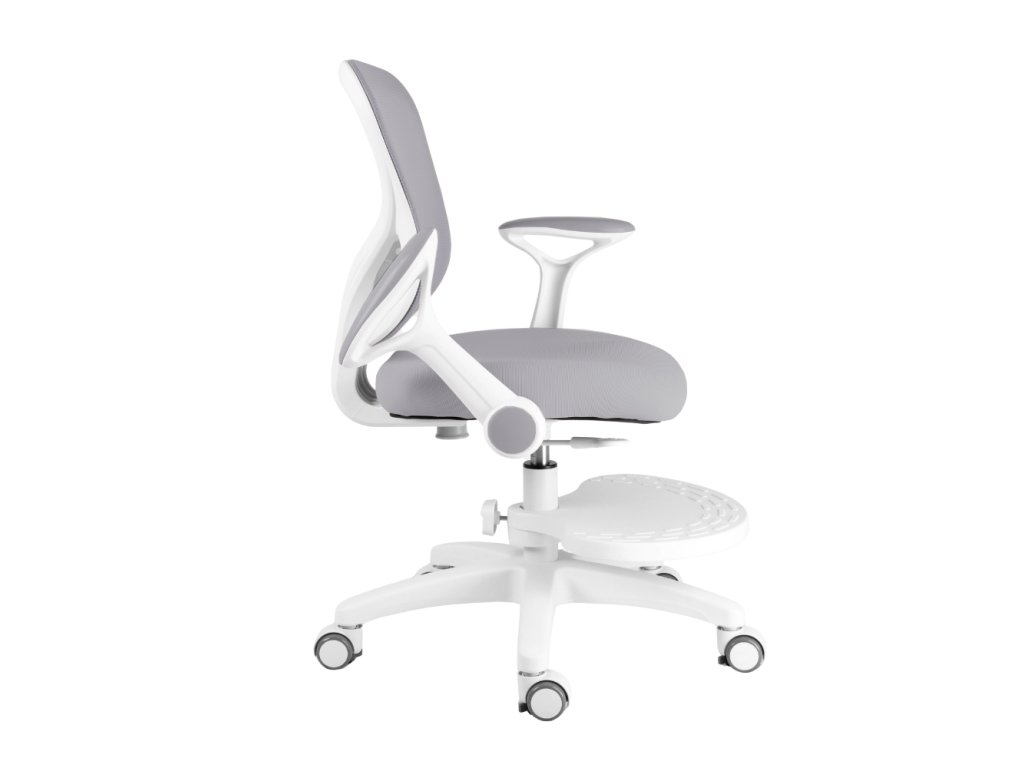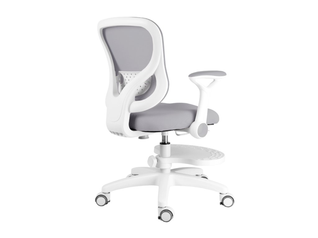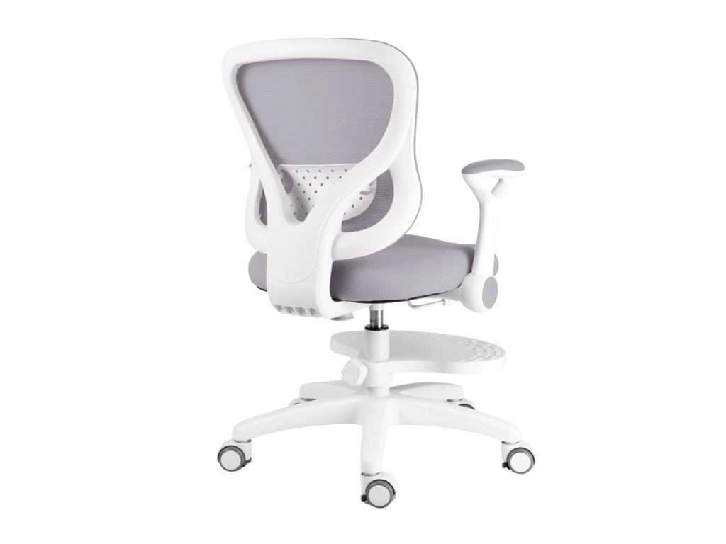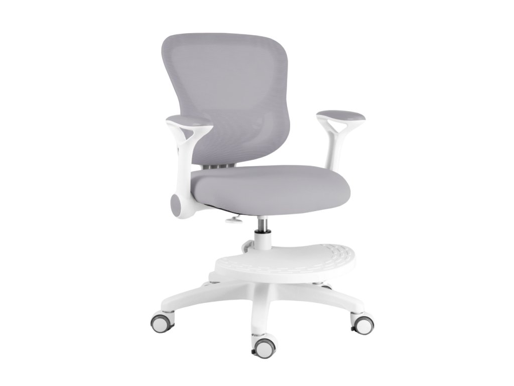 KORI vyniká nastavitelným sedákem a hloubkově posuvným opěradlem, díky čemuž lze snadno upravit hloubku sedu i výšku sezení. Dítě tak vždy dosáhne správného kontaktu se zádovou opěrkou, která je navíc doplněna flexibilní bederní opěrkou pro podporu přirozeného zakřivení páteře. Výškově nastavitelná a otočná podnožka pomáhá zejména menším dětem k ergonomicky správnému sedu, zatímco sklopné a omyvatelné područky zpříjemňují každodenní používání.