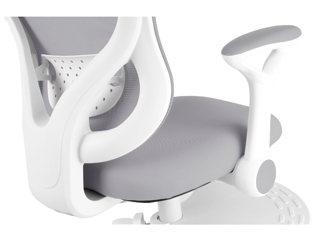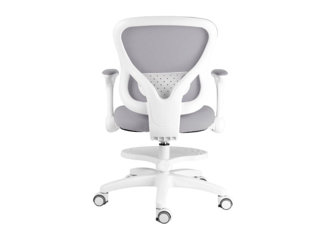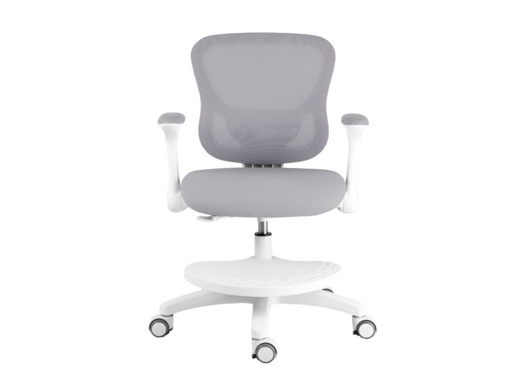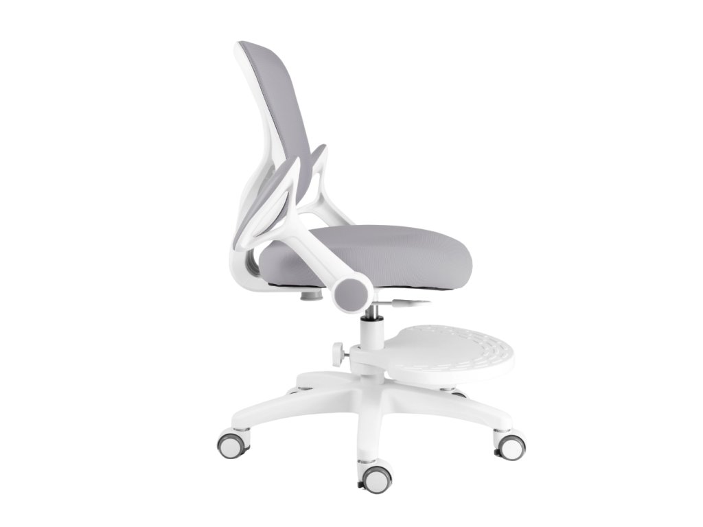 KORI vyniká nastavitelným sedákem a hloubkově posuvným opěradlem, díky čemuž lze snadno upravit hloubku sedu i výšku sezení. Dítě tak vždy dosáhne správného kontaktu se zádovou opěrkou, která je navíc doplněna flexibilní bederní opěrkou pro podporu přirozeného zakřivení páteře. Výškově nastavitelná a otočná podnožka pomáhá zejména menším dětem k ergonomicky správnému sedu, zatímco sklopné a omyvatelné područky zpříjemňují každodenní používání.