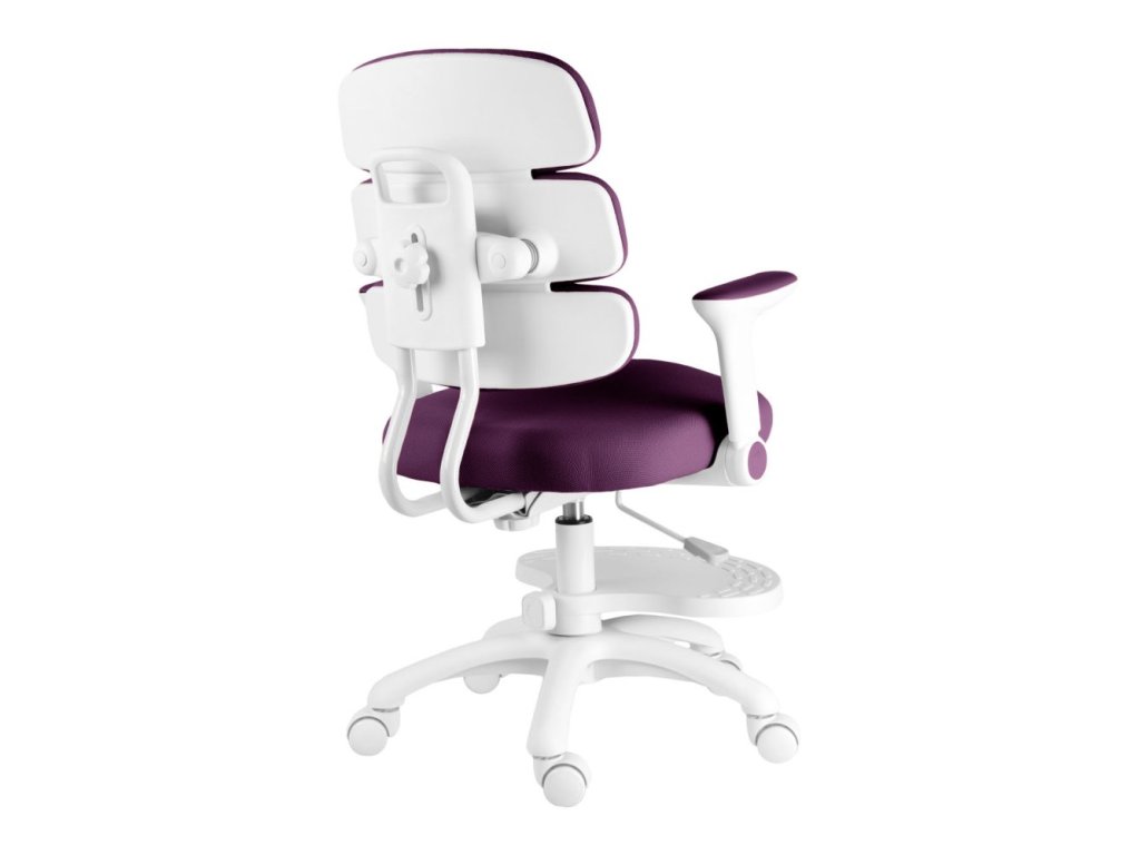 Díky výškově nastavitelné opěrce na nohy a sklápěcím područkám s možností demontáže se židle snadno přizpůsobí růstu dítěte i různým pracovním potřebám. Stabilitu zaručuje pevný kříž z tvrzeného plastu s pogumovanými kolečky o průměru 50 mm, která jsou šetrná k podlaze a vybavena automatickou brzdou aktivující se při zatížení.