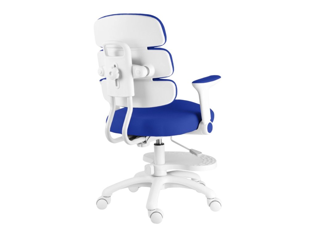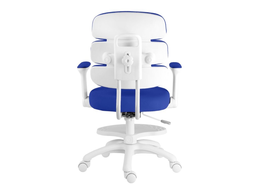 Díky výškově nastavitelné opěrce na nohy a sklápěcím područkám s možností demontáže se židle snadno přizpůsobí růstu dítěte i různým pracovním potřebám. Stabilitu zaručuje pevný kříž z tvrzeného plastu s pogumovanými kolečky o průměru 50 mm, která jsou šetrná k podlaze a vybavena automatickou brzdou aktivující se při zatížení.