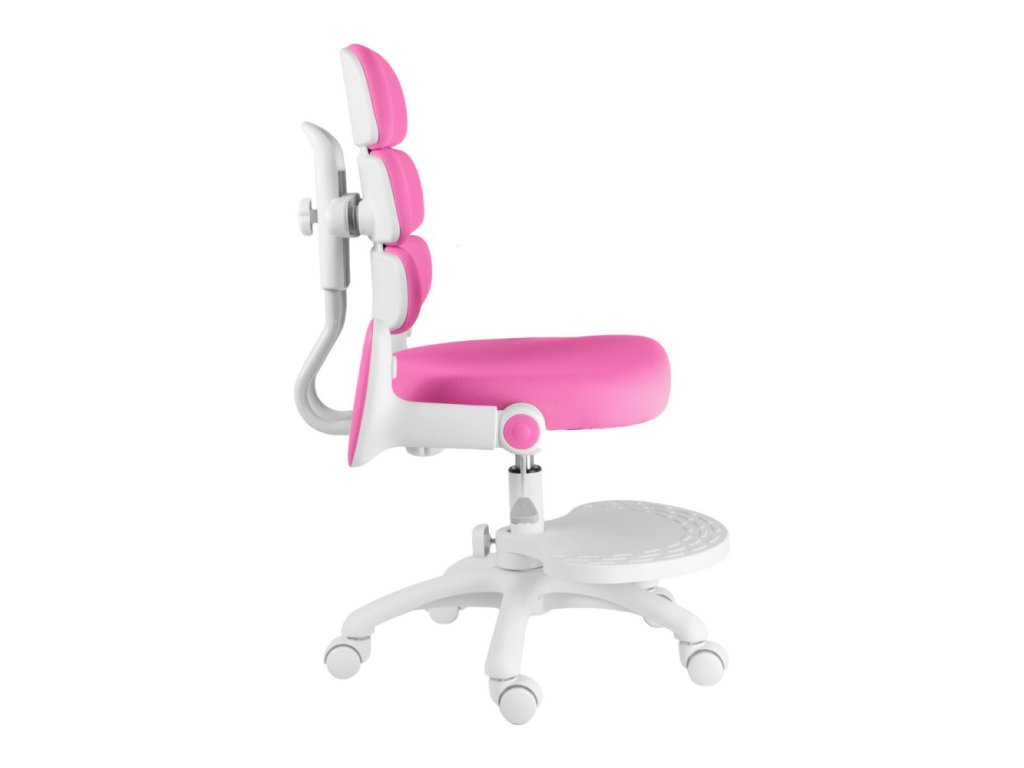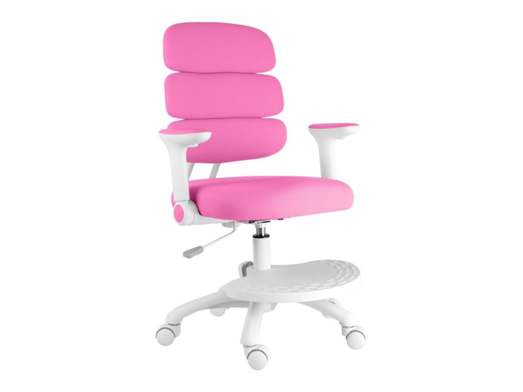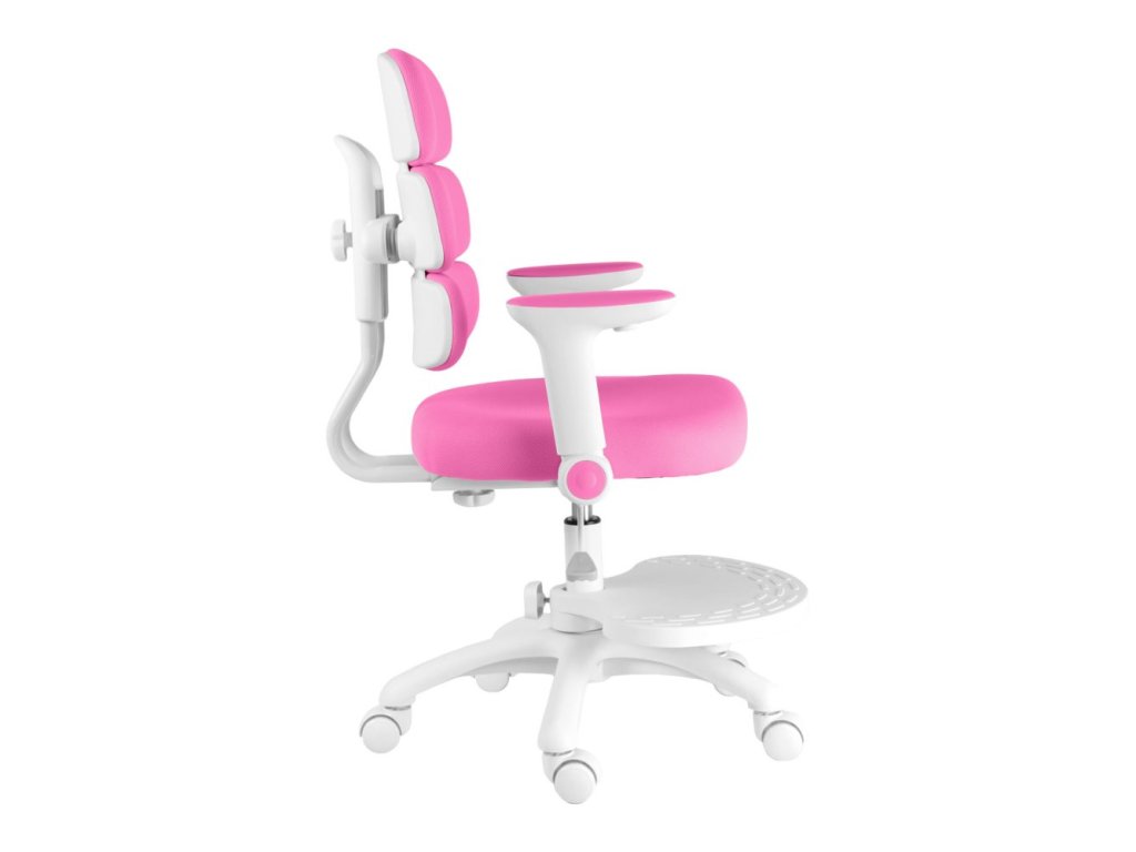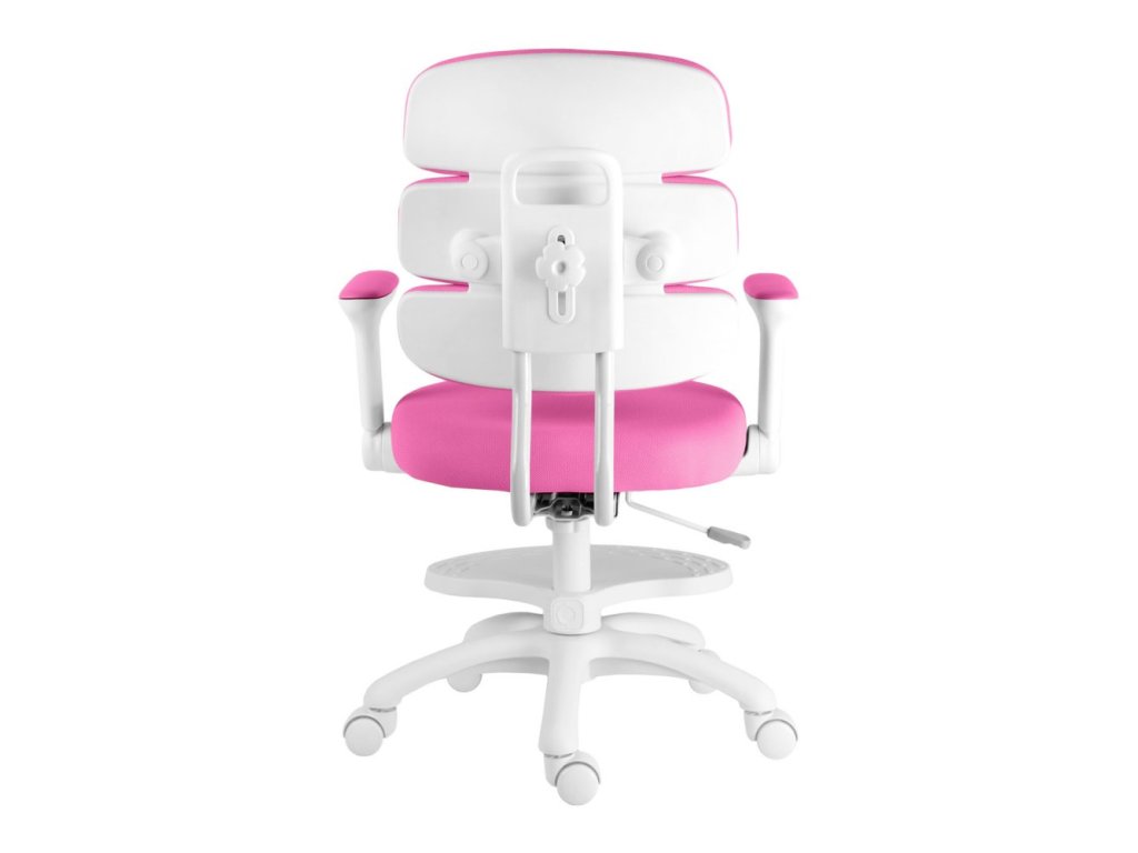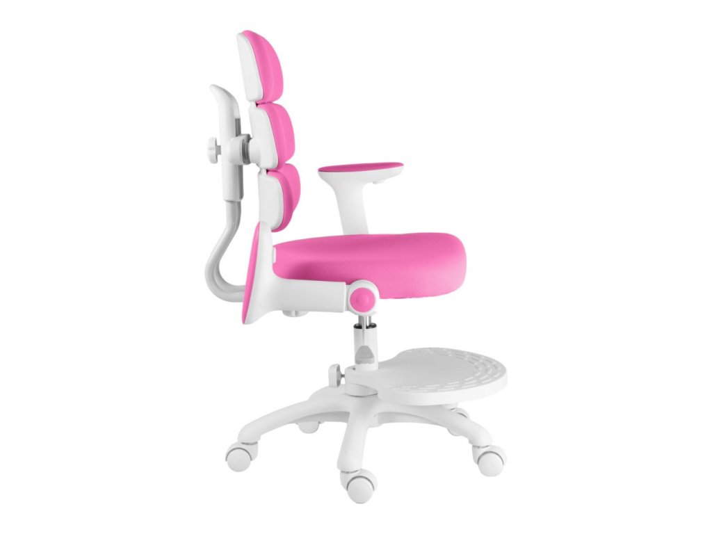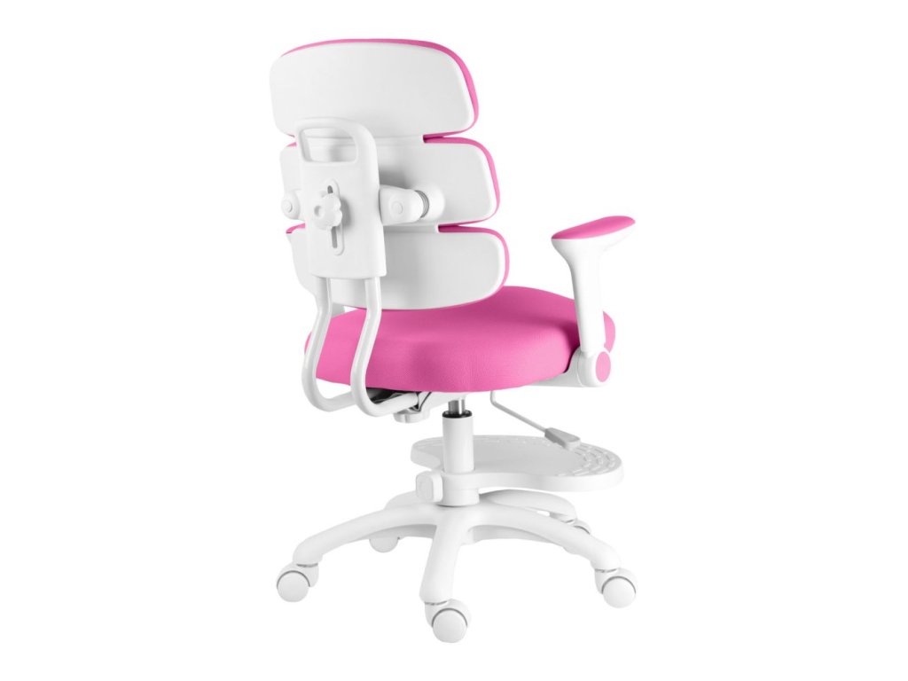 Díky výškově nastavitelné opěrce na nohy a sklápěcím područkám s možností demontáže se židle snadno přizpůsobí růstu dítěte i různým pracovním potřebám. Stabilitu zaručuje pevný kříž z tvrzeného plastu s pogumovanými kolečky o průměru 50 mm, která jsou šetrná k podlaze a vybavena automatickou brzdou aktivující se při zatížení.