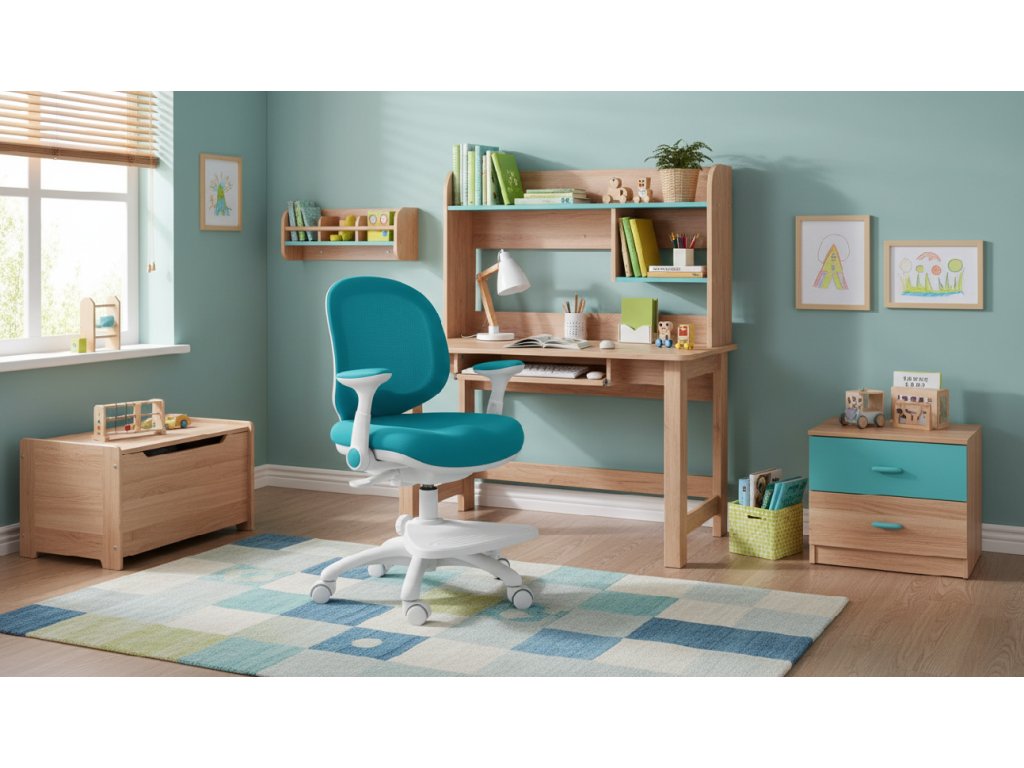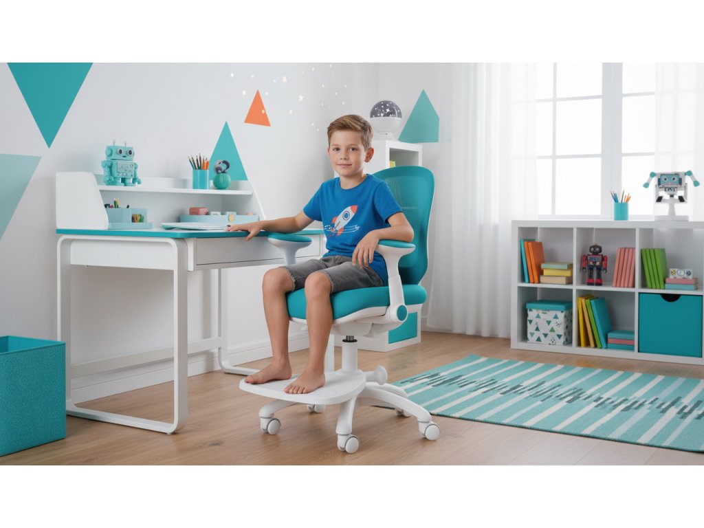 Dětská rostoucí židle ERGODO SKIPPY – ergonomické pohodlí a tyrkysová svěžest pro školáky