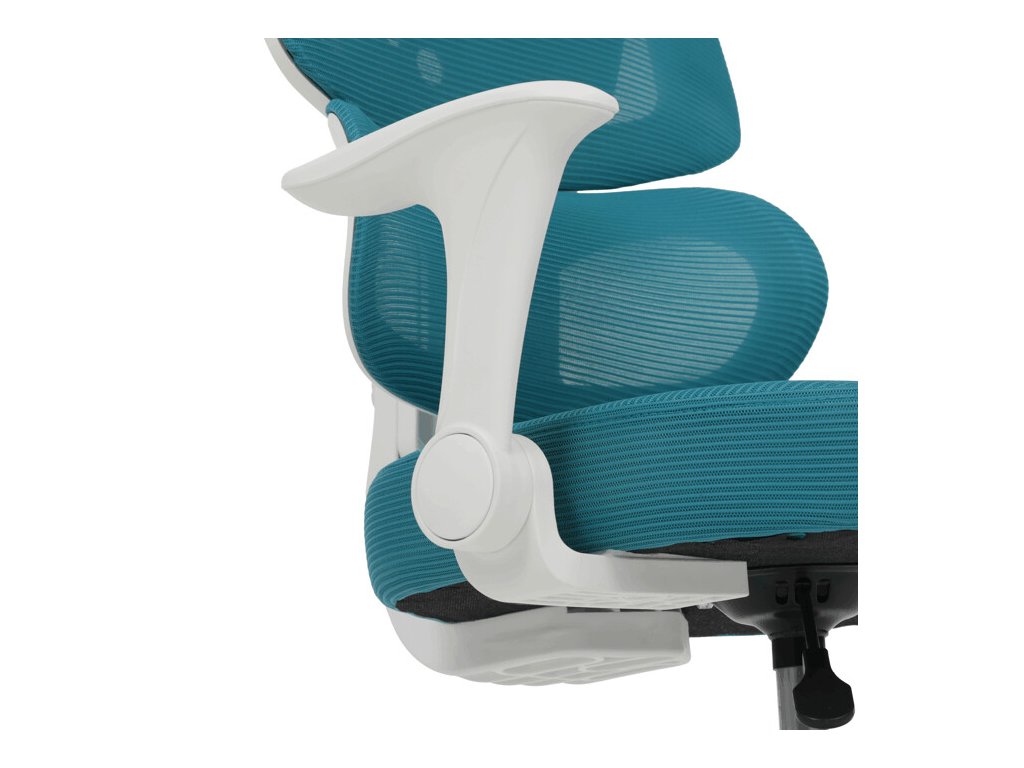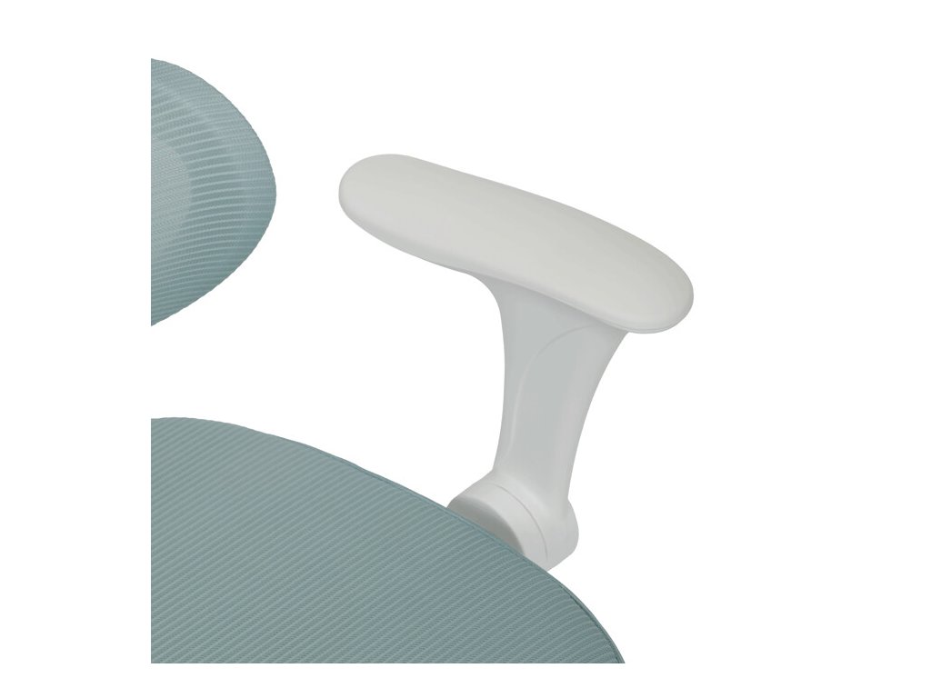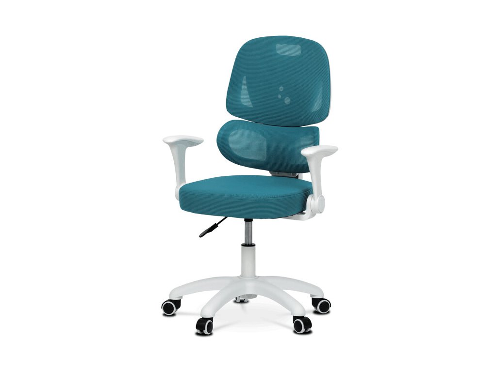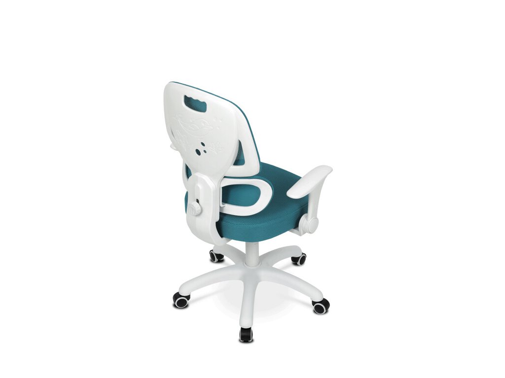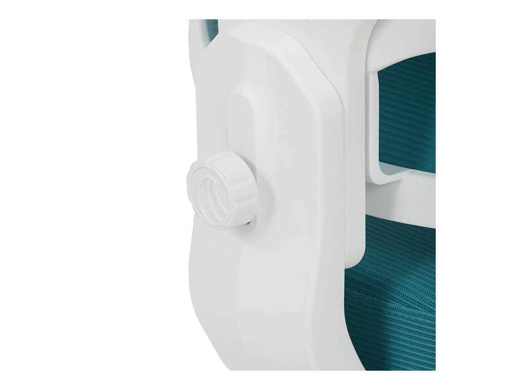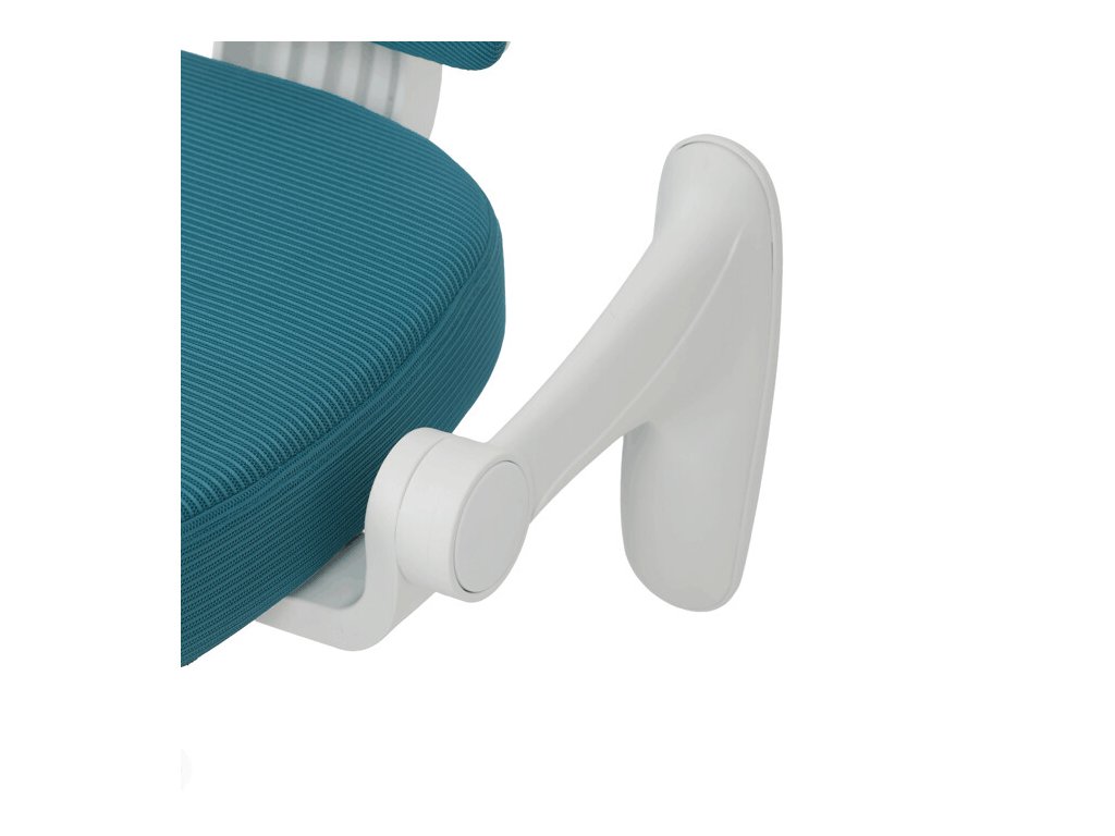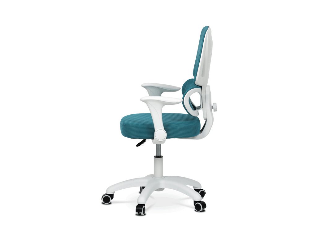 Praktickým prvkem jsou odklápěcí područky, které umožňují lepší přístup ke stolu, šetří místo a zvyšují pohodlí při používání. Stabilní plastový kříž v bílé barvě dodává židli lehkost, ale zároveň i pevnost a odolnost. Kolečka určená pro tvrdé podlahy umožňují plynulý pohyb po místnosti bez rizika poškrábání.