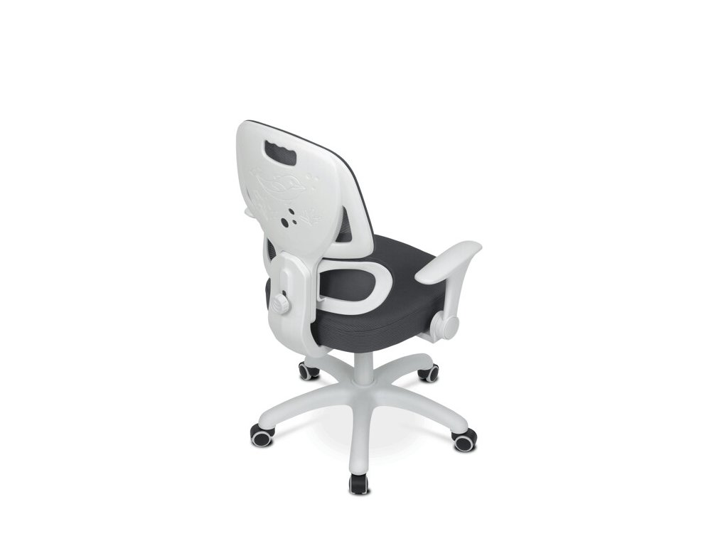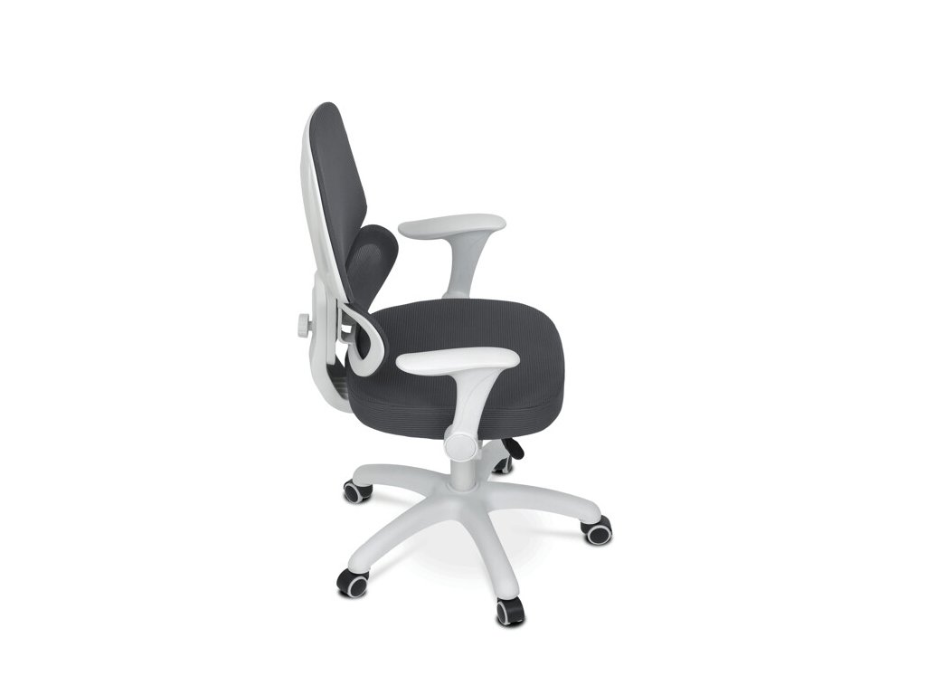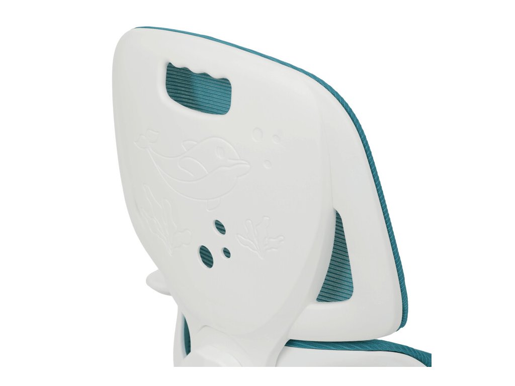 Zádová opěrka je vybavena výškově nastavitelnou bederní opěrkou, která poskytuje cílenou podporu spodní části zad a pomáhá dětem udržovat správné držení těla při sezení. Navíc je možné nastavit výšku opěráku podle výšky dítěte, takže židle roste společně s ním. Sedák je výškově nastavitelný pomocí plynového pístu, takže lze snadno přizpůsobit ideální výšku ke stolu.