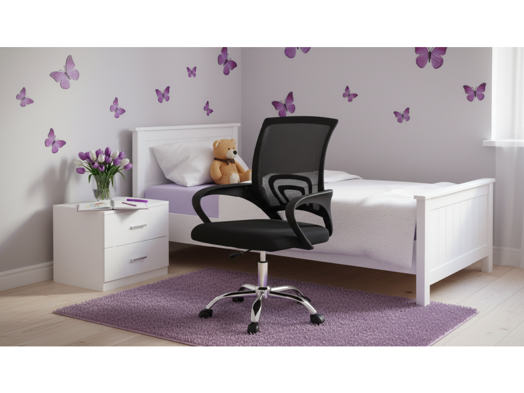 V černém provedení působí ARIEL moderně a nadčasově, takže zapadne do jakéhokoli interiéru – od dětského pokoje až po domácí pracovnu. Síťované čalounění zajistí pohodlné sezení a dostatečnou ventilaci zad, zatímco robustní kovová základna s chromem poskytne maximální stabilitu.