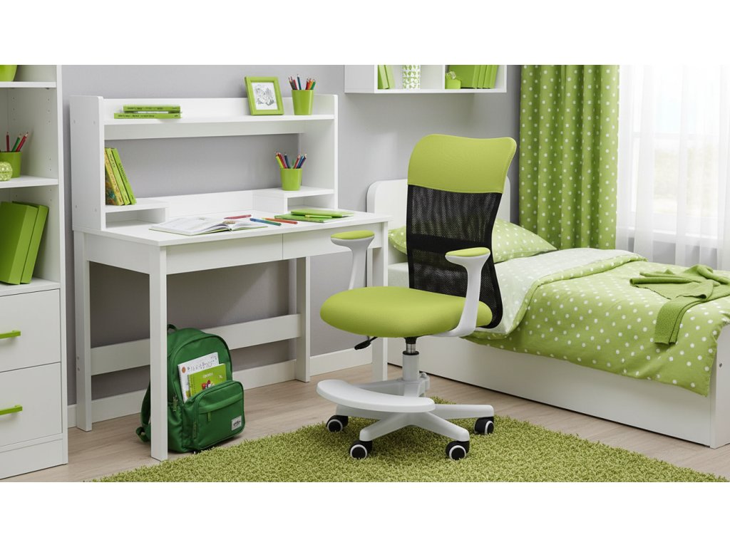 Dětská židle ERGODO CHICK WHITE - látka, síť, zelená