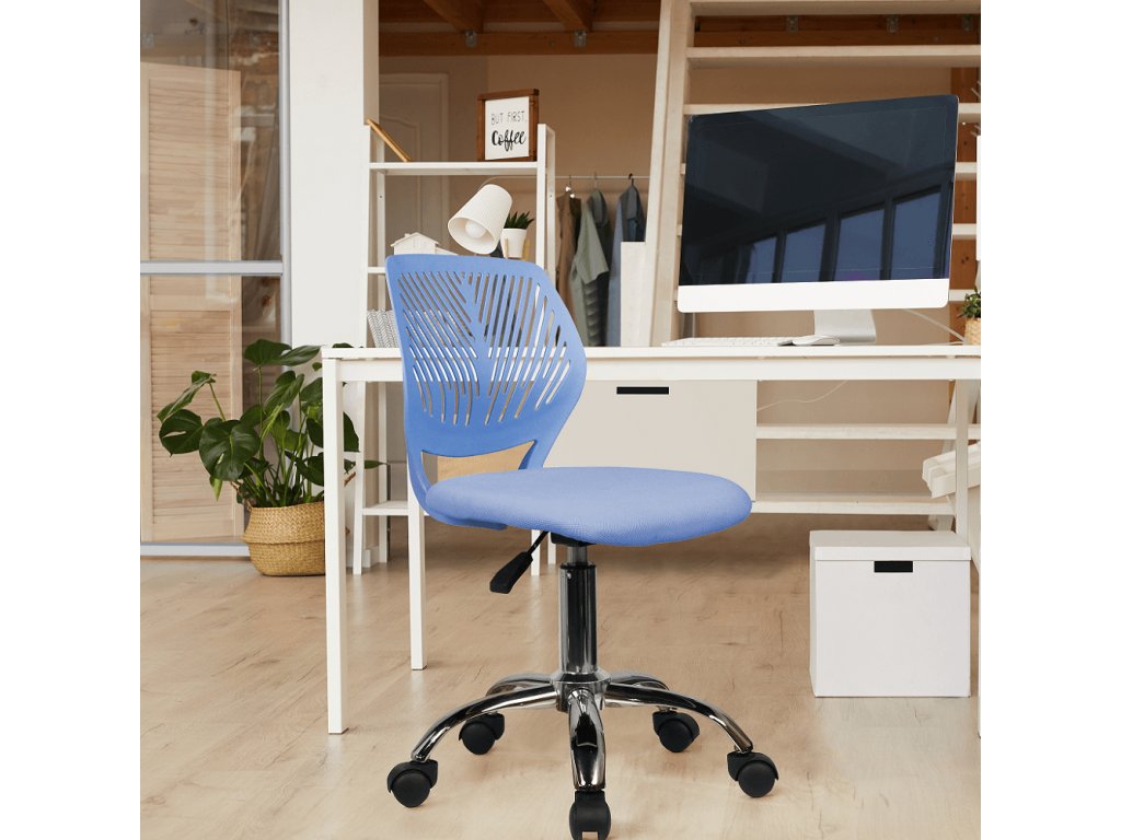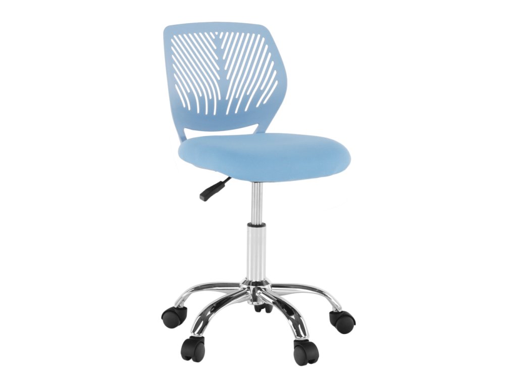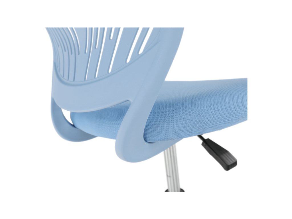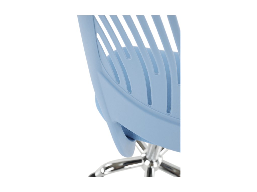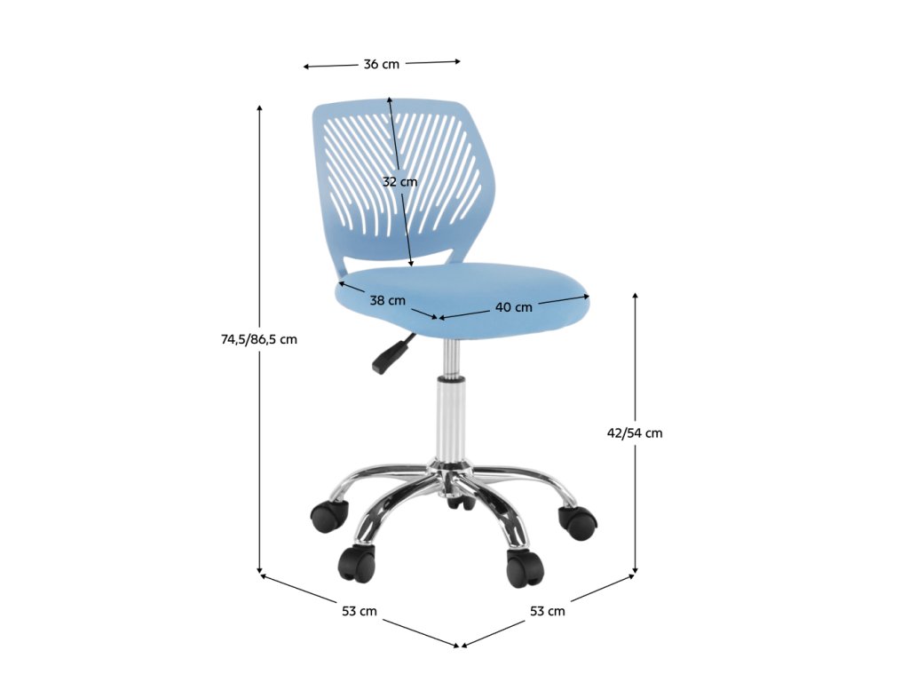 Výrazným prvkem je perforované plastové opěradlo v atypickém tvaru, které nejen zaujme na první pohled, ale zároveň zajišťuje lepší cirkulaci vzduchu a podporu zad. Židle je vybavena praktickým mechanismem pro nastavení výšky sedu (42–54 cm) a stabilní chromovanou podstavou s kolečky, které umožňují snadný pohyb po místnosti. PIXIE je ideálním řešením pro každodenní školní povinnosti i volnočasové aktivity.