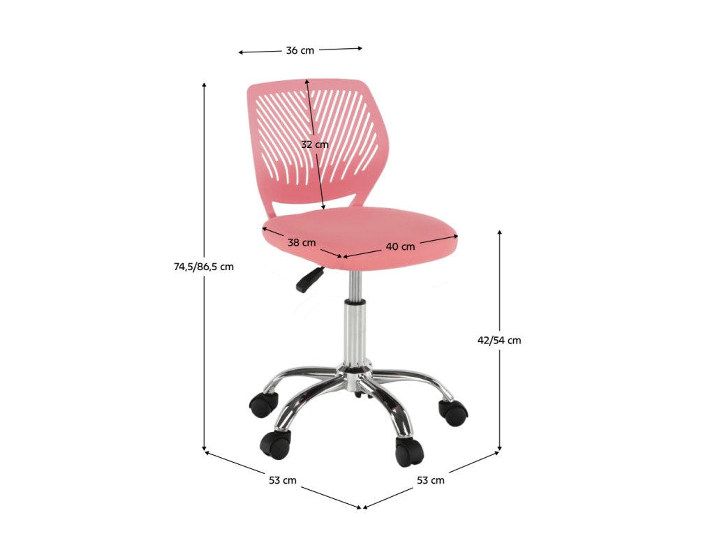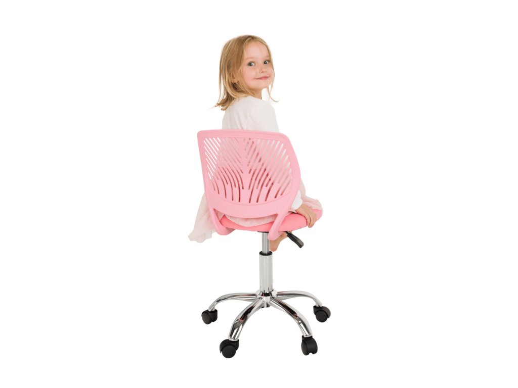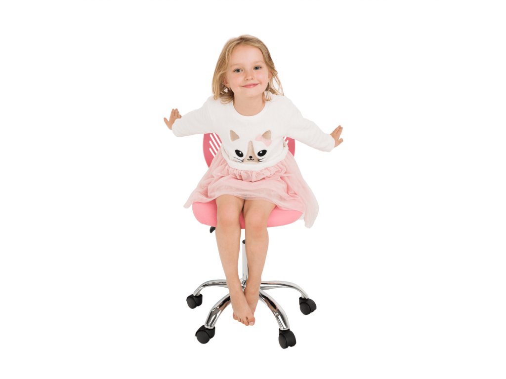 Perforované plastové opěradlo v netradičním tvaru nejen zaujme svým designem, ale také zlepší ventilaci a podporuje správné držení zad. Stabilní kovová konstrukce v kombinaci s chromovanou podstavou a kolečky umožňuje snadný pohyb po pokoji. PIXIE v růžové barvě dodá pokoji hravost a styl.