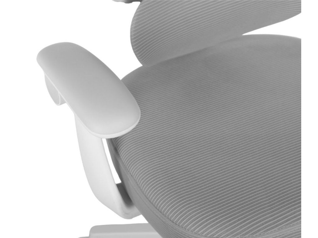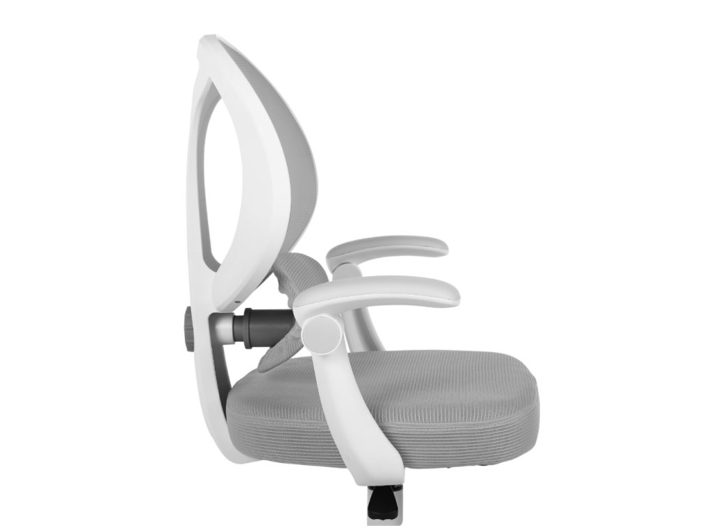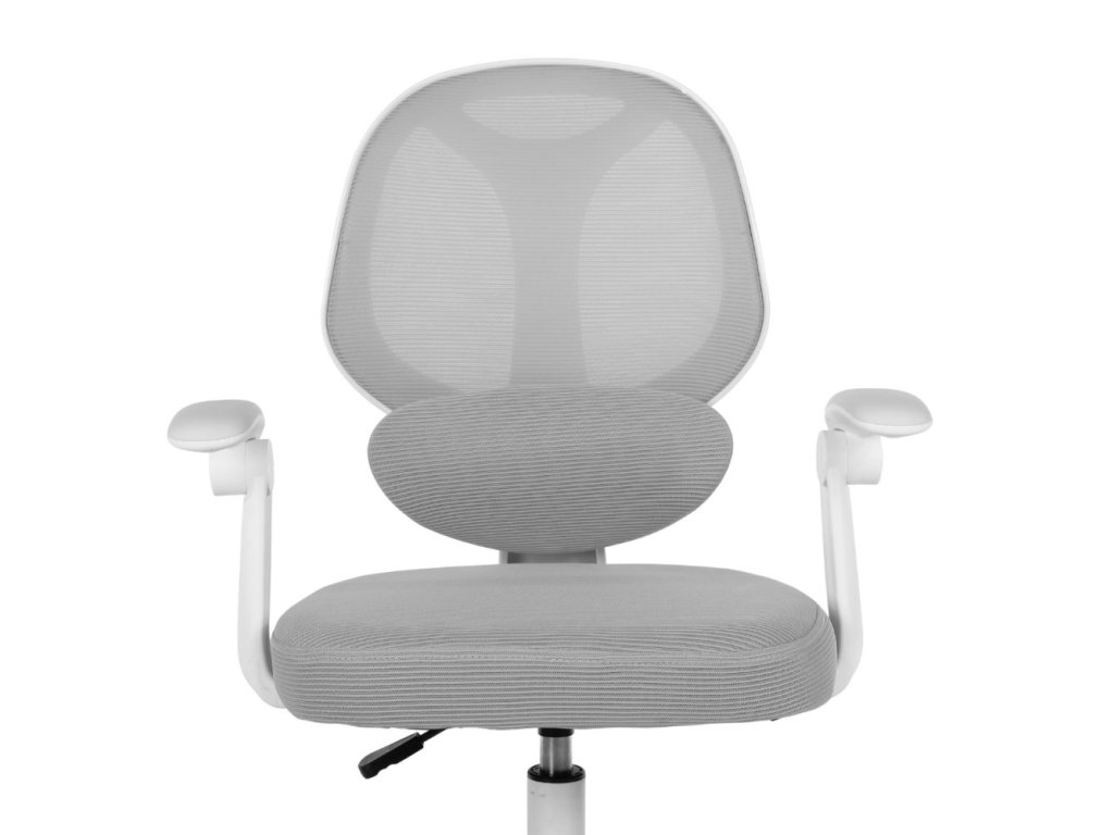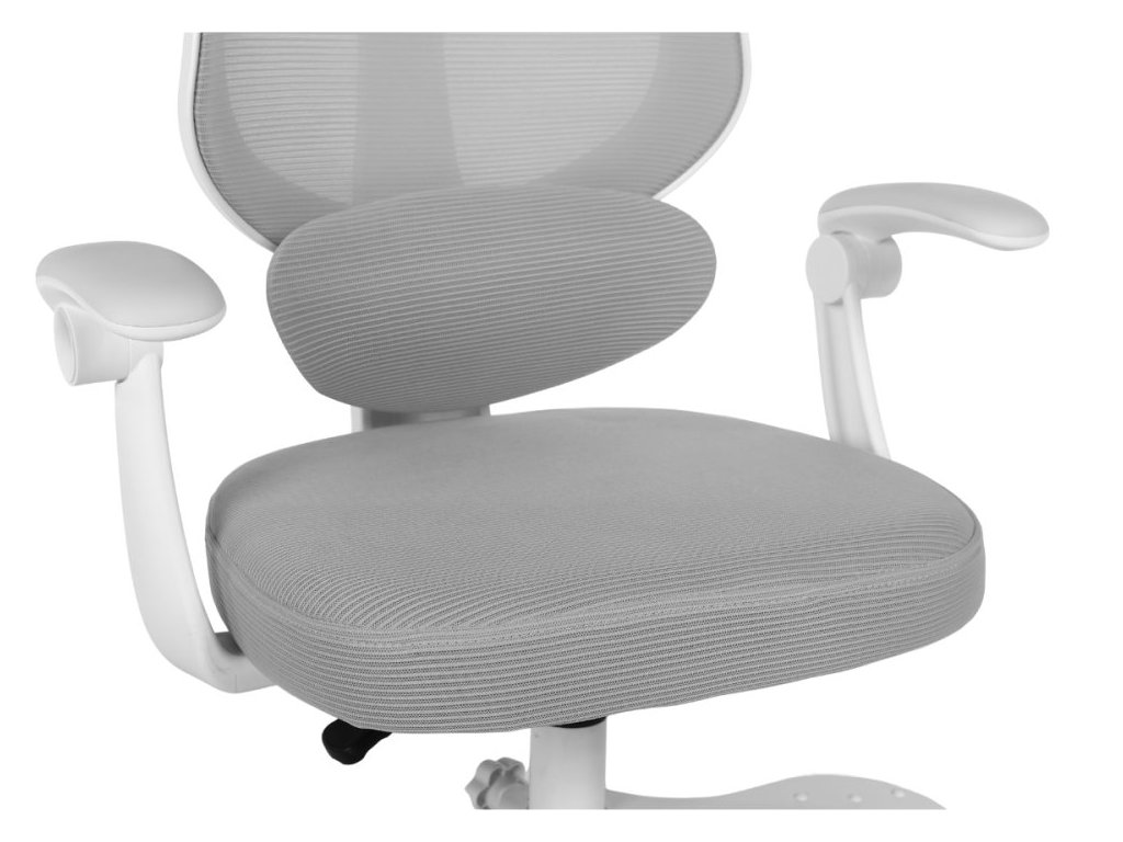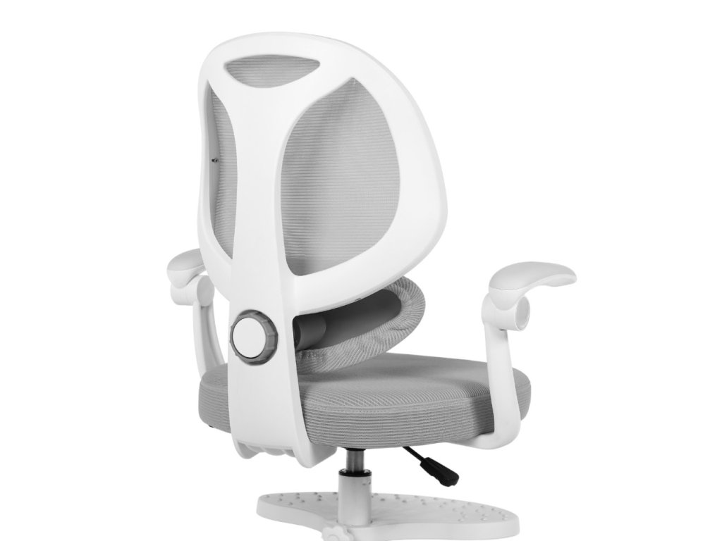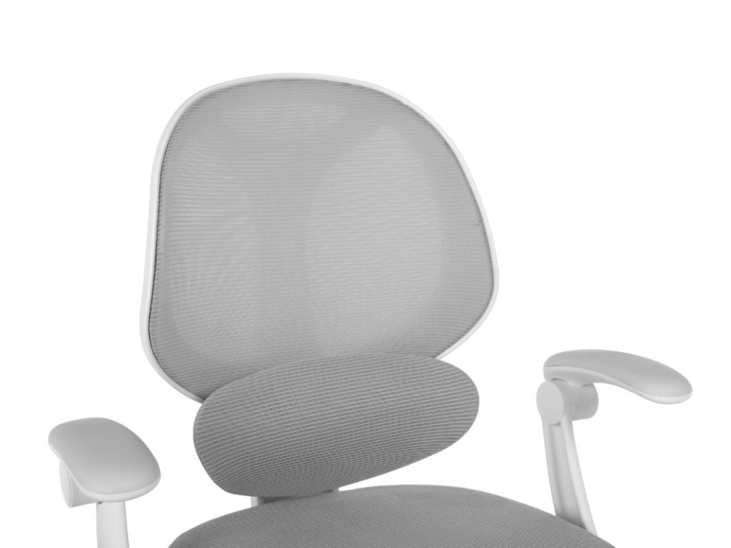 Židle nabízí příjemně tvarovaný polstrovaný sedák potažený kvalitní látkou s vysokou odolností 100 000 cyklů, takže vydrží i velmi aktivní dětské používání. Opěrák tvoří prodyšná MESH síťovina, která brání přehřívání zad a podporuje celkový komfort při sezení. Praktickým prvkem jsou vyklápěcí omyvatelné područky, které lze snadno vyklopit nahoru, když zrovna nejsou potřeba.