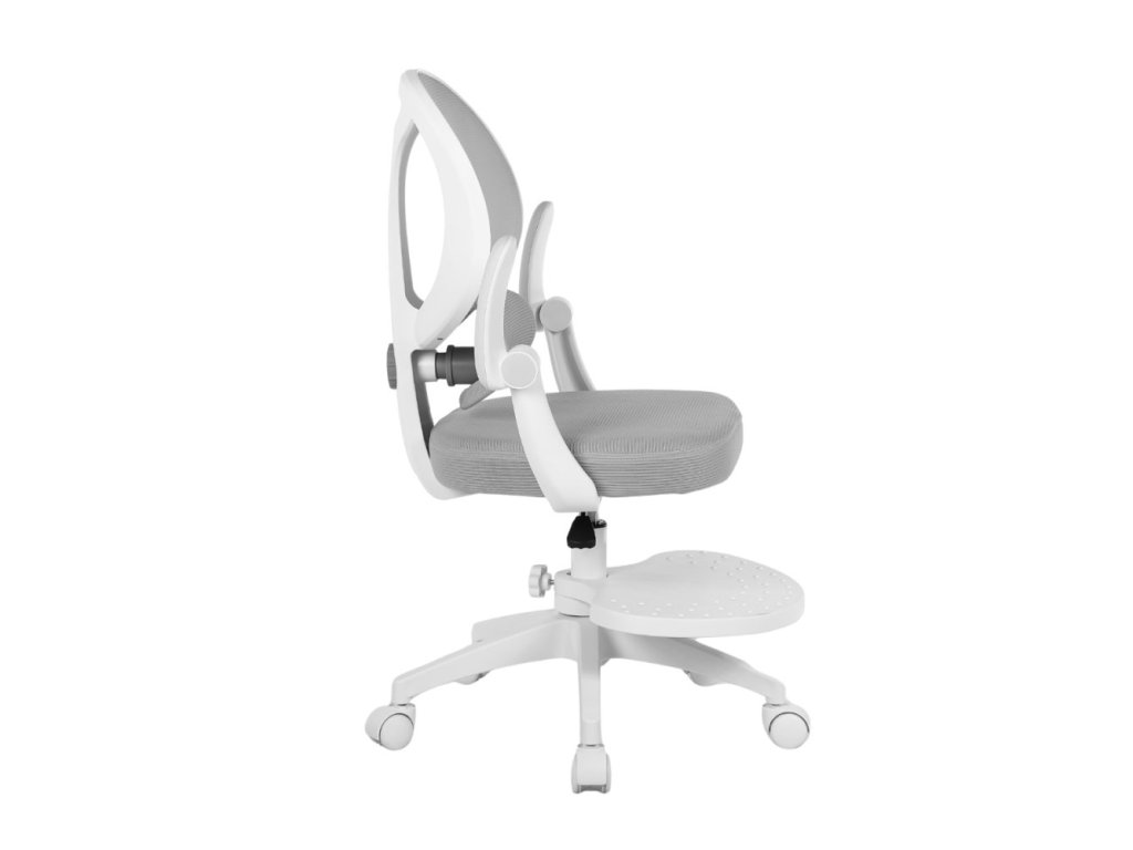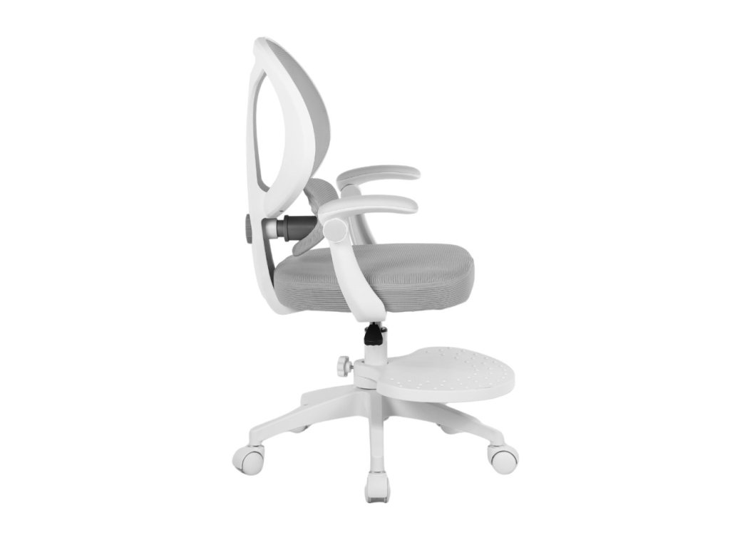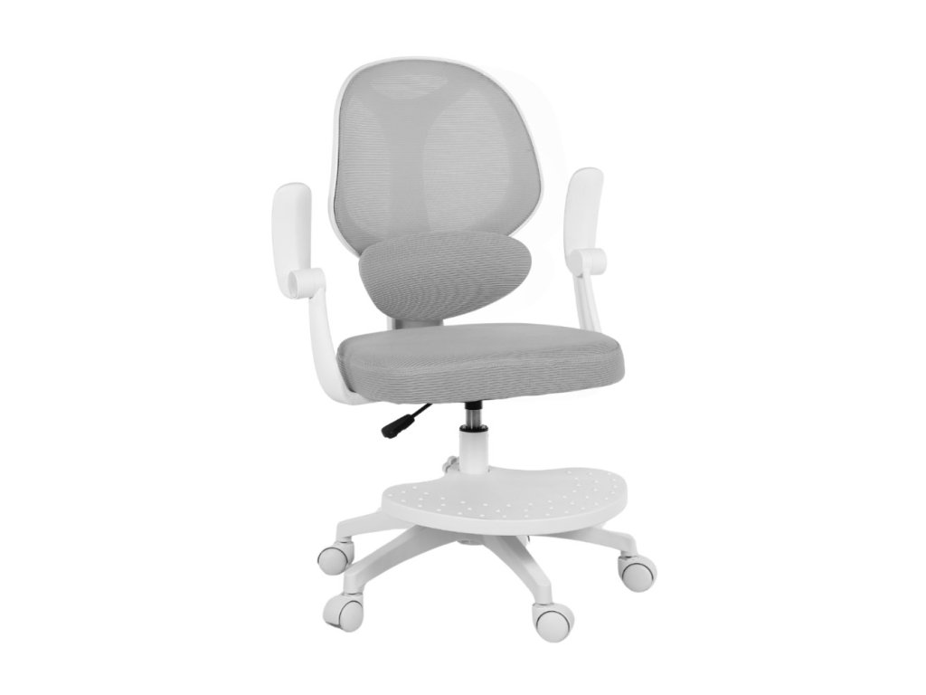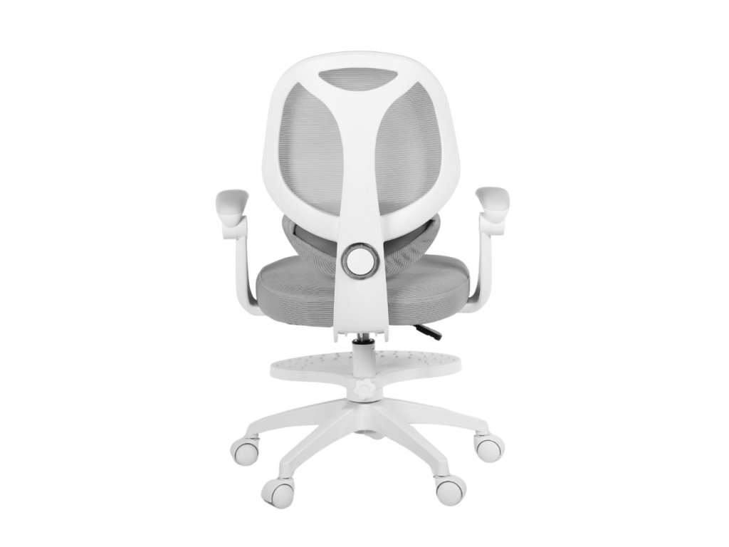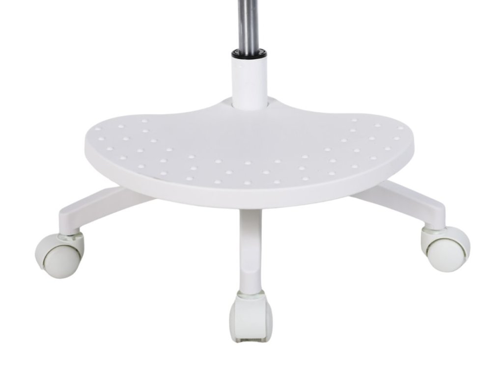 Pro menší děti je k dispozici také výškově nastavitelná otočná podnožka, jež zajistí pohodlné opření nohou — v případě potřeby ji lze jednoduše odstranit. Stabilní plastový kříž doplňují pogumovaná kolečka, která se hodí na všechny typy podlah a nepoškrábou ani laminát či vinyl. Samozřejmostí je plynulé výškové nastavení židle i možnost otáčení.