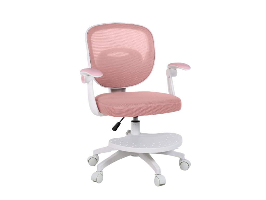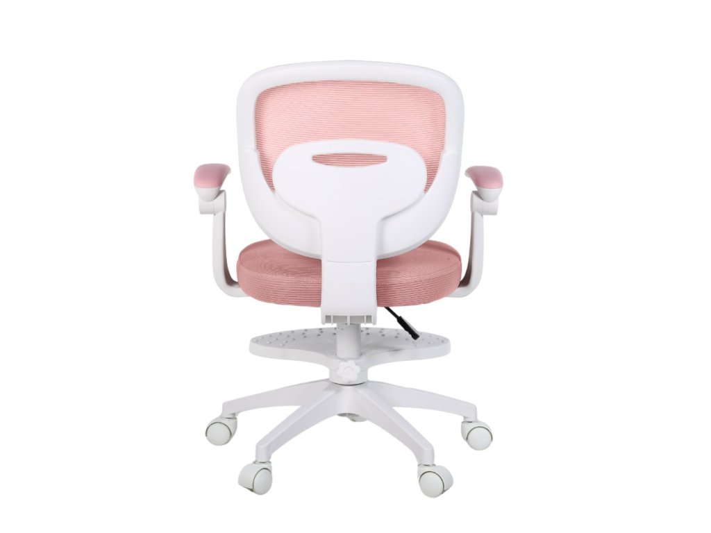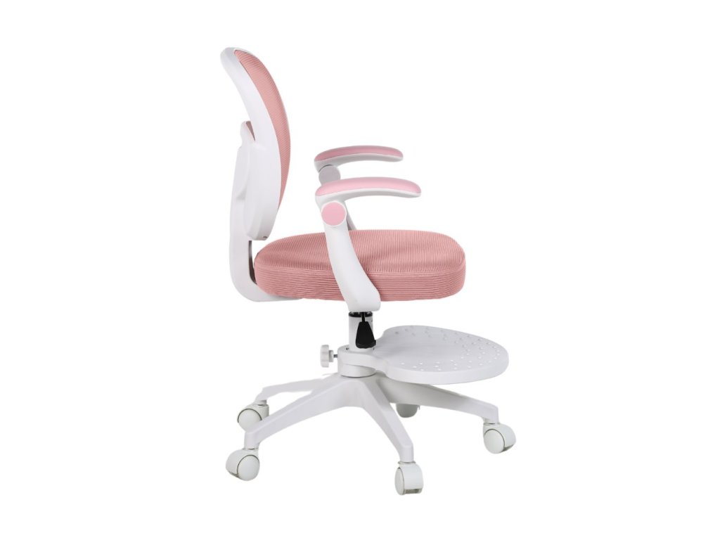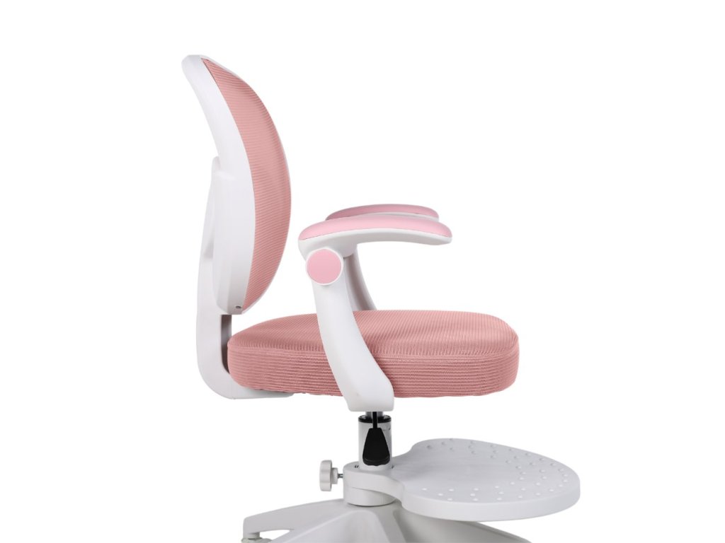 Součástí židle jsou vyklápěcí omyvatelné područky, díky kterým mohou děti pohodlně odpočívat nebo je jednoduše vyklopit nahoru, pokud při práci překážejí. Výškově nastavitelná otočná podnožka poskytuje oporu zejména menším dětem — a pokud ji nebudete potřebovat, lze ji snadno demontovat. Záda židle jsou tvořena prodyšnou MESH síťovinou, která umožňuje cirkulaci vzduchu a brání přehřívání zad.