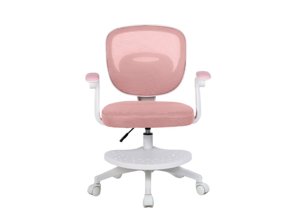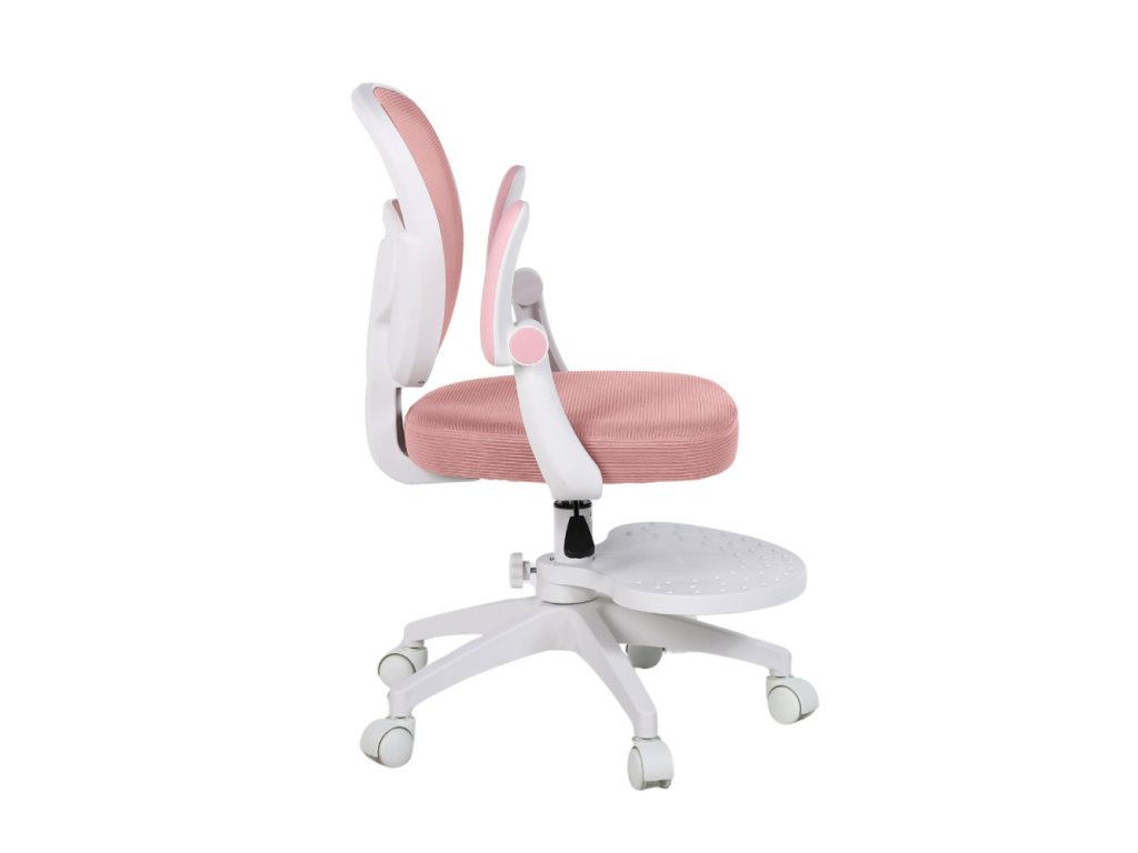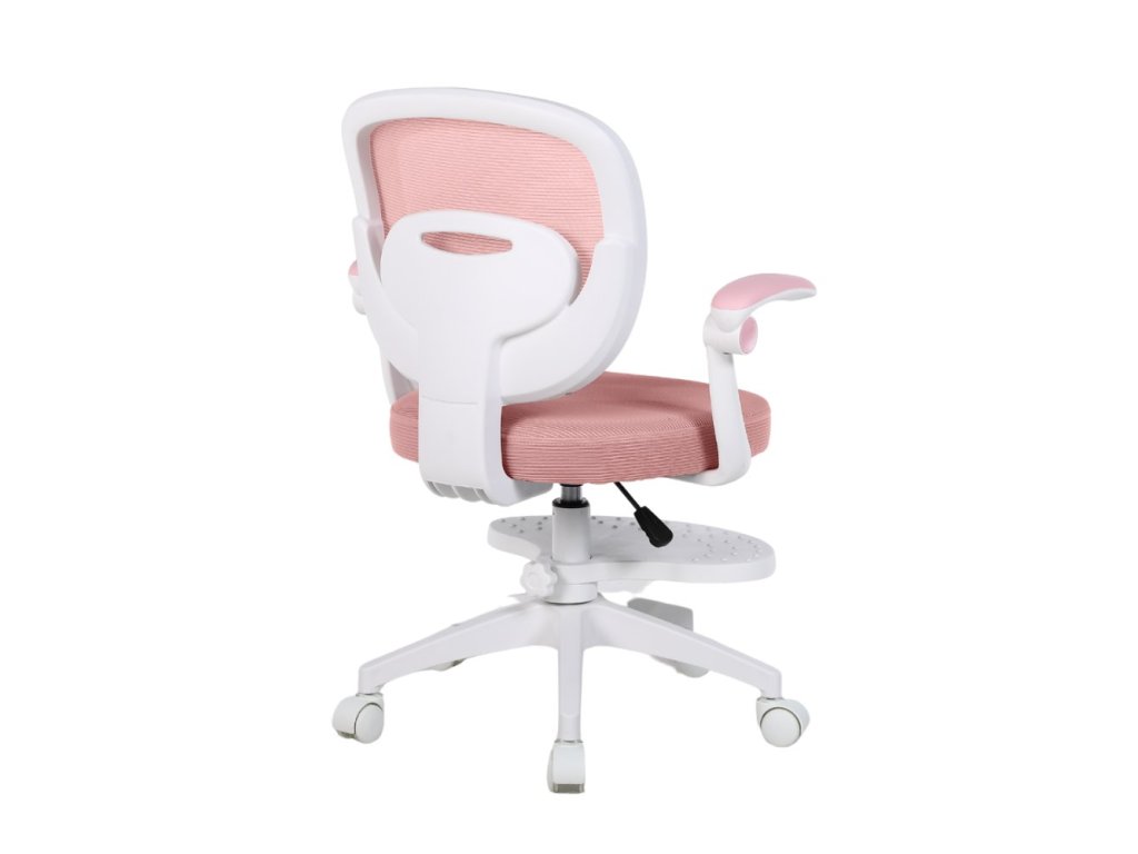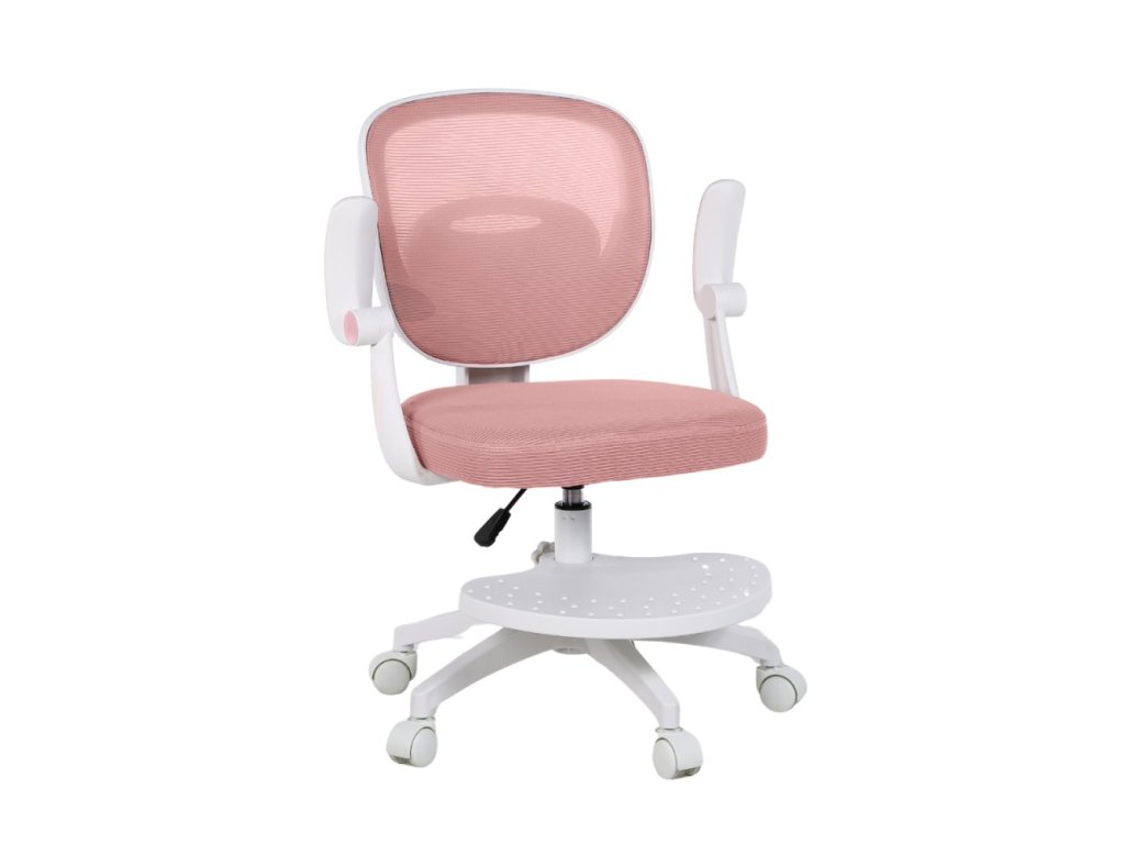 Součástí židle jsou vyklápěcí omyvatelné područky, díky kterým mohou děti pohodlně odpočívat nebo je jednoduše vyklopit nahoru, pokud při práci překážejí. Výškově nastavitelná otočná podnožka poskytuje oporu zejména menším dětem — a pokud ji nebudete potřebovat, lze ji snadno demontovat. Záda židle jsou tvořena prodyšnou MESH síťovinou, která umožňuje cirkulaci vzduchu a brání přehřívání zad.