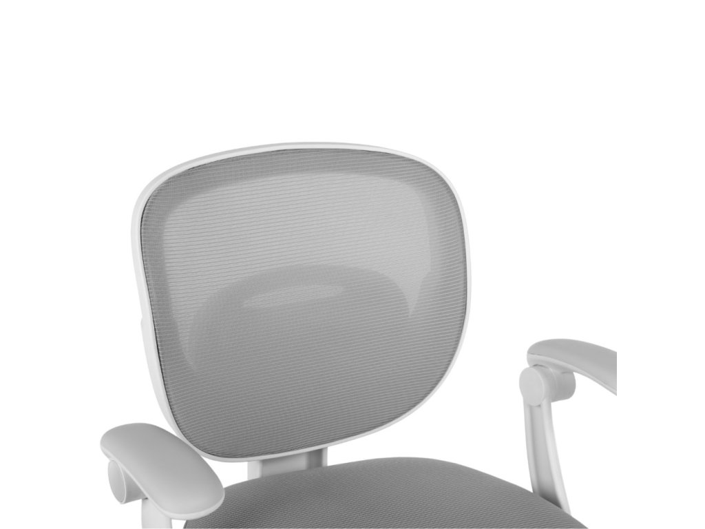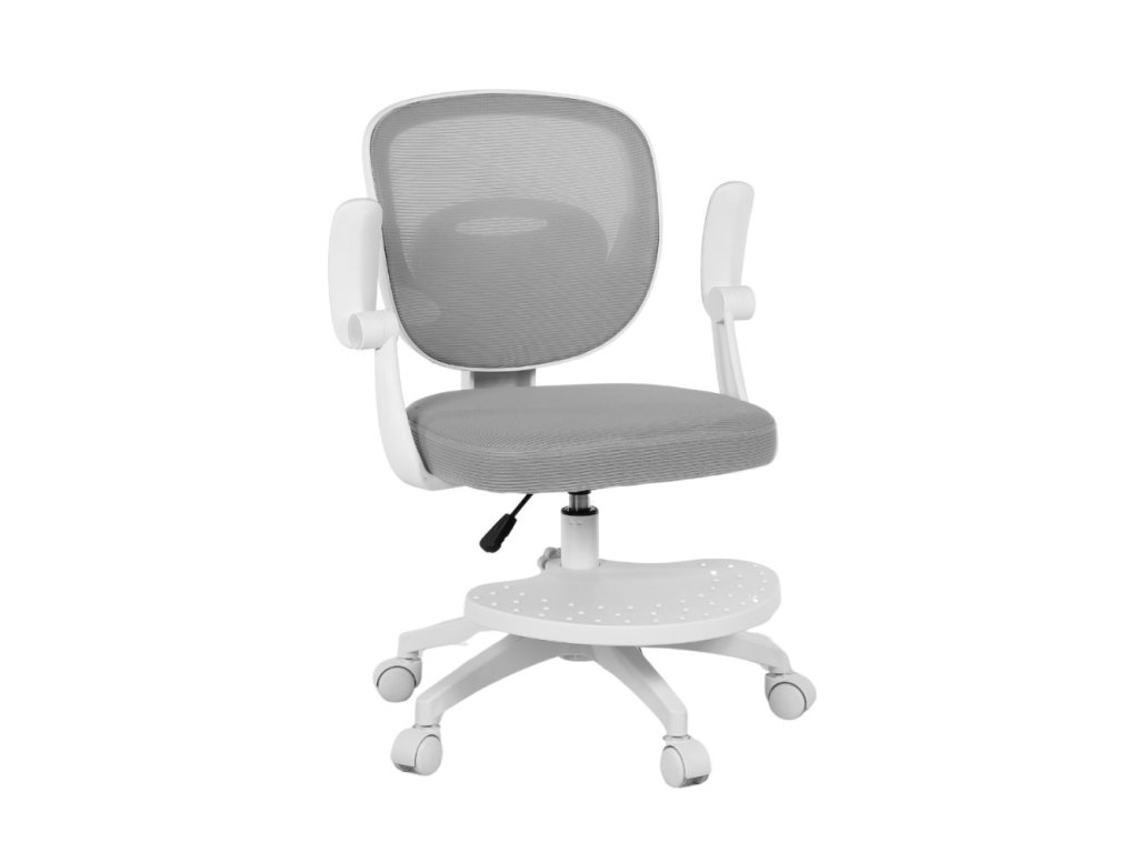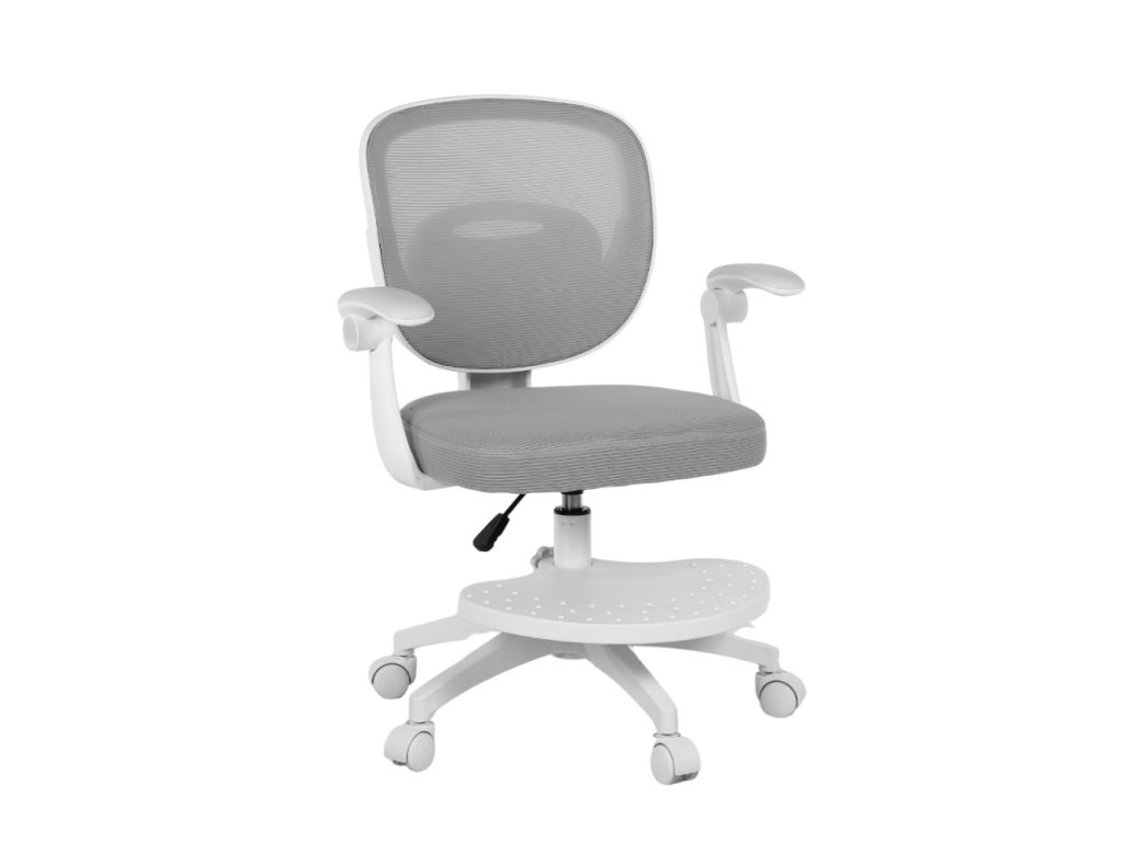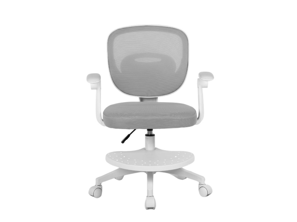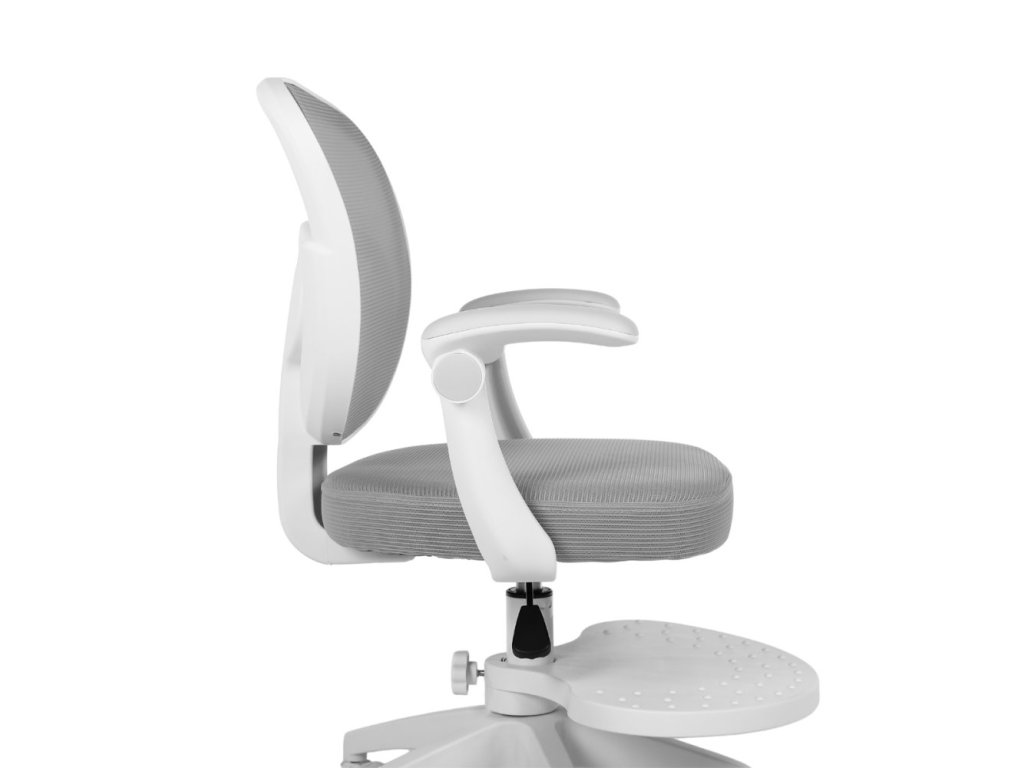 Součástí židle jsou vyklápěcí omyvatelné područky, díky kterým mohou děti pohodlně odpočívat nebo je jednoduše vyklopit nahoru, pokud při práci překážejí. Výškově nastavitelná otočná podnožka poskytuje oporu zejména menším dětem — a pokud ji nebudete potřebovat, lze ji snadno demontovat. Záda židle jsou tvořena prodyšnou MESH síťovinou, která umožňuje cirkulaci vzduchu a brání přehřívání zad.