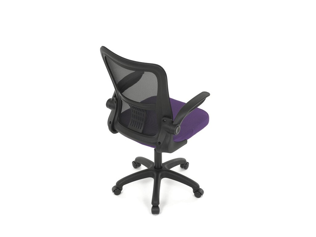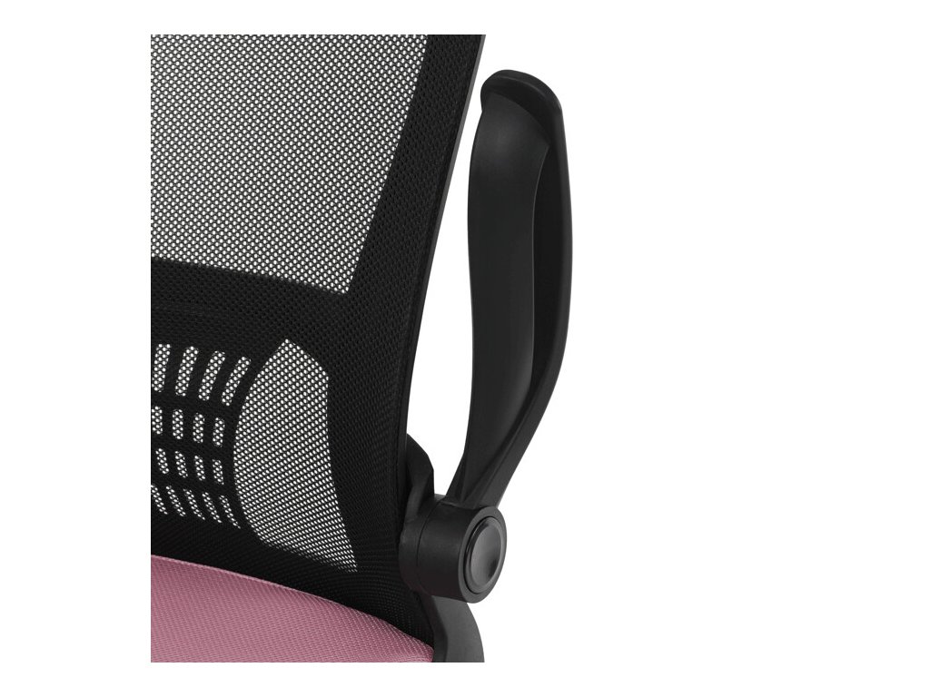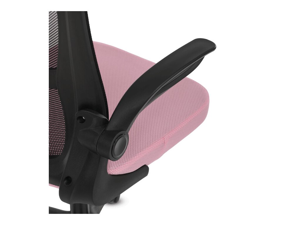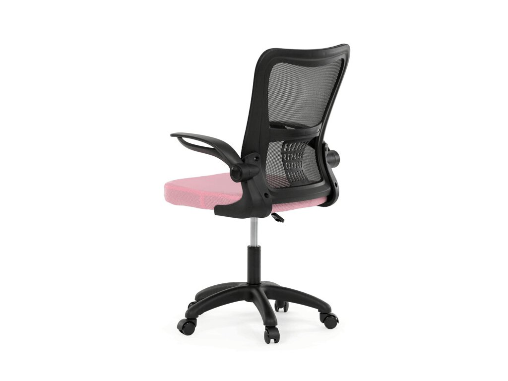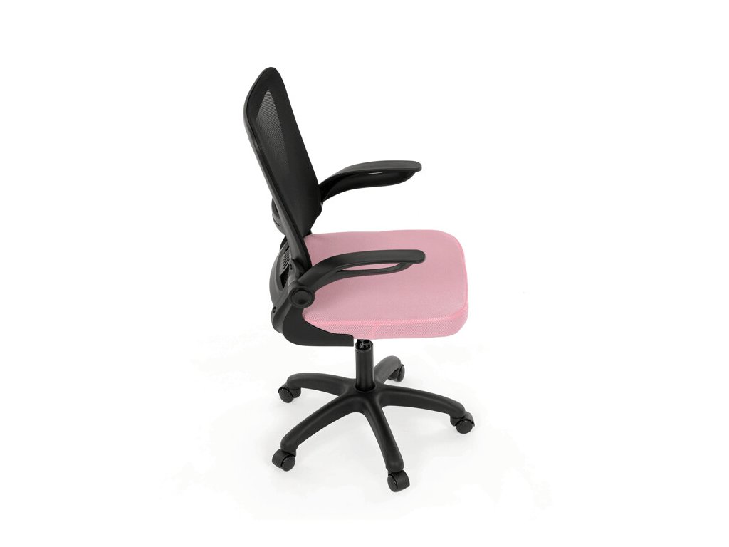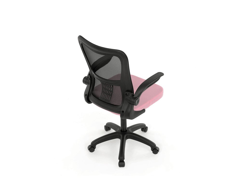 Zádová opěrka je vyrobena z prodyšné černé síťoviny, která umožňuje cirkulaci vzduchu a zabraňuje přehřívání zad při dlouhém sezení. Sedák s měkkou pěnovou výplní a čalouněním z odolné látky zajišťuje komfort i při několikahodinovém studiu. Praktické odklápěcí područky umožňují snadnější manipulaci se židlí i pohodlnější zasunutí pod pracovní stůl — ideální do dětských pokojů, kde je potřeba efektivně využít prostor.