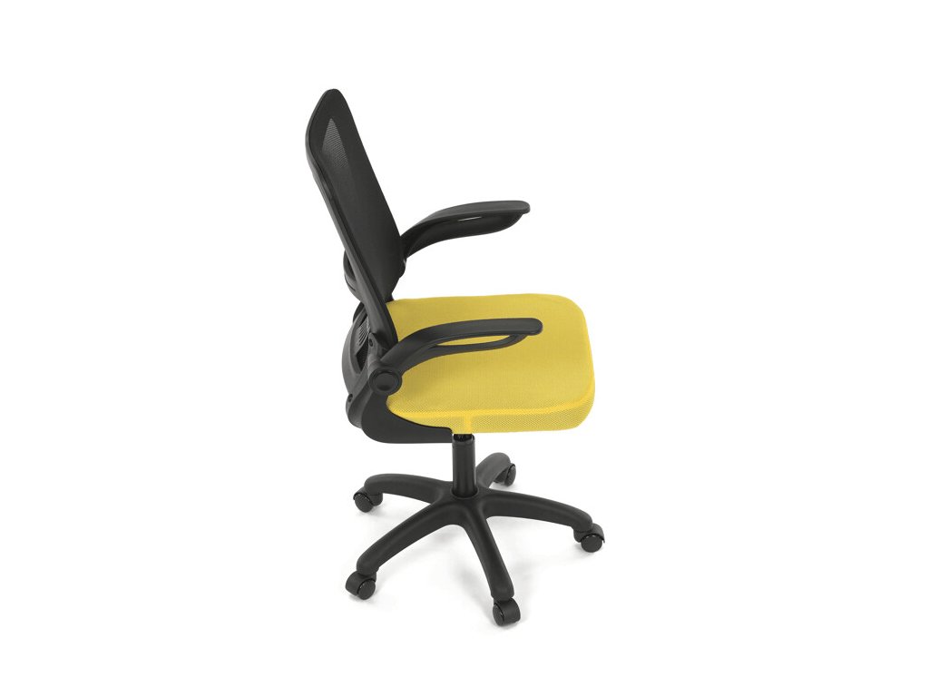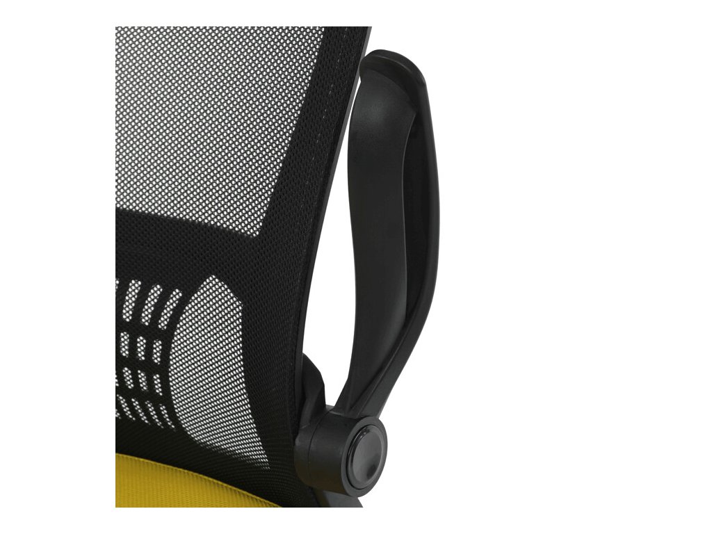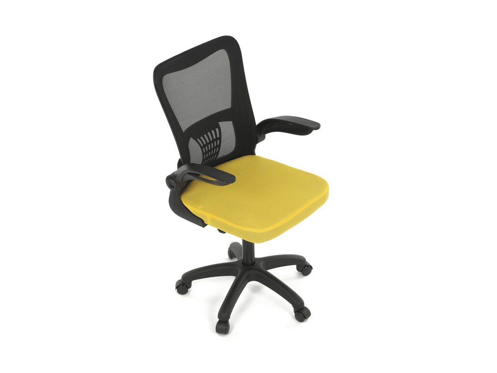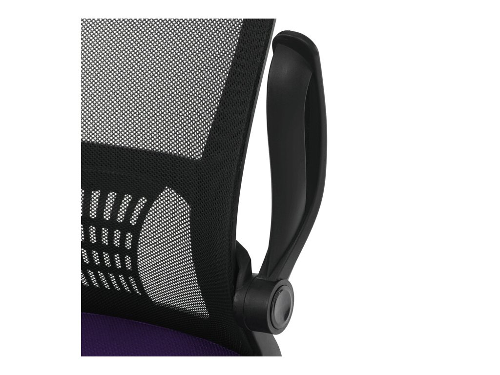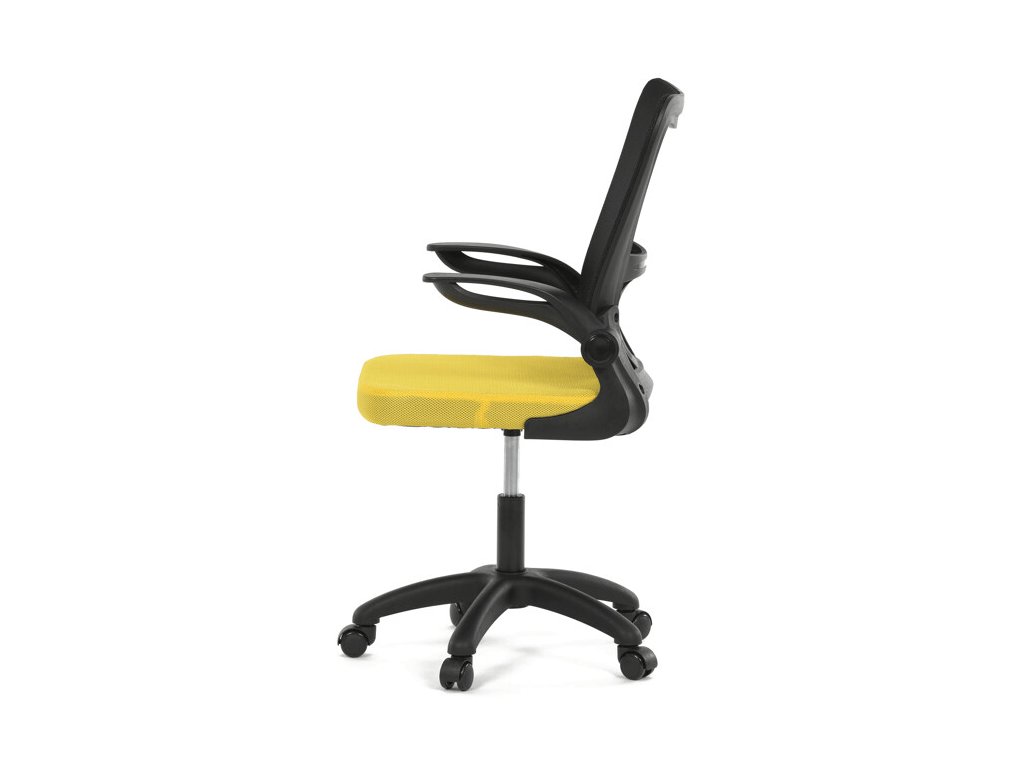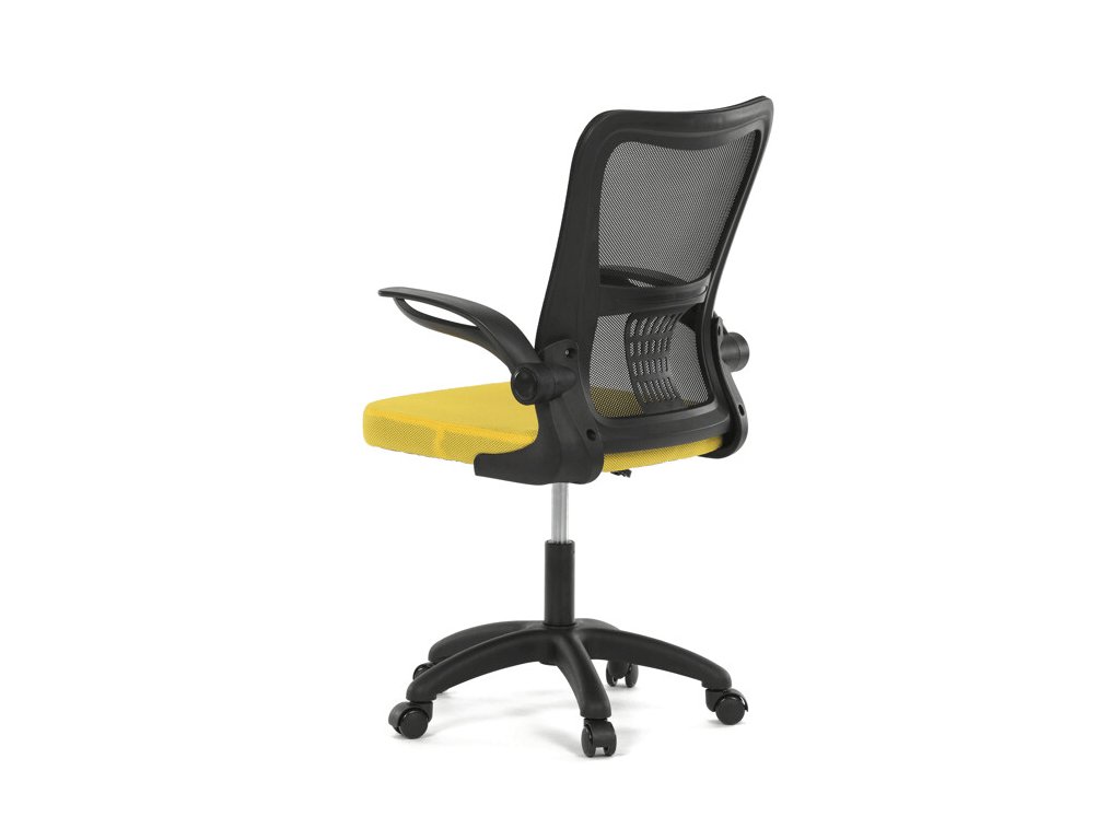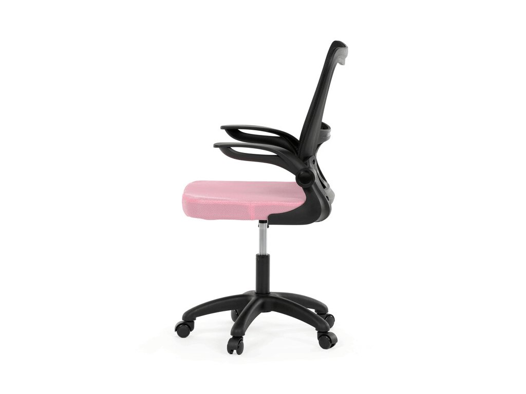 Zádová opěrka je vyrobena z prodyšné černé síťoviny, která umožňuje cirkulaci vzduchu a zabraňuje přehřívání zad při dlouhém sezení. Sedák s měkkou pěnovou výplní a čalouněním z odolné látky zajišťuje komfort i při několikahodinovém studiu. Praktické odklápěcí područky umožňují snadnější manipulaci se židlí i pohodlnější zasunutí pod pracovní stůl — ideální do dětských pokojů, kde je potřeba efektivně využít prostor.