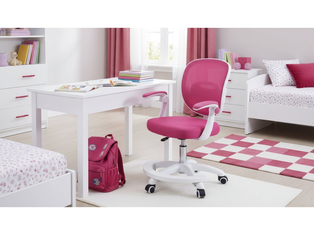 Dětská otočná židle WOODY spojuje moderní design s praktickými funkcemi, které dětem zajistí komfortní a zdravé sezení. Malinově zbarvená síťovina působí svěže a hravě, zatímco bílá plastová konstrukce dodává židli lehkost a stabilitu. Díky výškově nastavitelnému sedu (45–55 cm) se WOODY snadno přizpůsobí postavě dítěte a roste spolu s ním.