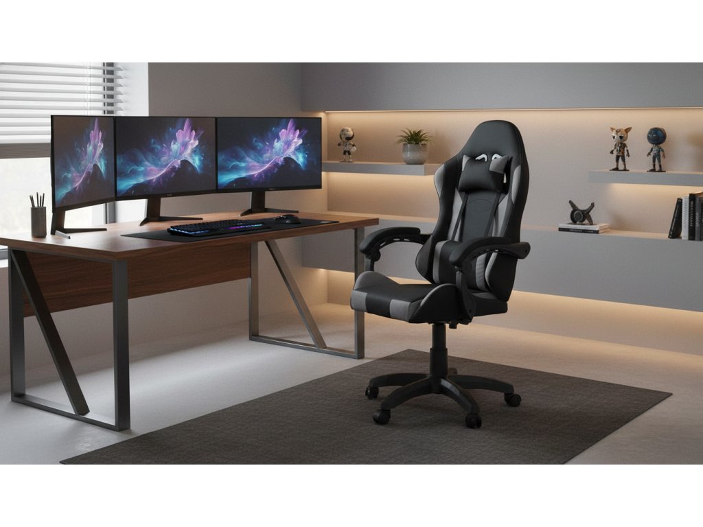 Herní křeslo MYROX – ergonomie a pohodlí pro hraní i práciHerní křeslo MYROX je navrženo pro dlouhé hodiny u počítače, ať už při hraní, práci nebo studiu. Ergonomicky tvarované sedadlo doplněné o bederní a hlavovou opěrku zajišťuje správnou podporu páteře a komfort i při dlouhodobém sezení. Čalounění z jemně hrubé látky působí moderně a příjemně na dotek, přičemž snadno zapadne do každého interiéru.