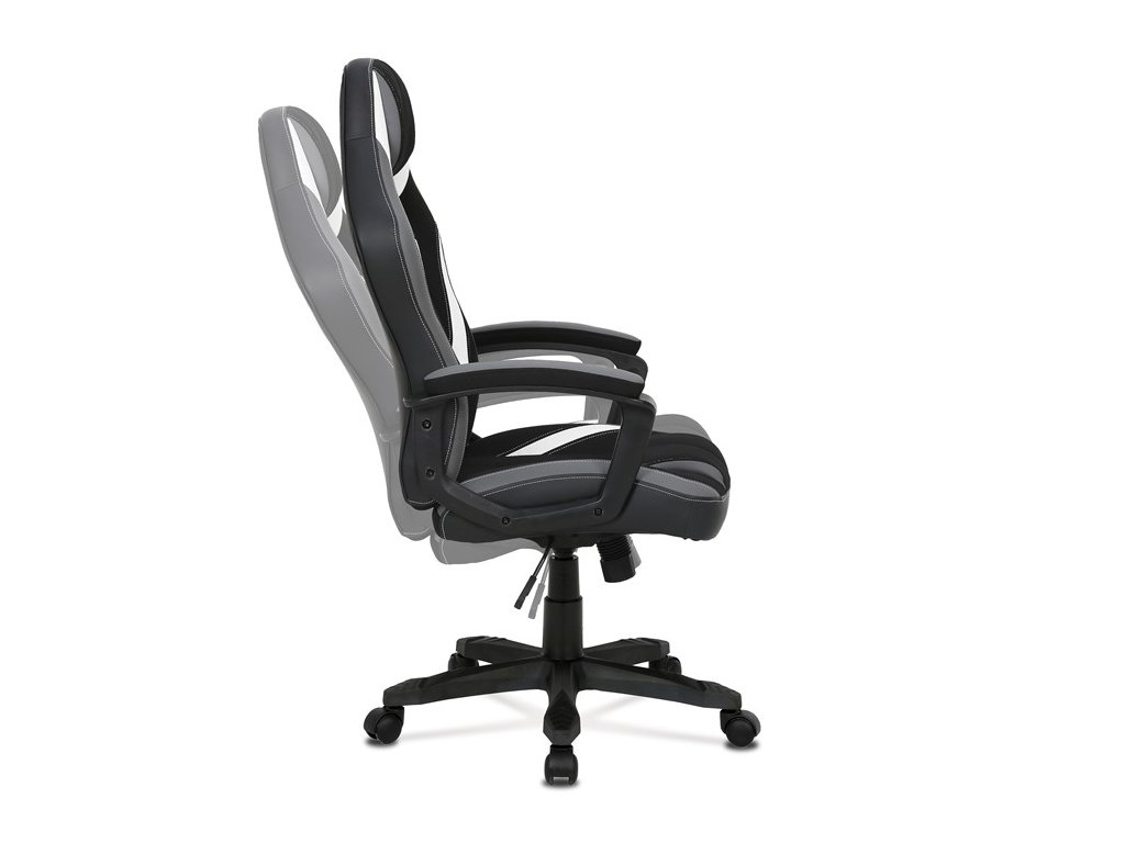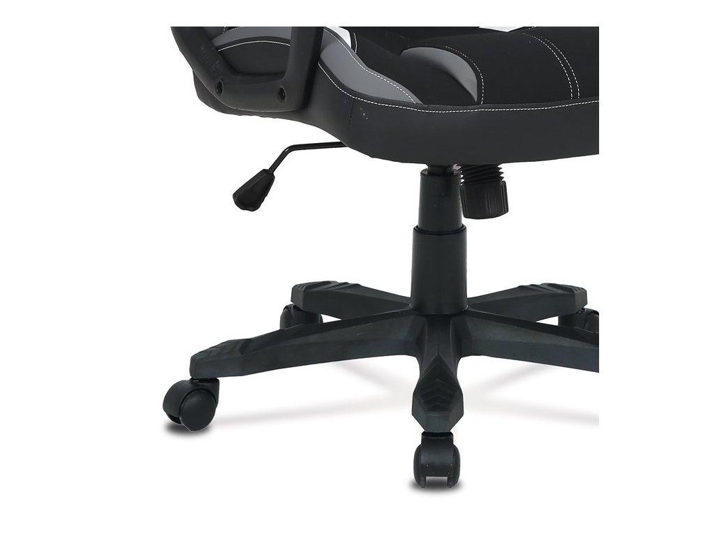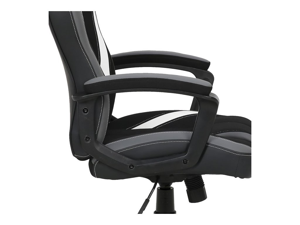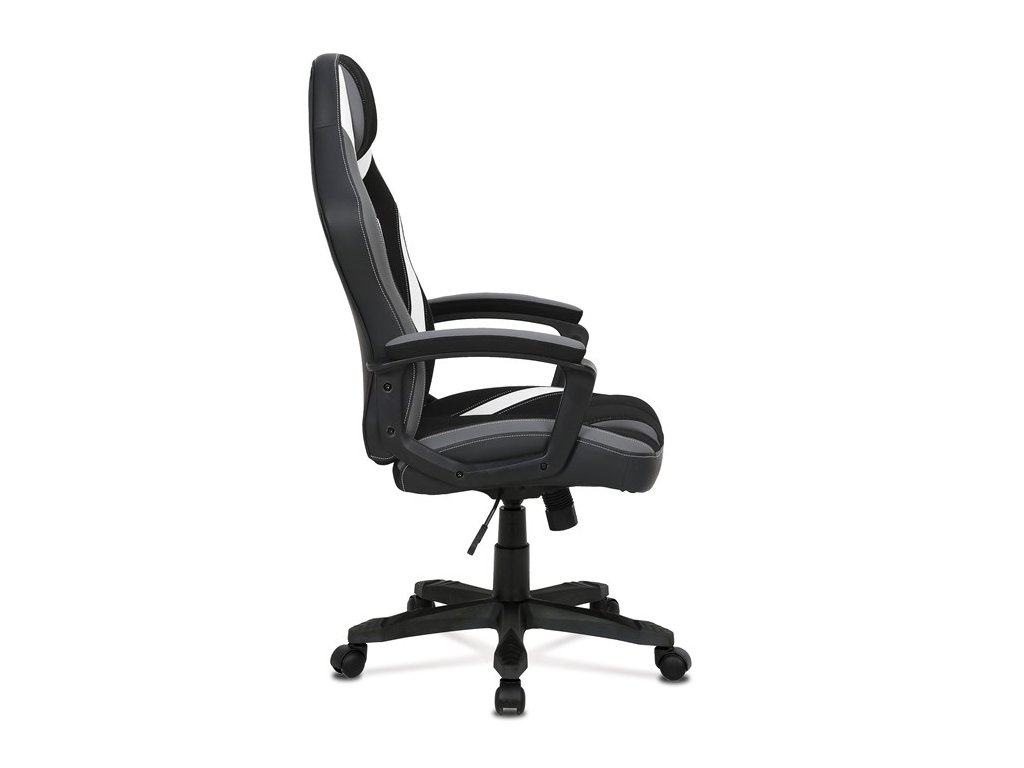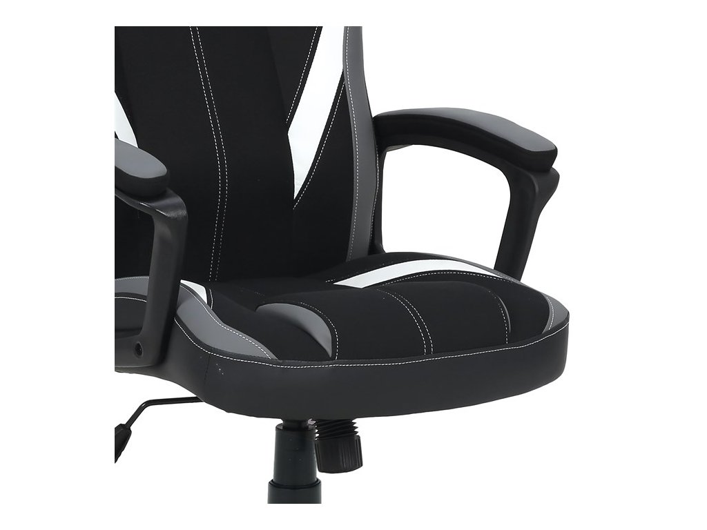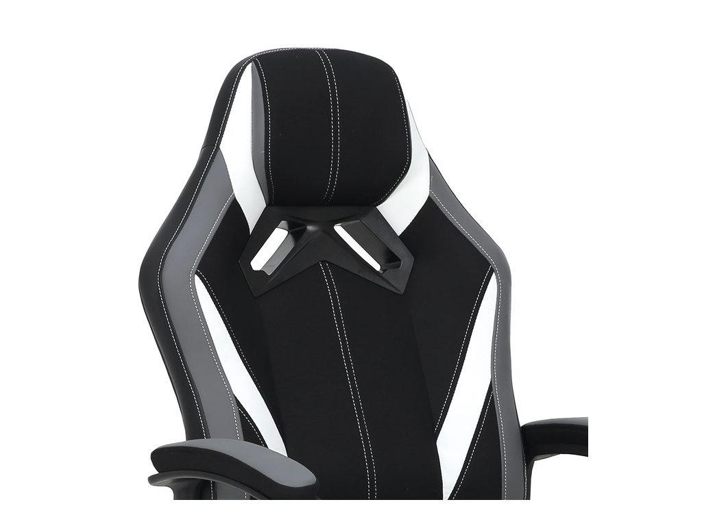 Herní židle EVOLUX – moderní design a pohodlné sezeníHerní židle EVOLUX kombinuje šedou a černou látku s elegantními bílými prvky z ekokůže, čímž vytváří atraktivní moderní vzhled vhodný do herny i kanceláře. Vysoké polstrování sedáku a opěradla poskytuje komfort při dlouhém sezení, zatímco pevné čalouněné područky zajišťují stabilní oporu rukou.