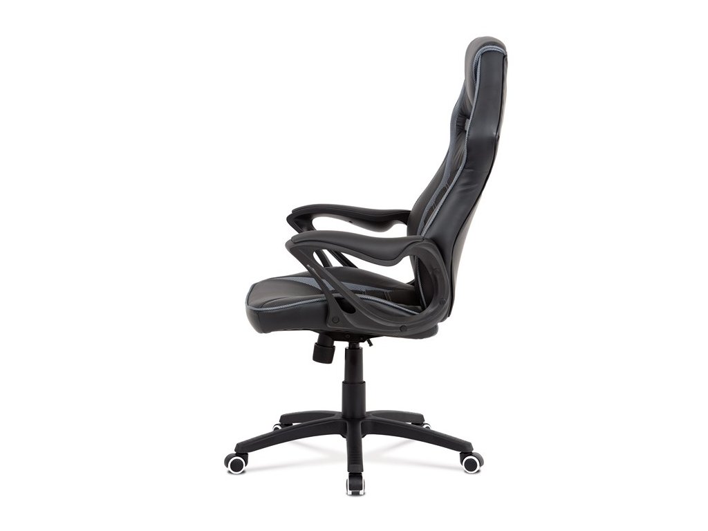 Židle je vybavena pevnými čalouněnými područkami, houpacím mechanismem pro mírné naklánění a stabilním plastovým křížem s kolečky vhodnými pro tvrdé povrchy. Díky nosnosti až 120 kg a odolné konstrukci je vhodná pro každodenní použití v kanceláři i domácí pracovně.