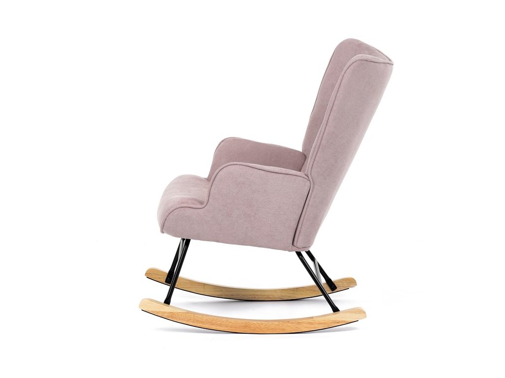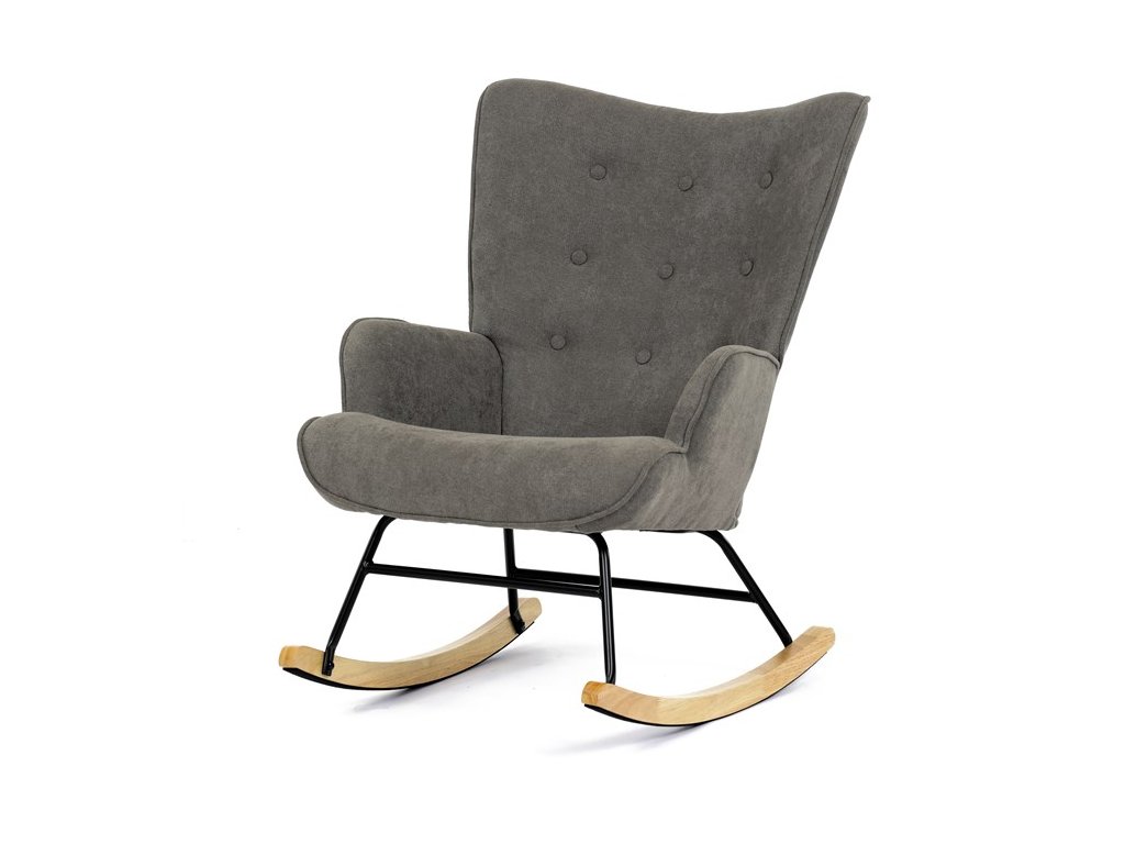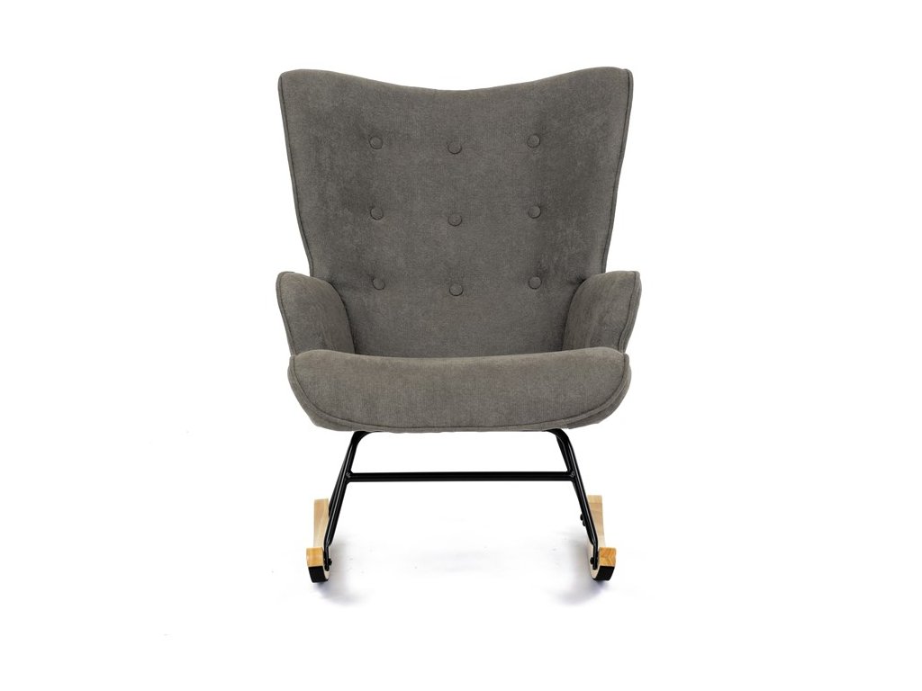 Luxusní houpací křeslo KIORA v moderním designu spojuje styl, funkčnost a prvotřídní komfort. Potah z hladké látky je příjemný na dotek a v kombinaci s nohami z masivního dřeva působí nadčasově i elegantně. Díky pohupové podnoži si vychutnáte uvolněný odpočinek při čtení, relaxaci nebo po náročném dni. Ozdobné knoflíky na opěradle dodávají křeslu osobitý detail a podtrhují jeho sofistikovaný vzhled.