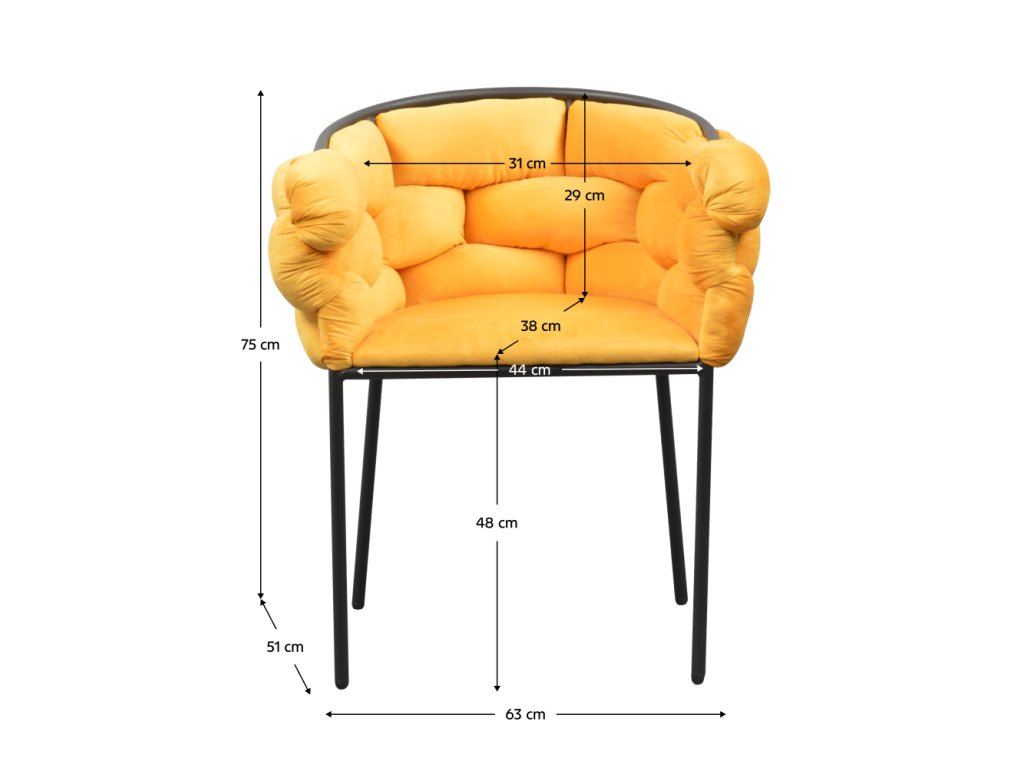 O stabilitu se starají štíhlé kovové nohy v černém provedení, které zajišťují pevnost a dlouhou životnost. Křeslo ART v žluté variantě je ideální volbou pro moderní jídelny, kavárenské koutky i stylové komerční prostory, kde má nábytek nejen sloužit, ale i zaujmout.