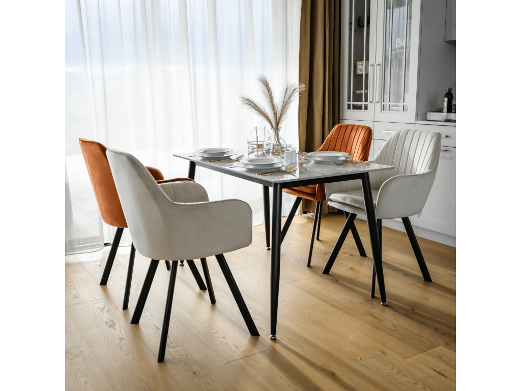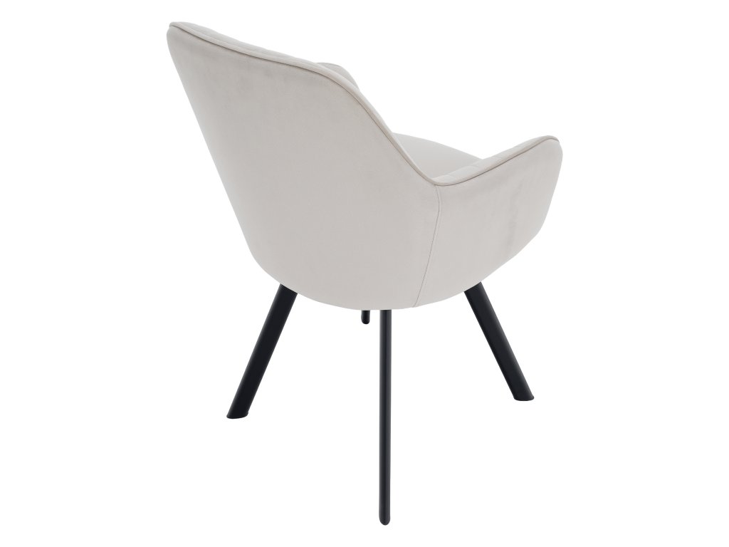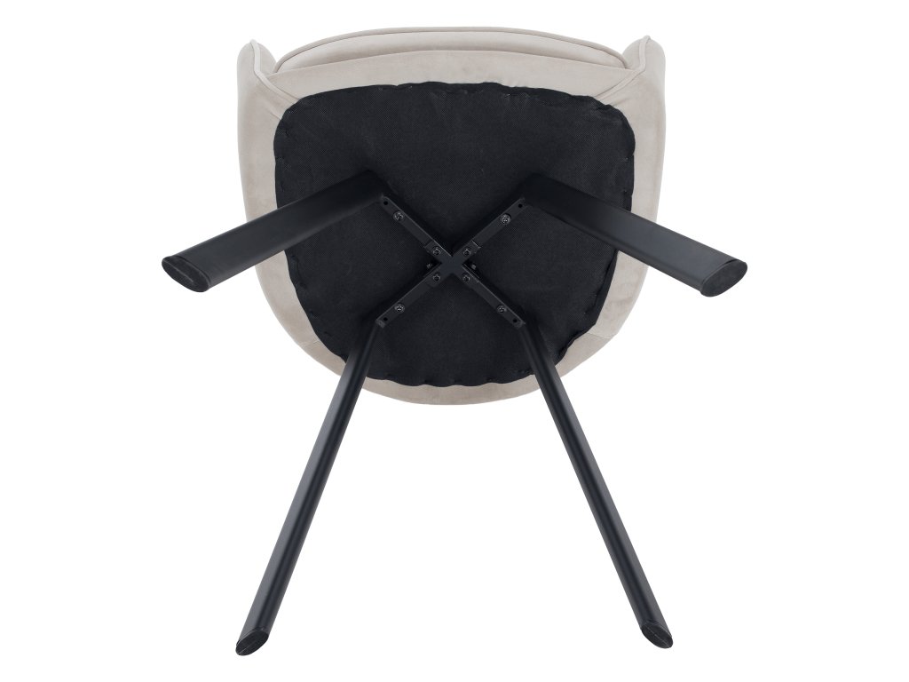 O pohodlí při sezení se stará měkký sedák a ergonomicky tvarované opěrky rukou i zad, které jsou navíc dekorativně prošívané. Díky tomu působí křeslo nejen elegantně, ale i lehce a vzdušně. Kovové nohy v černém provedení zajišťují vysokou stabilitu a dodávají celkovému designu moderní kontrast.