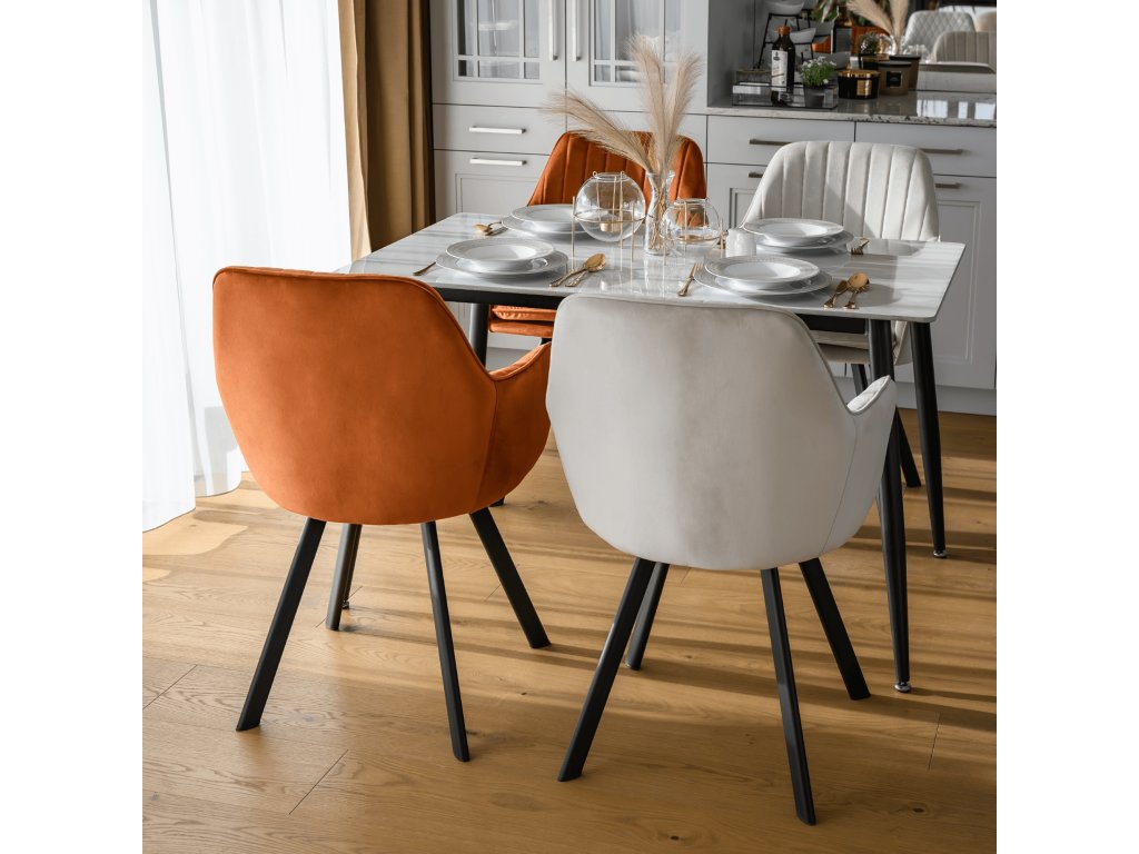 Stylová jídelní židle COMFORTA v barvě terakota přináší pohodlí i eleganci do každé jídelny. Sametové čalounění je měkké na dotek a působí luxusně, zatímco černé kovové nohy...