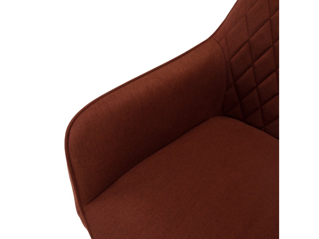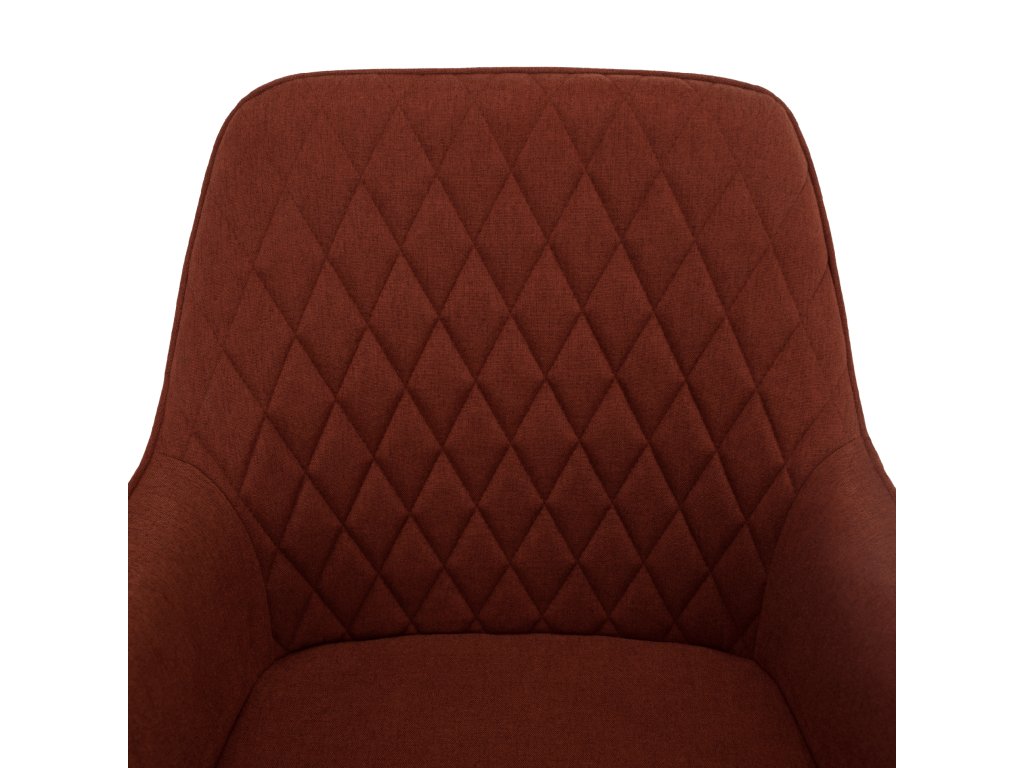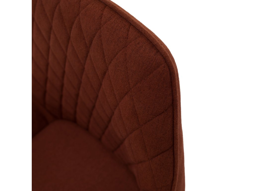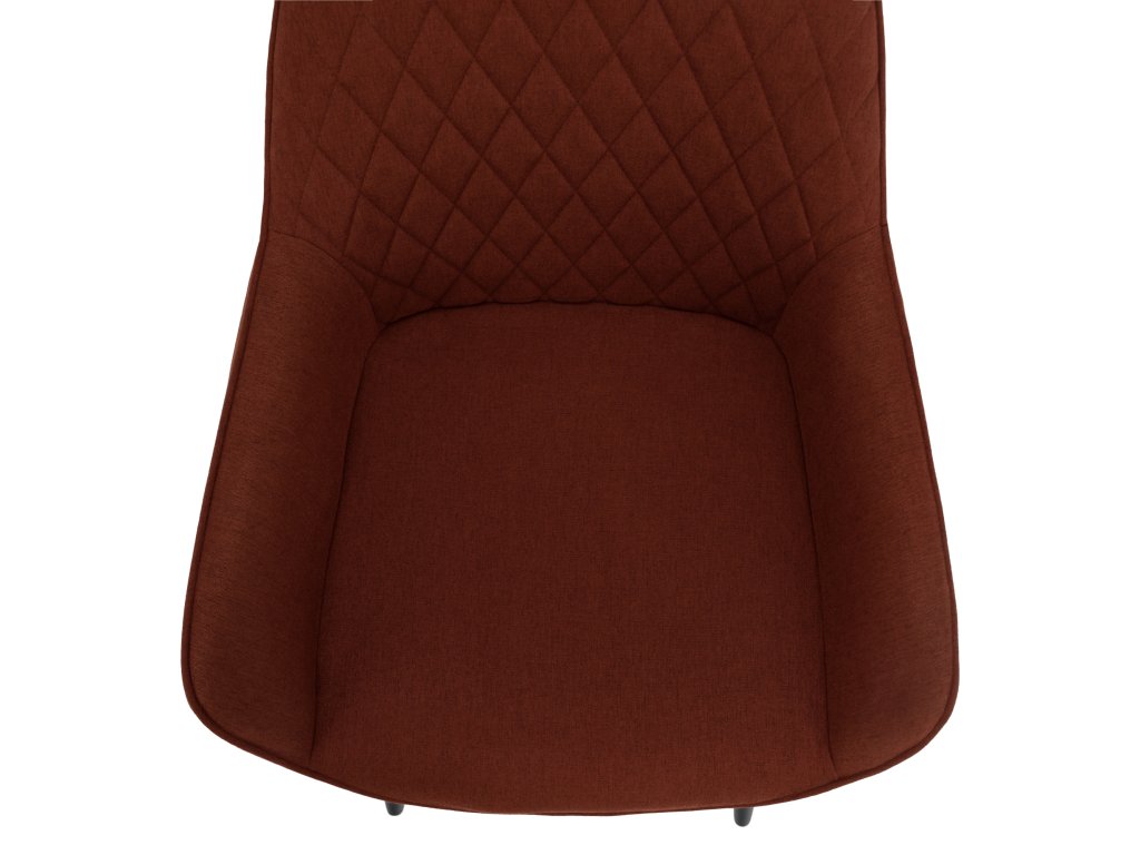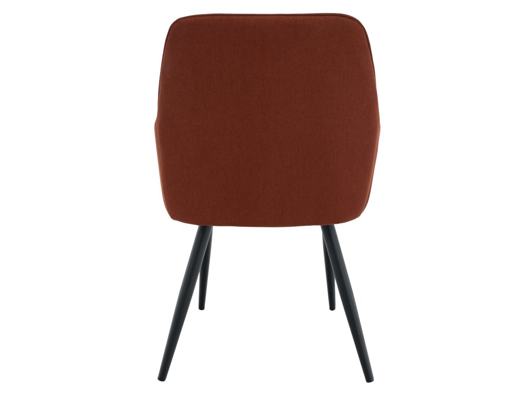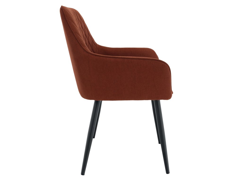 Křeslo EMERA je navrženo pro maximální komfort – měkké čalounění, pohodlný sedák a integrované opěrky na ruce vám zajistí příjemné posezení při jídle, práci nebo relaxaci. Zádová opěrka s dekorativním prošitím dodává celku na šarmu a originalitě. Kovové nohy v černém provedení zajišťují vysokou stabilitu, pevnost a stylový kontrast s teplým odstínem potahu.