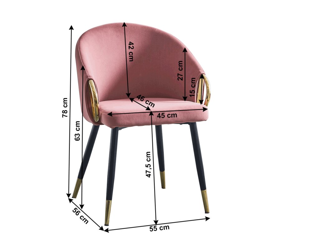 Jídelní křeslo KOVA - látka Velvet, růžová / černá / zlatá