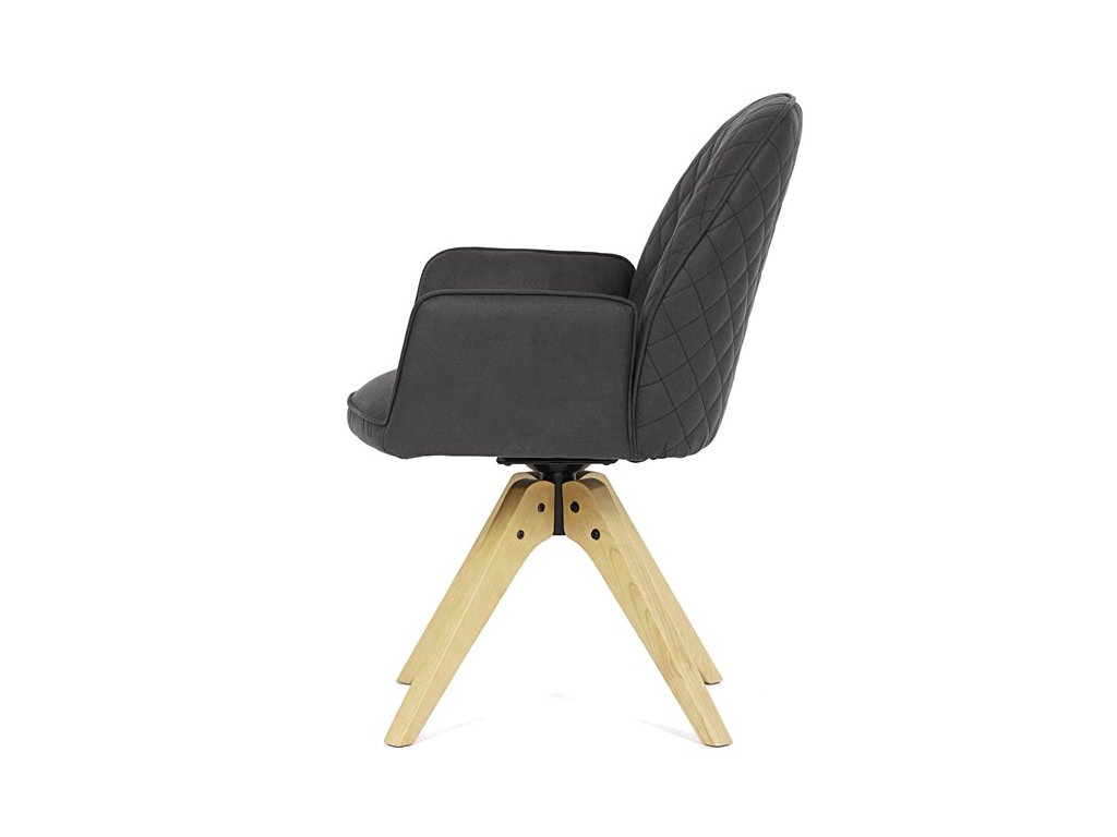 Židle ROBERTA je vybavena revolučním otočným mechanismem s funkcí návratu do základní polohy, který zajišťuje snadnou manipulaci a maximální flexibilitu při každodenním používání. Kombinace kovové konstrukce, masivního dřeva a sofistikovaného matného dekoru vytváří elegantní a odolný doplněk vašeho interiéru.