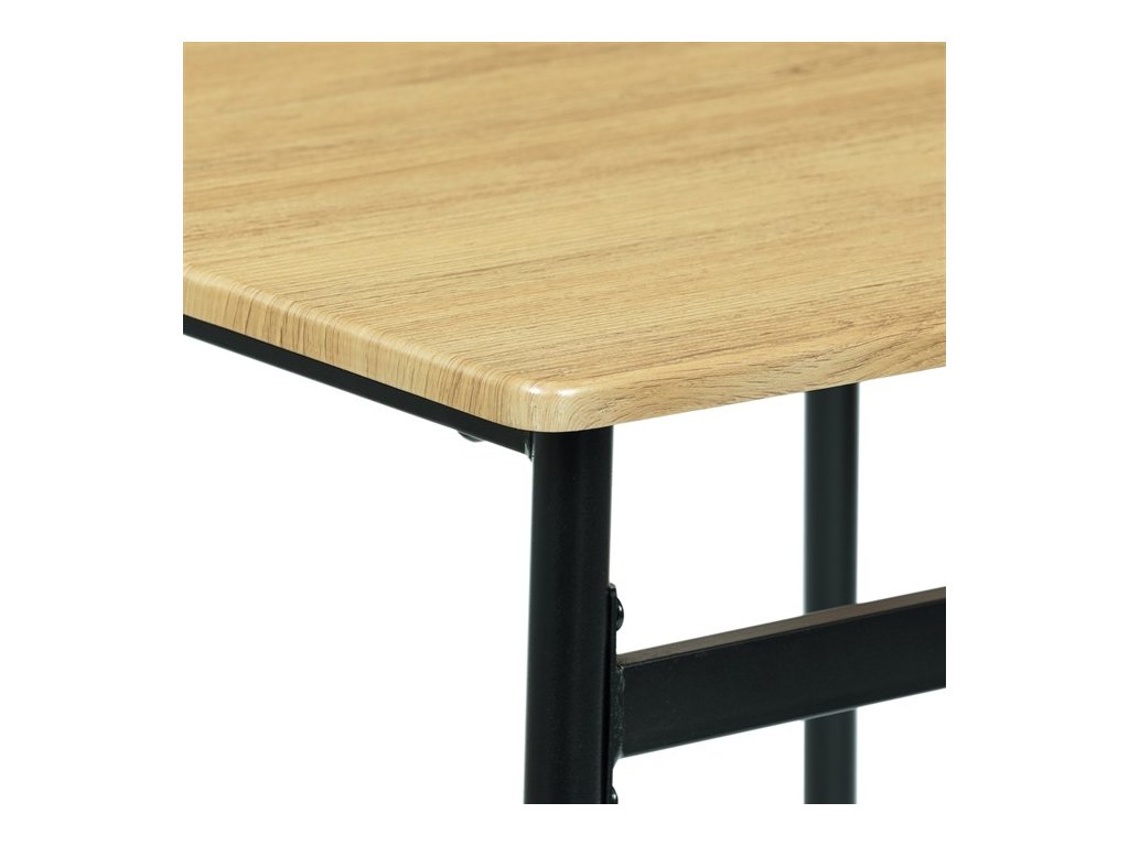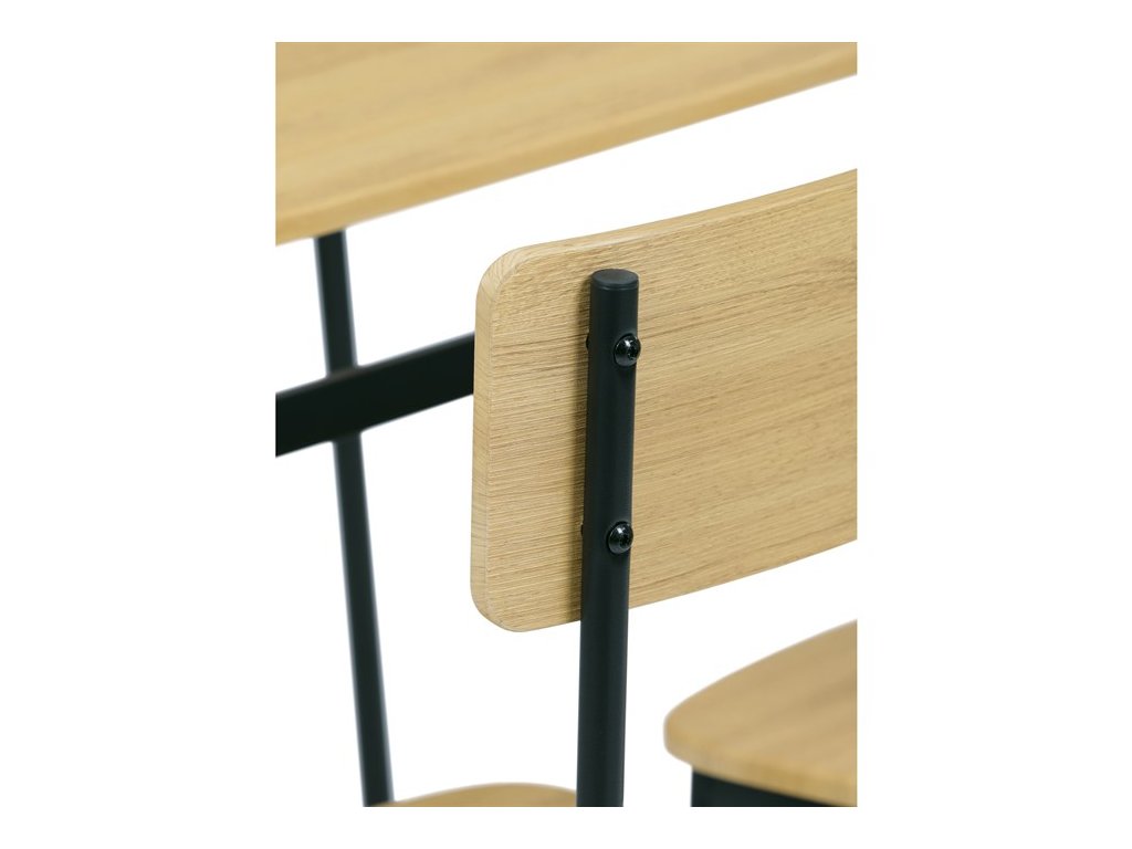 Jídelní set CORTINA přináší dokonalou kombinaci přírodního vzhledu a industriálního stylu. Stůl s deskou v dekoru divokého dubu působí hřejivě a přirozeně, zatímco černé kovové nohy dodávají celé sestavě moderní charakter a pevnost. Čtyři židle se stejným designem doplňují stůl jak vizuálně, tak i funkčně – ergonomicky tvarované a pohodlné sedáky zajistí komfort při každodenním stolování.