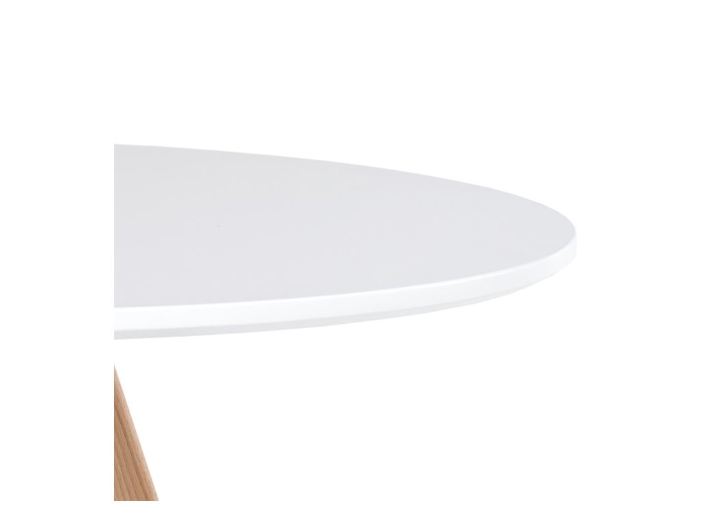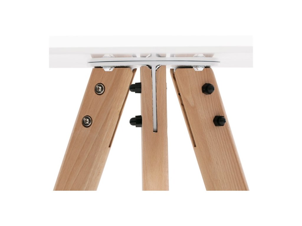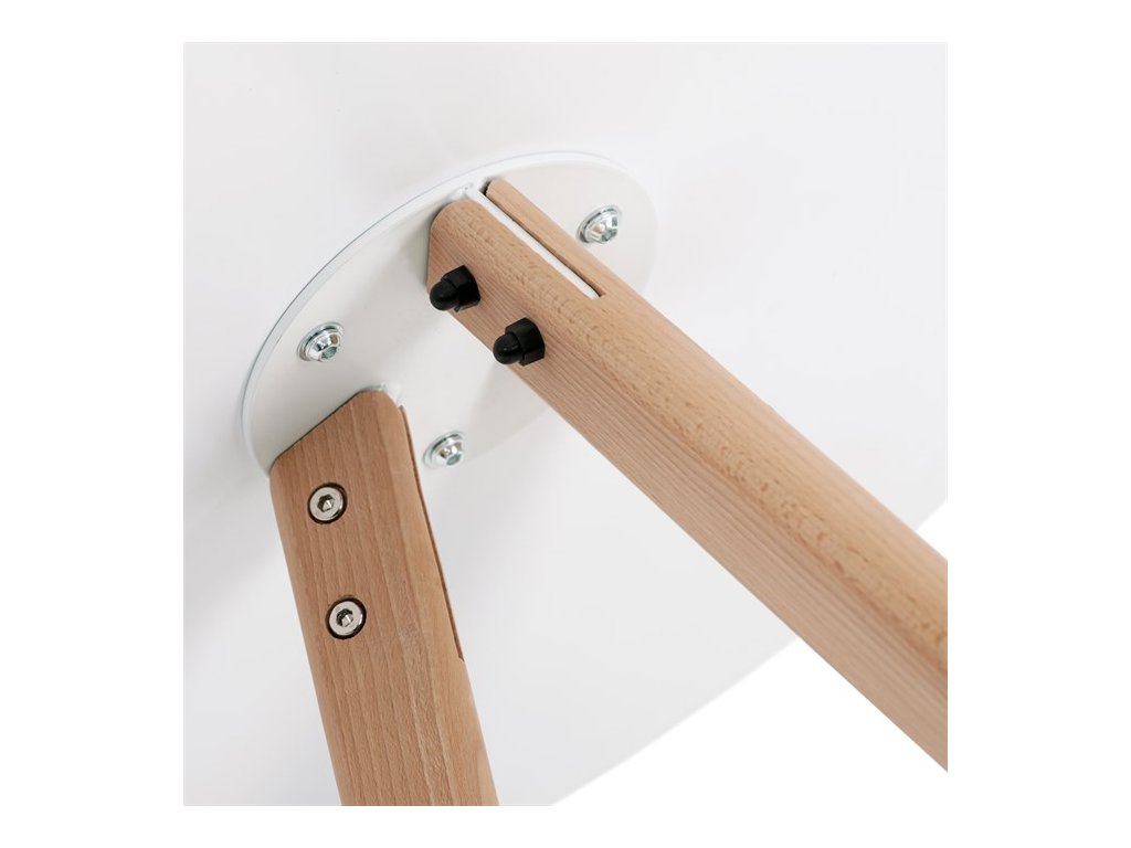 Základ tohoto nádherného kusu spočívá na třech nohách z masivního dřeva, které se vyznačují teplou hnědou barvou. Tento stabilní typ základny zajistí odolnost a spolehlivost, což jsou vlastnosti, které zákazníci při dlouhodobém používání velmi ocení. Harmonické spojení nohou z masivního dřeva s horní deskou z MDF s matnou povrchovou úpravou navíc vnáší do interiéru nádech přírody a jemně zvyšuje pohodlí i klid každého obytného prostoru.