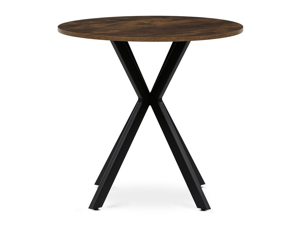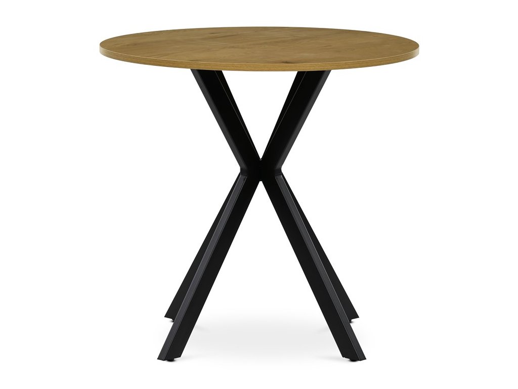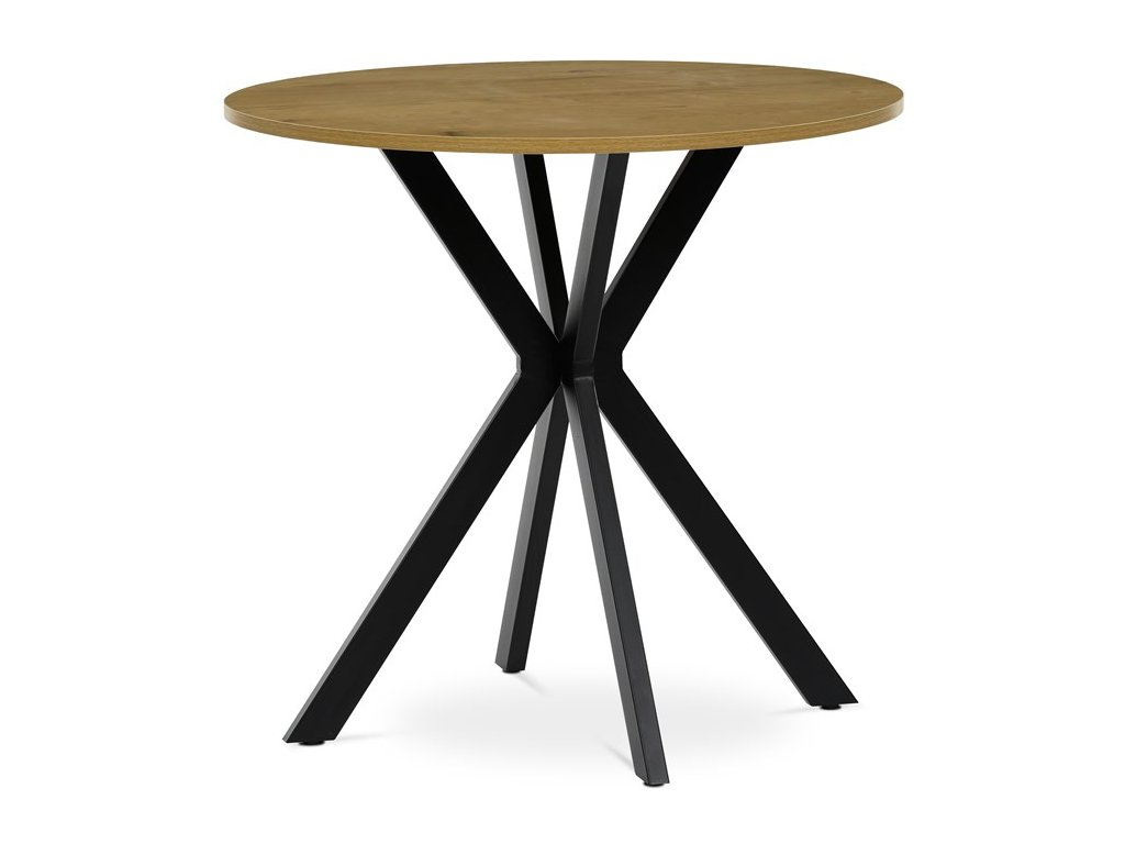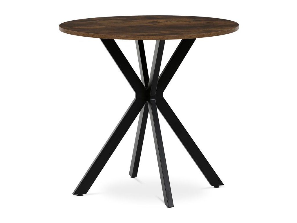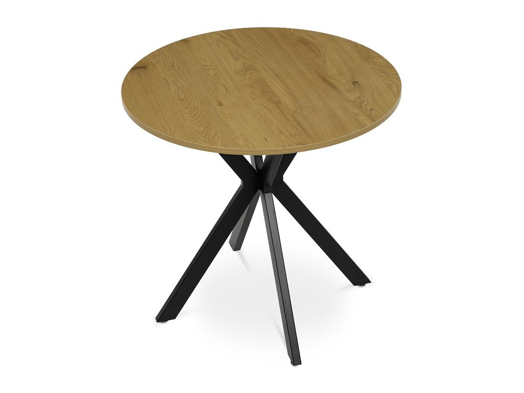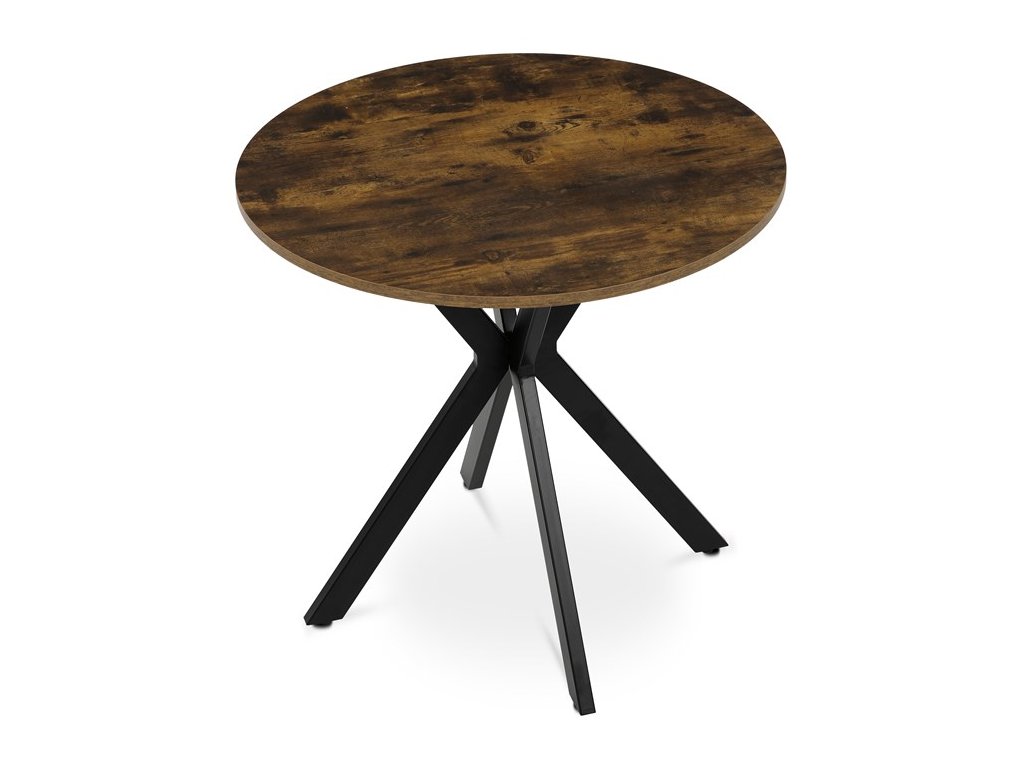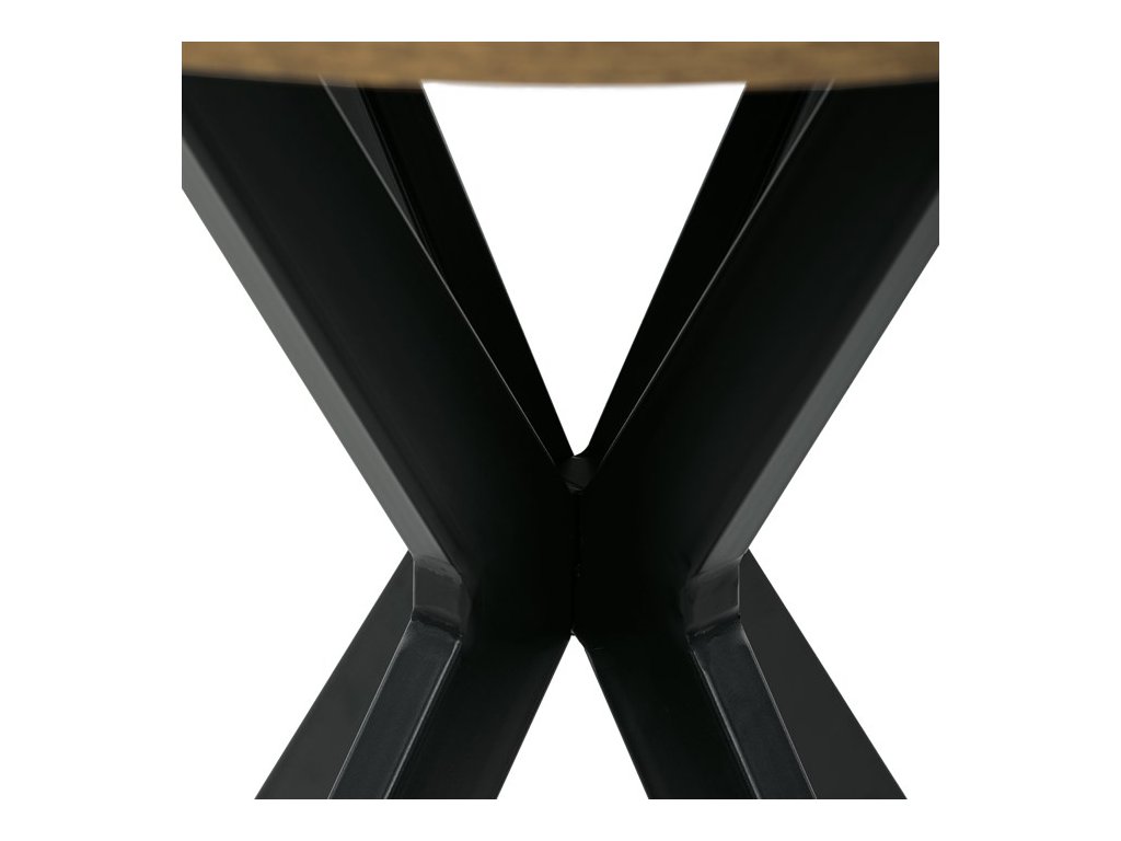 Jídelní kulatý stůl HALVOR kombinuje přírodní desku z MDF v dekoru divokého dubu nebo starého dřeva s robustní černou kovovou podnoží ve tvaru propletených nohou. Tento originální design zajišťuje nejen vysokou stabilitu, ale i moderní industriální vzhled, který se stane dominantou každého interiéru. Deska je opatřena ABS hranou chránící před poškozením a kovová podnož je upravena černým práškovým lakem pro vyšší odolnost proti korozi a opotřebení. Stůl je navíc vybaven rektifikačními nožkami, které umožňují vyrovnání na nerovném povrchu a zajišťují perfektní stabilitu. Díky průměru 80 cm je ideální volbou pro menší jídelny či kavárny, kde kulatý tvar podporuje příjemnou atmosféru a snadnou komunikaci mezi všemi u stolu.