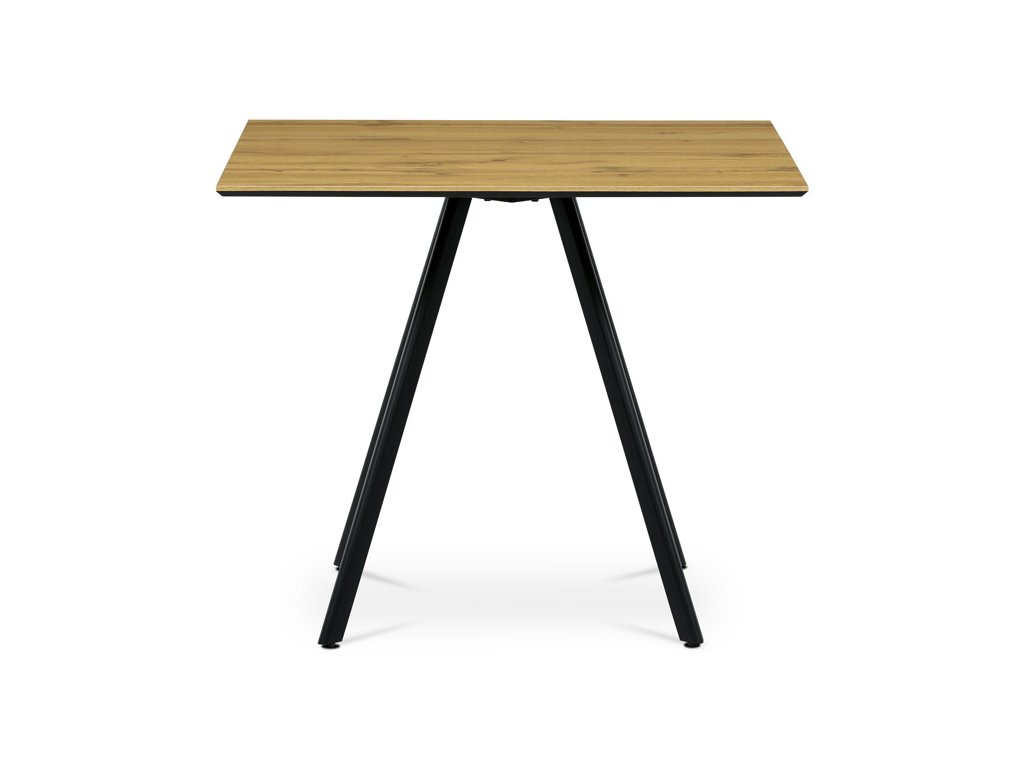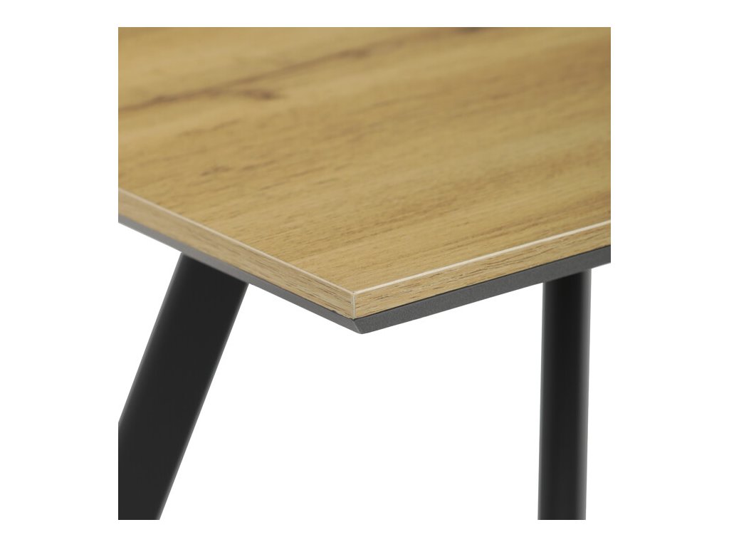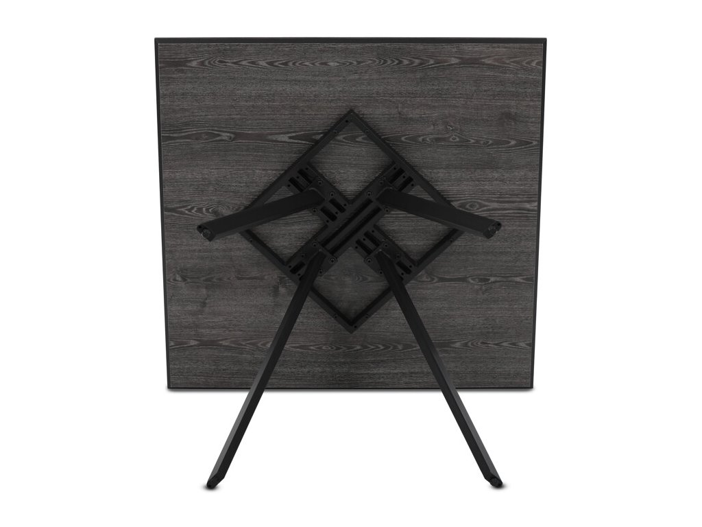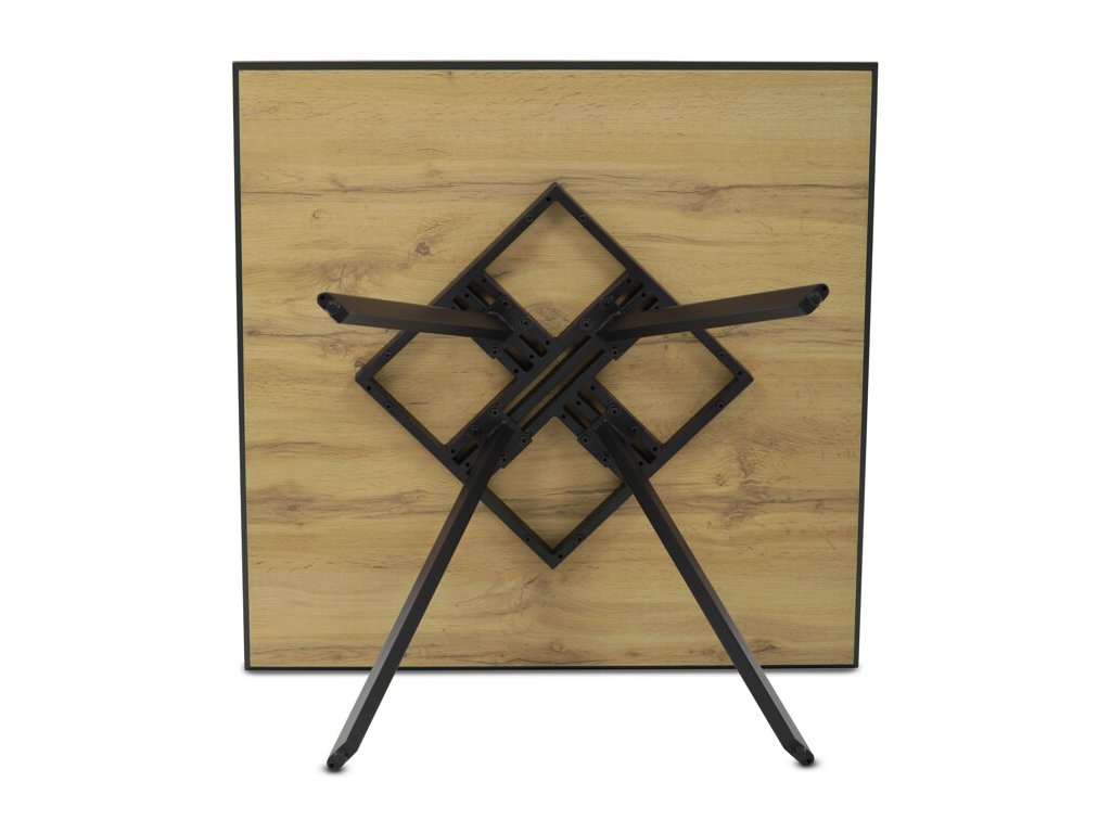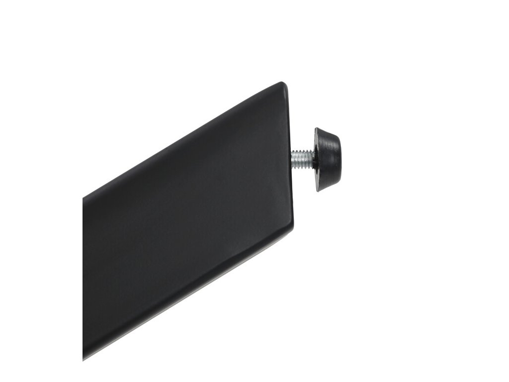 Stabilní základ tvoří černá kovová konstrukce se čtyřmi zkosenými nohami, jež podtrhují moderní a lehce industriální charakter stolu. Díky rektifikačním patkám lze stůl snadno vyrovnat i na nerovném povrchu, což zajišťuje maximální stabilitu a pohodlí při sezení.
