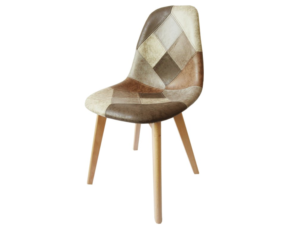 Jídelní židle CASCO - plast, ekokůže, patchwork / buk