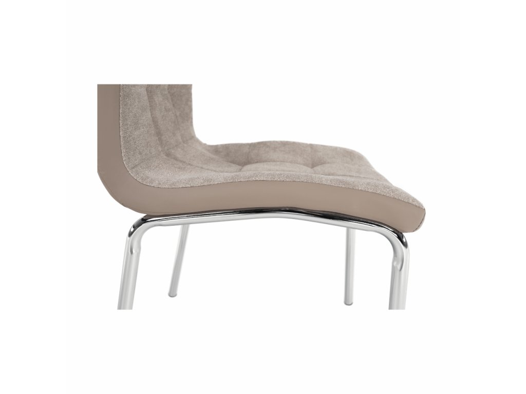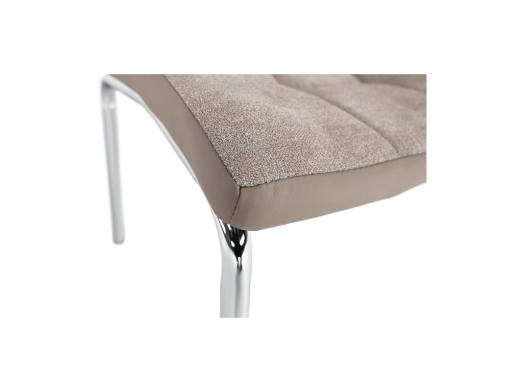 Dodejte své jídelně styl a harmonii s elegantní jídelní židlí CLARISA, která v sobě spojuje moderní design, kvalitní materiály a praktičnost. Béžové čalounění z látky a ekokůže působí vkusně a univerzálně, díky čemuž se snadno kombinuje s různými styly interiéru. Celek podtrhují chromované nohy, které židli dodávají lehkost a moderní vzhled.