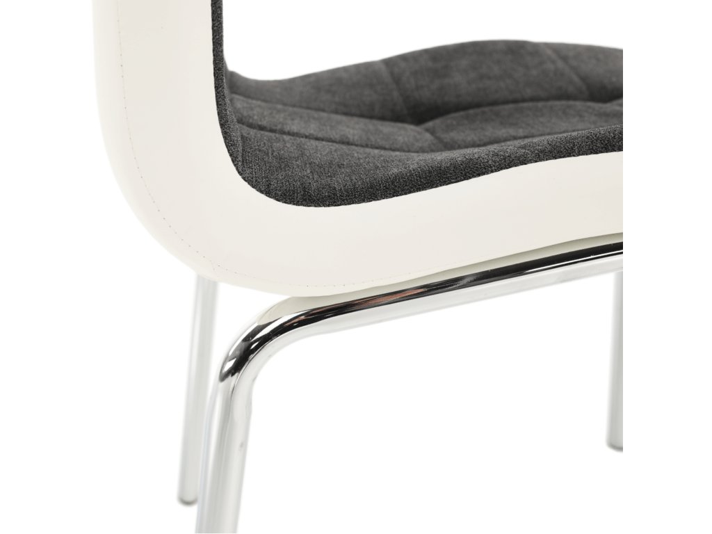 Dodejte své jídelně stylový vzhled s elegantní jídelní židlí CLARISA, která zaujme moderním designem a praktickým provedením. Kombinace tmavě šedé látky a bílé ekokůže vytváří atraktivní kontrast, který působí svěže a nadčasově. Chromované nohy židli dodávají lehkost a moderní lesk, díky čemuž se stane ozdobou každé jídelny.