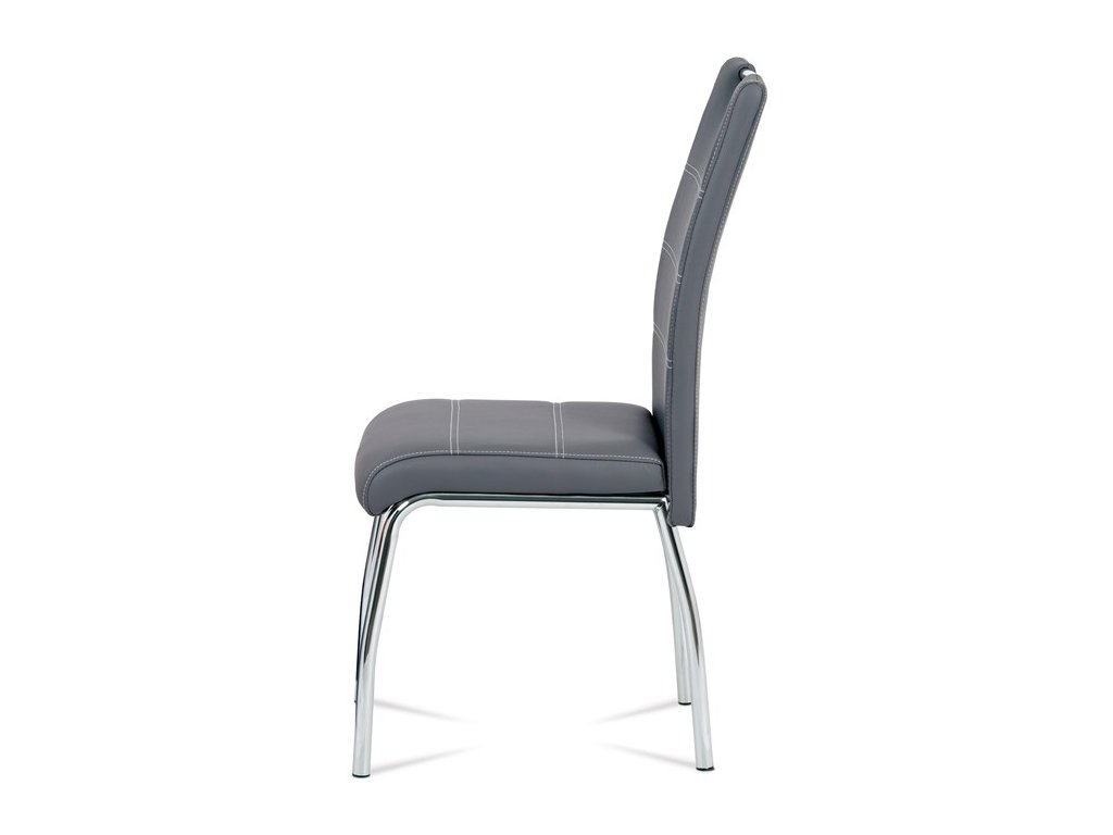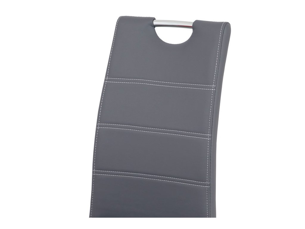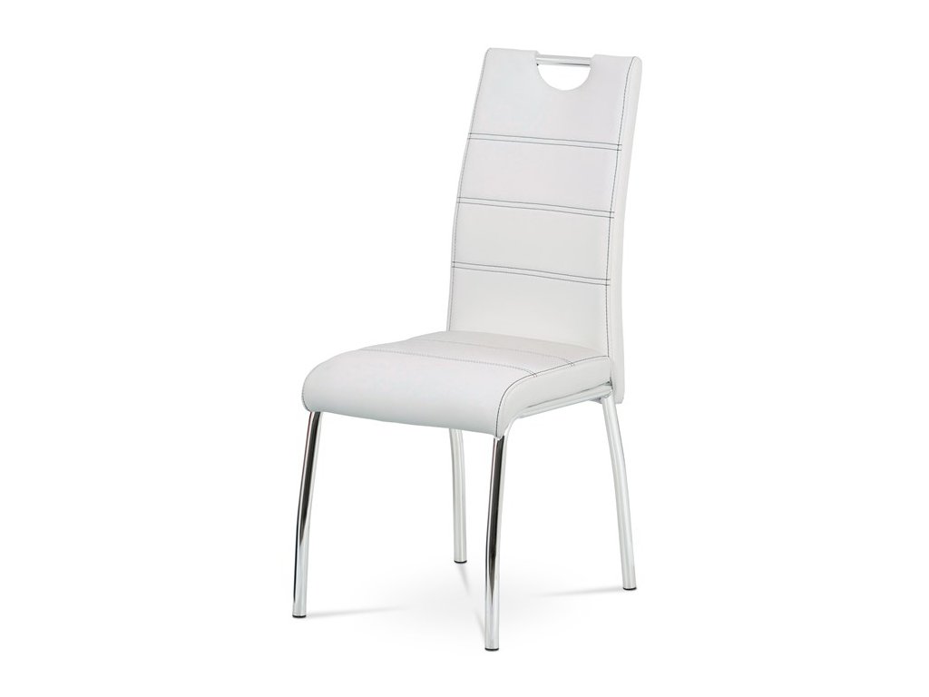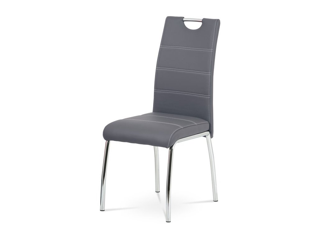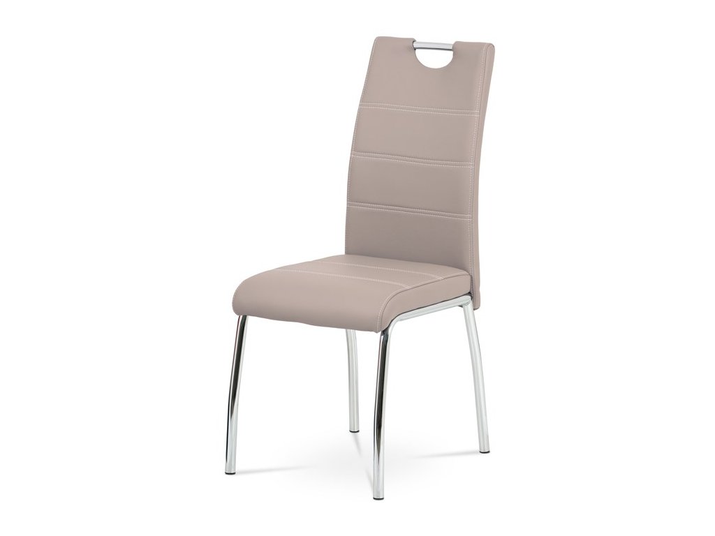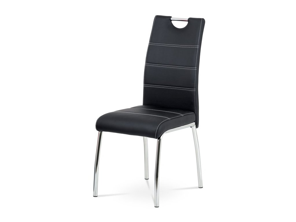 Jídelní židle DENIELE s potahem z kvalitní ekokůže spojuje moderní vzhled s komfortním sezením. Sedák i opěradlo jsou čalouněné ekokůží s dekorativním prošitím, které zvýrazňuje elegantní tvar židle. V horní části opěráku se nachází praktické madlo, které usnadňuje přemísťování židle. Stabilní kovové nohy s chromovanou povrchovou úpravou zajišťují pevnost a dlouhou životnost. Židle nemá područky ani možnost výškového nastavení, díky čemuž je kompaktní a snadno umístitelná do různých prostor.