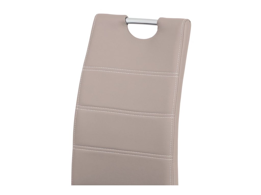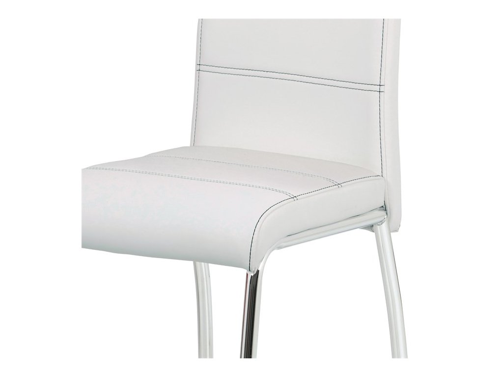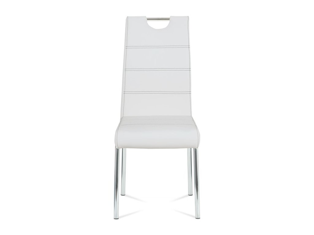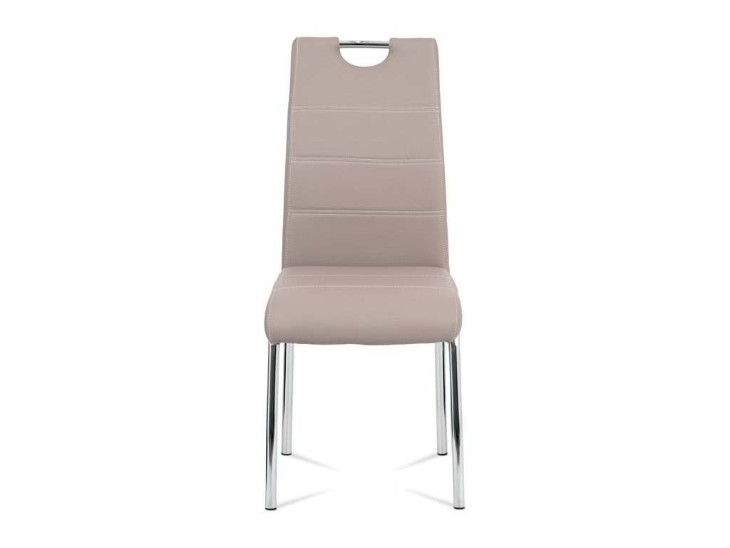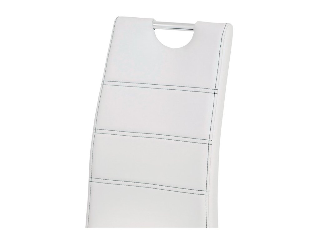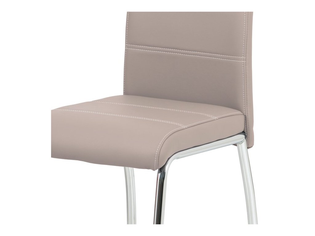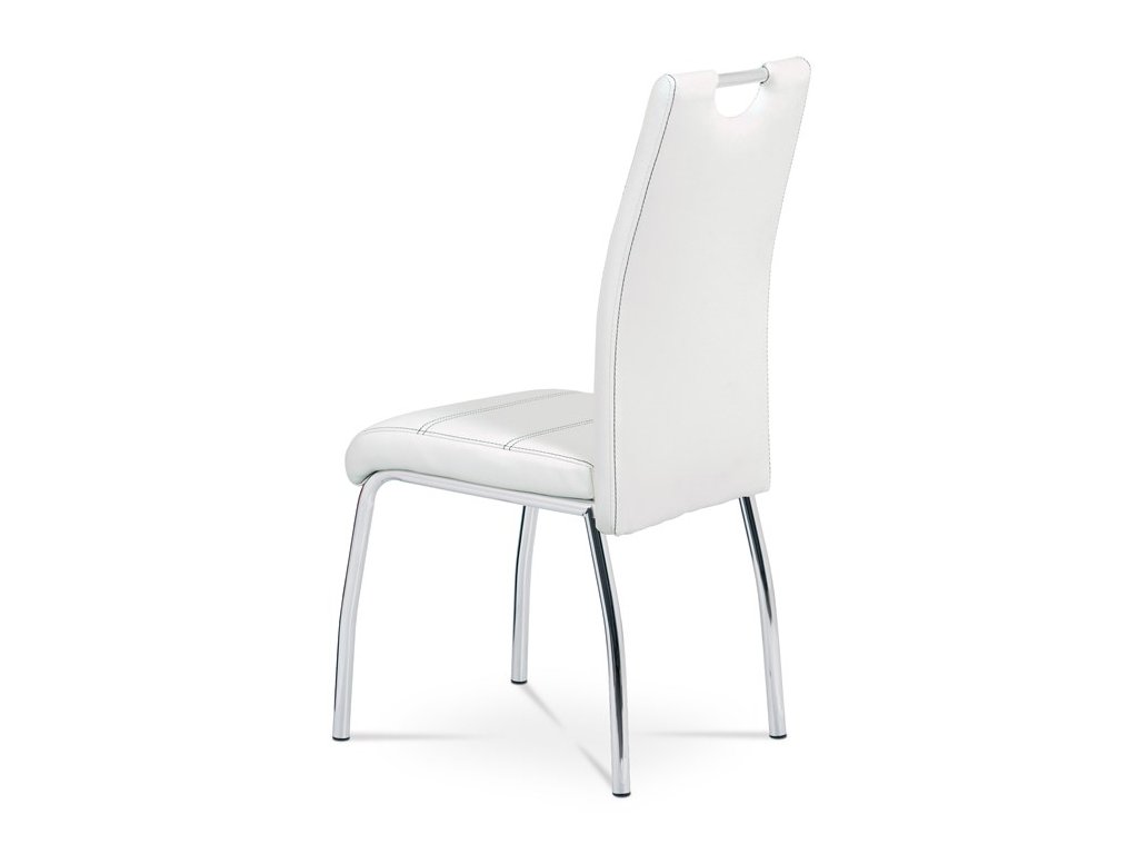Jídelní židle DENIELE s potahem z kvalitní ekokůže spojuje moderní vzhled s komfortním sezením. Sedák i opěradlo jsou čalouněné ekokůží s dekorativním prošitím, které zvýrazňuje elegantní tvar židle. V horní části opěráku se nachází praktické madlo, které usnadňuje přemísťování židle. Stabilní kovové nohy s chromovanou povrchovou úpravou zajišťují pevnost a dlouhou životnost. Židle nemá područky ani možnost výškového nastavení, díky čemuž je kompaktní a snadno umístitelná do různých prostor.