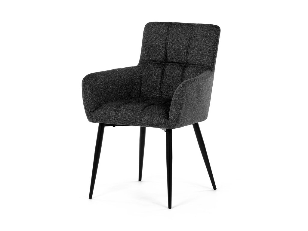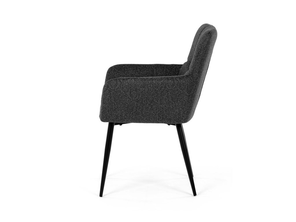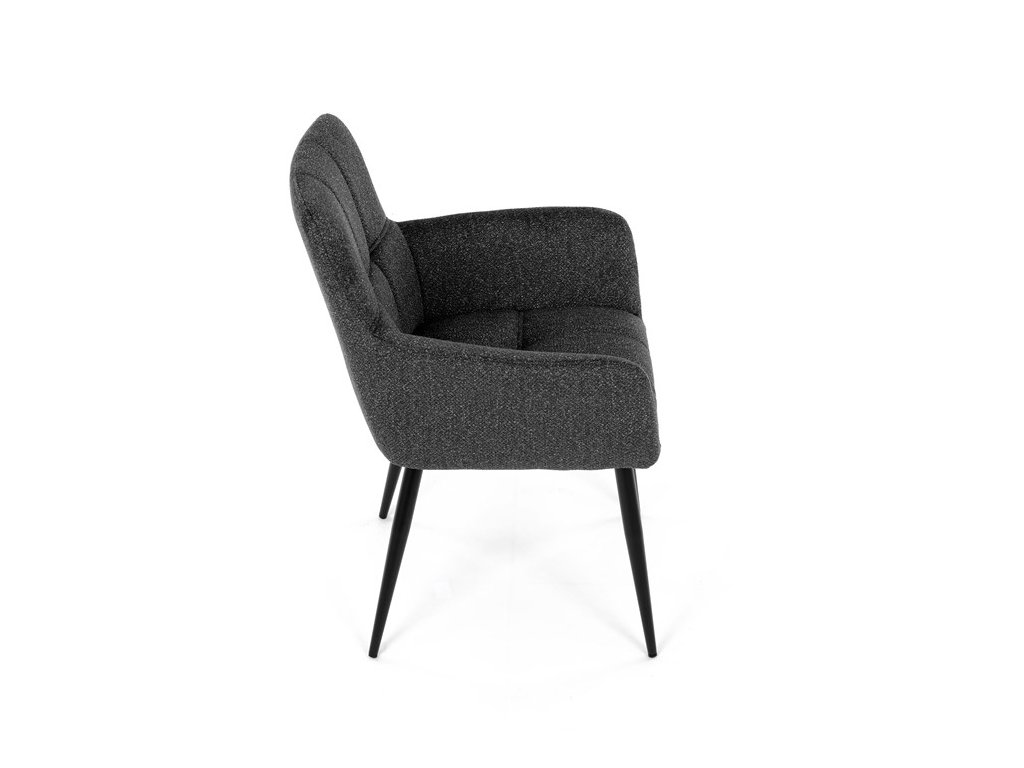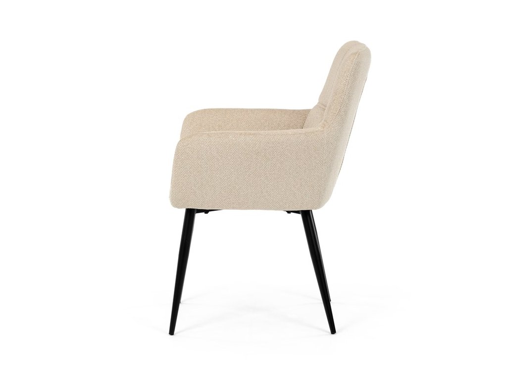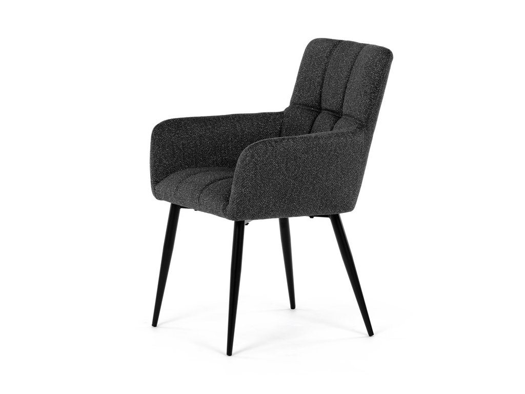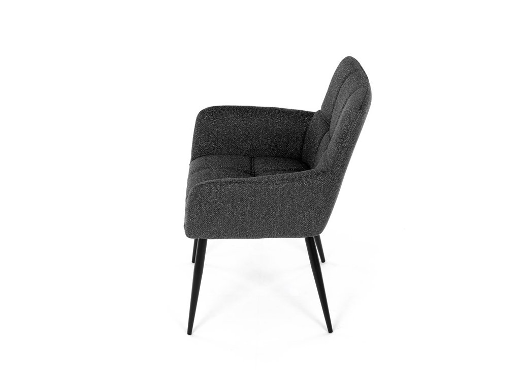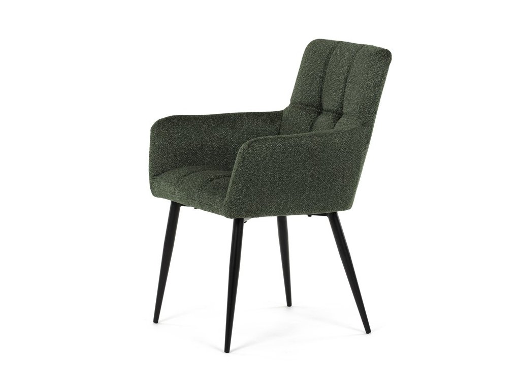 Jídelní židle KLAUDIE – styl a pohodlí pro každý interiérJídelní židle KLAUDIE kombinuje moderní eleganci s praktickým komfortem. Čalounění z kvalitní látky spolu s měkkou výplní z PU pěny zajišťuje pohodlné sezení i při delších chvílích u stolu. Stabilní černé kovové nohy dodávají židli odolnost a lehký industriální nádech. Područky poskytují dodatečný komfort. KLAUDIE je ideální volbou pro domácí jídelny i komerční prostory, kde se klade důraz na design a pohodlí.