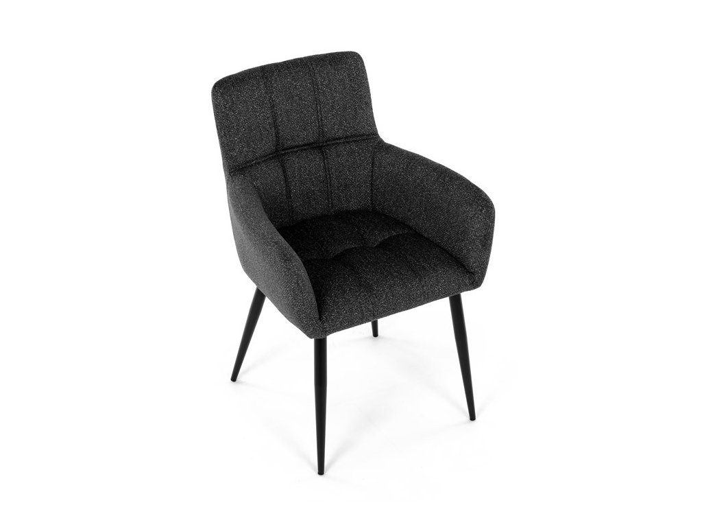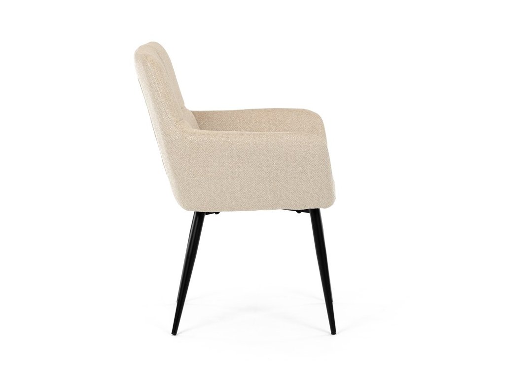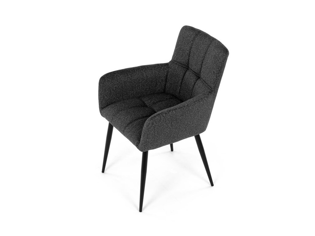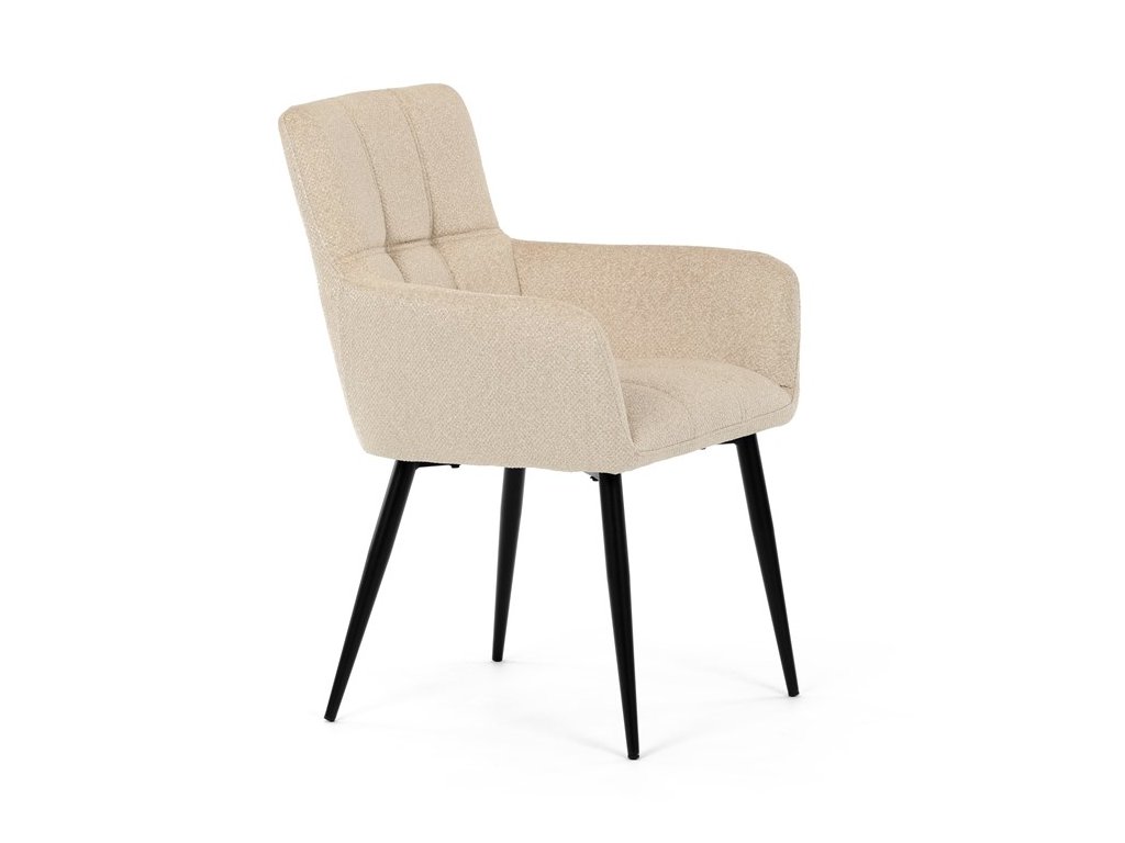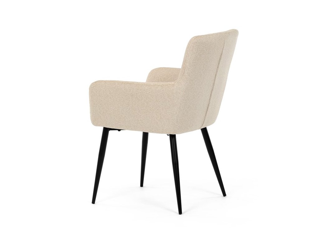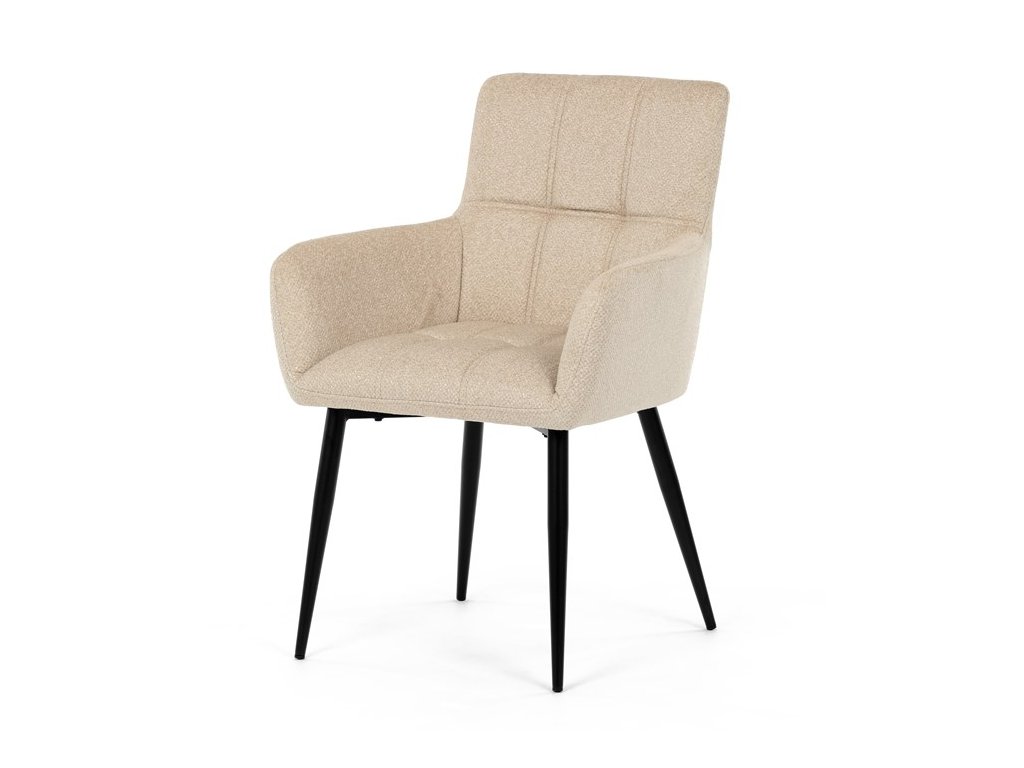 Jídelní židle KLAUDIE – styl a pohodlí pro každý interiérJídelní židle KLAUDIE kombinuje moderní eleganci s praktickým komfortem. Čalounění z kvalitní látky spolu s měkkou výplní z PU pěny zajišťuje pohodlné sezení i při delších chvílích u stolu. Stabilní černé kovové nohy dodávají židli odolnost a lehký industriální nádech. Područky poskytují dodatečný komfort. KLAUDIE je ideální volbou pro domácí jídelny i komerční prostory, kde se klade důraz na design a pohodlí.