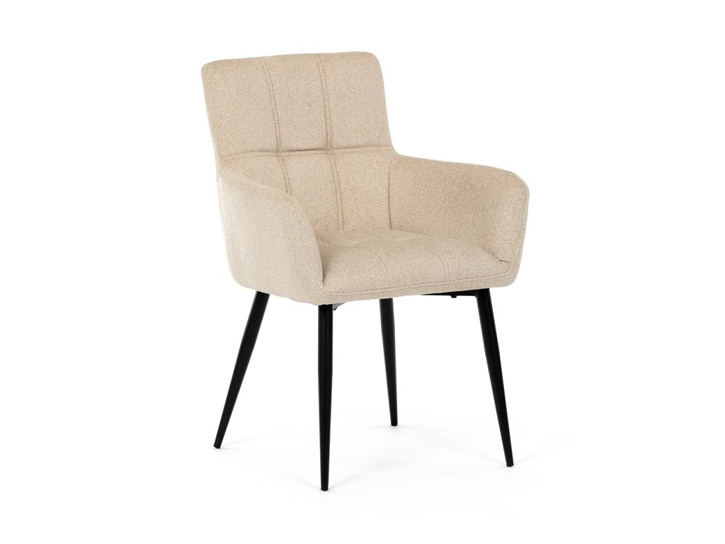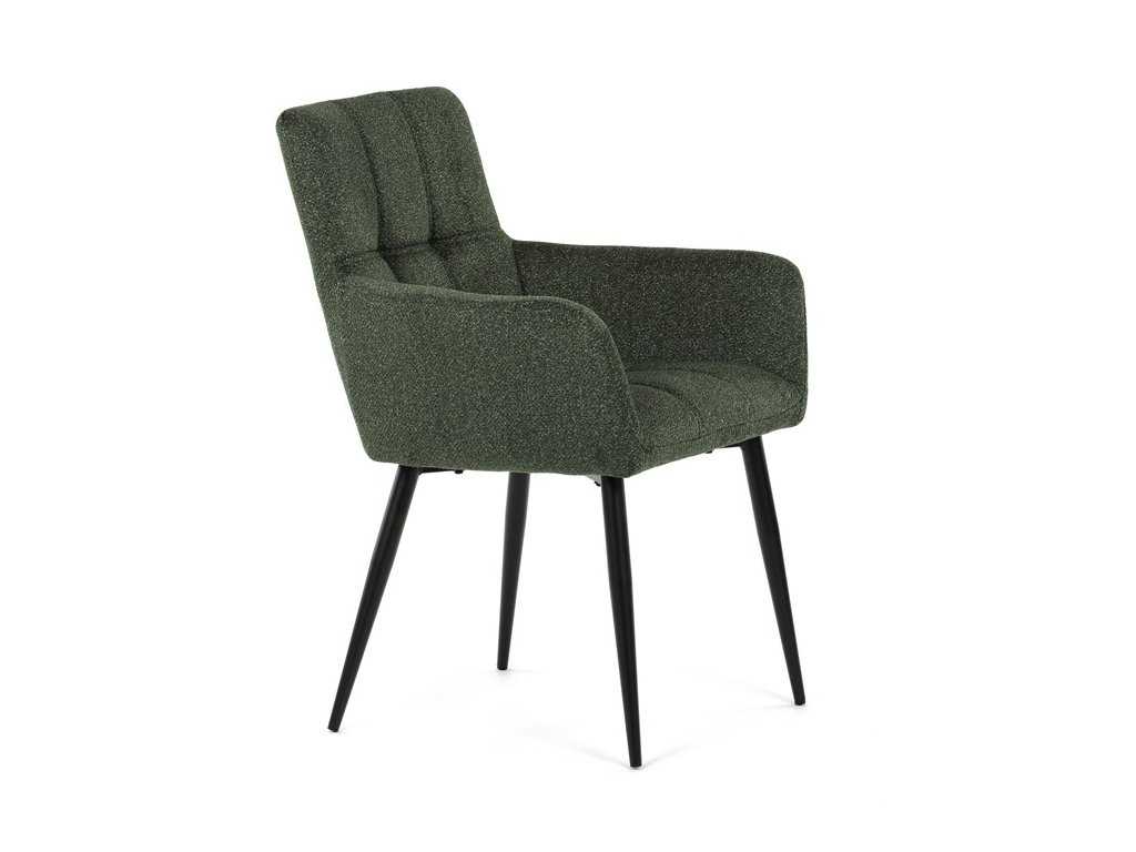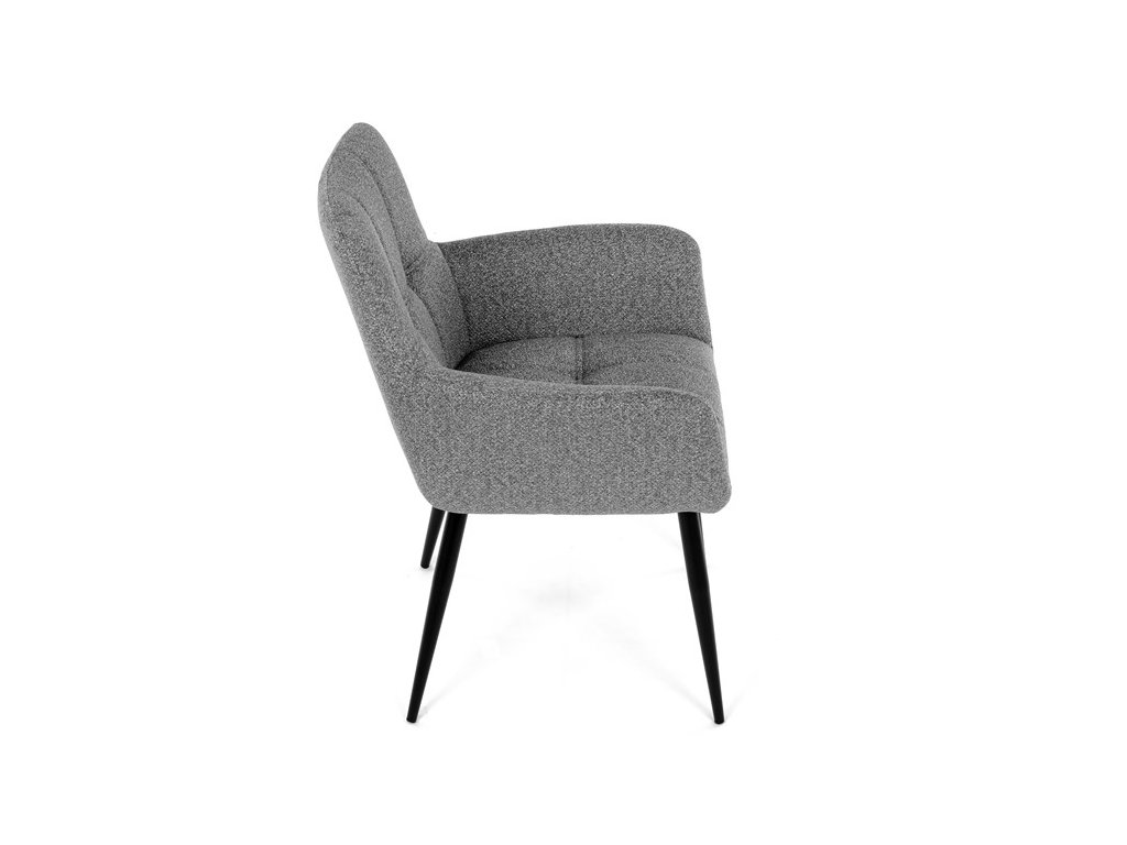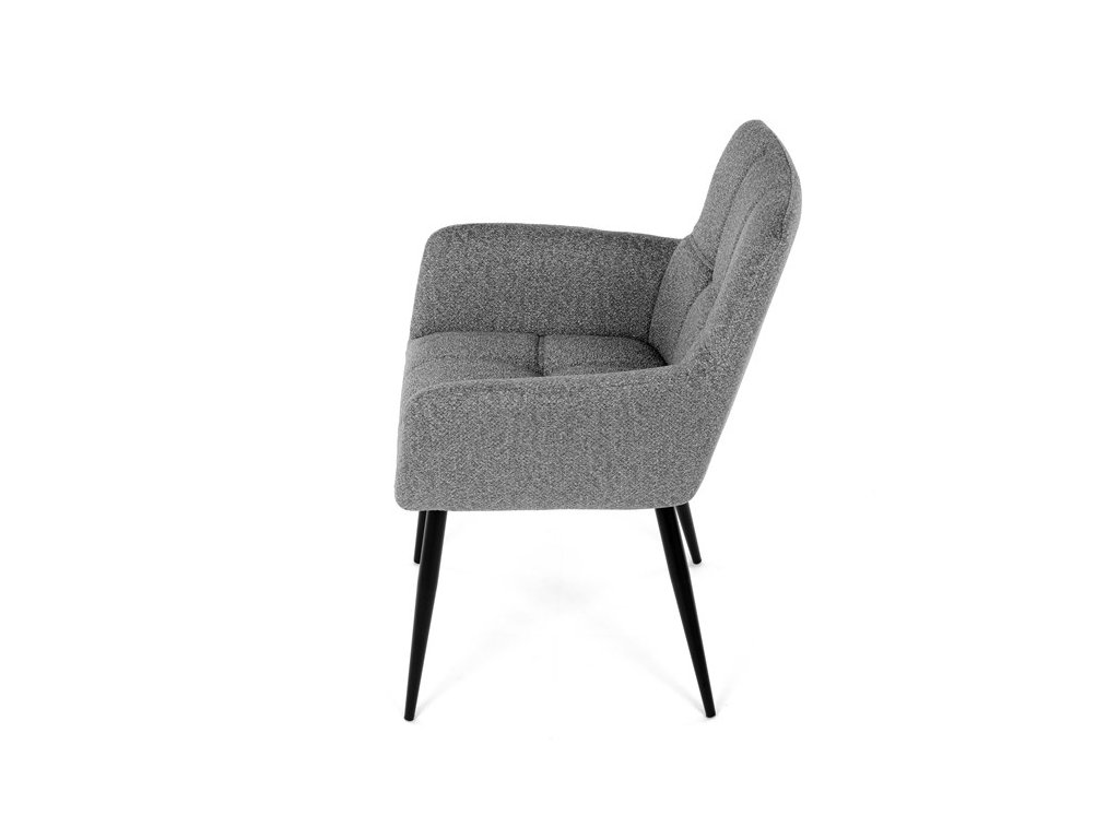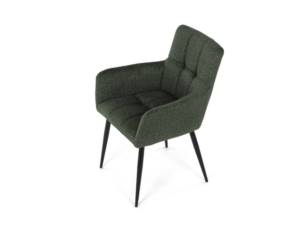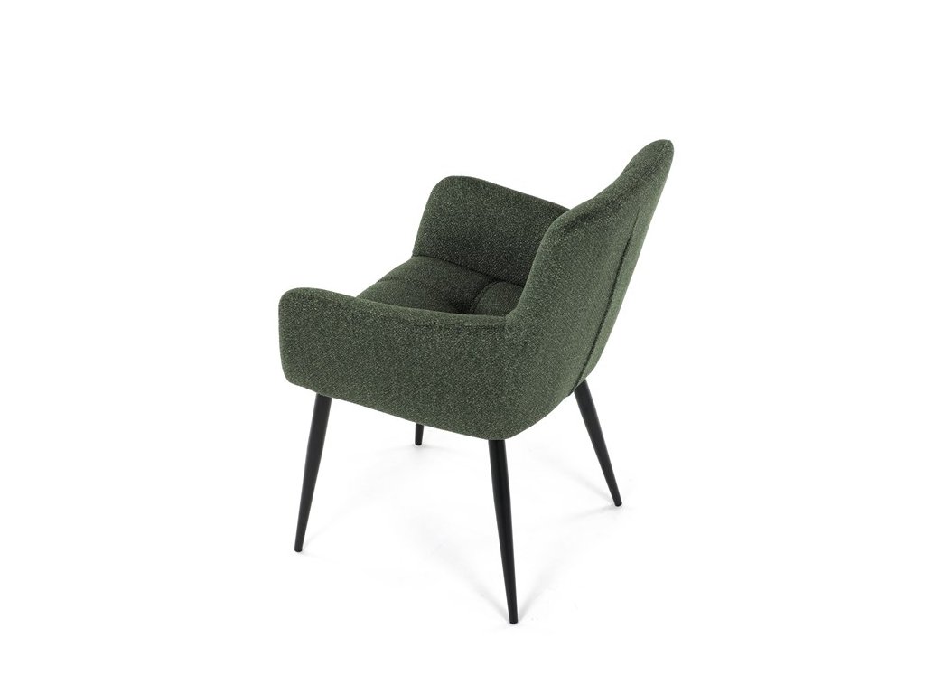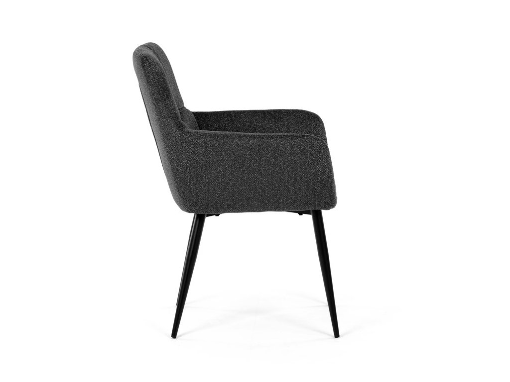Jídelní židle KLAUDIE – styl a pohodlí pro každý interiérJídelní židle KLAUDIE kombinuje moderní eleganci s praktickým komfortem. Čalounění z kvalitní látky spolu s měkkou výplní z PU pěny zajišťuje pohodlné sezení i při delších chvílích u stolu. Stabilní černé kovové nohy dodávají židli odolnost a lehký industriální nádech. Područky poskytují dodatečný komfort. KLAUDIE je ideální volbou pro domácí jídelny i komerční prostory, kde se klade důraz na design a pohodlí.