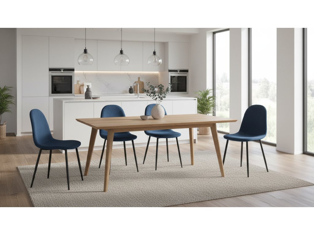 Odolné nohy z matného černého kovu dodávají židli moderní charakter a zároveň zajišťují vysokou stabilitu. Díky minimalistickému a nadčasovému designu se židle snadno kombinuje s moderními, industriálními i klasickými interiéry. Absence područek a otočného mechanismu z ní dělá praktický kousek, který se pohodlně zasune pod většinu jídelních stolů a nezabírá zbytečně prostor.