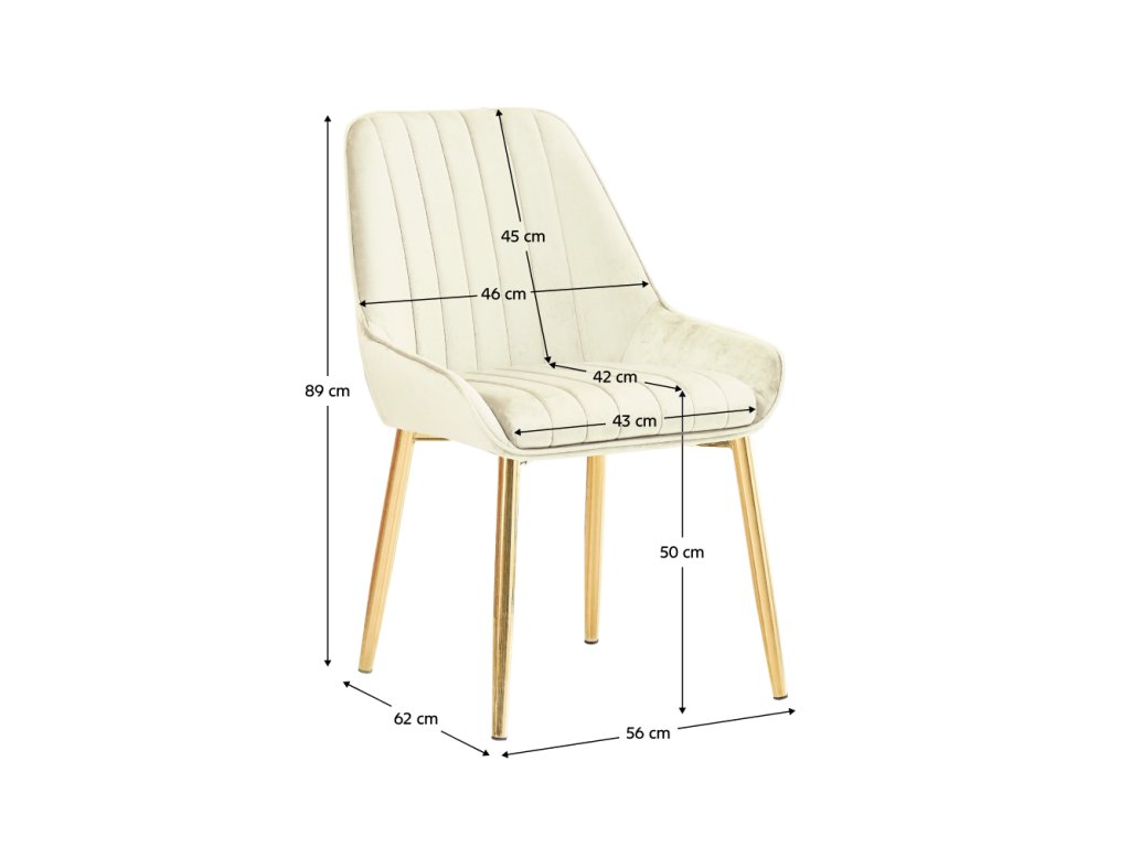 Jídelní židle LUXURY v béžovém sametu je dokonalým spojením luxusního designu a pohodlného sezení. Sametová látka Velvet v jemném odstínu béžové působí elegantně, je příjemná na dotek a zároveň velmi odolná pro každodenní použití. Stabilní kovové nohy ve zlatém provedení gold chrom podtrhují exkluzivní vzhled a dodávají židli nádech sofistikovanosti.