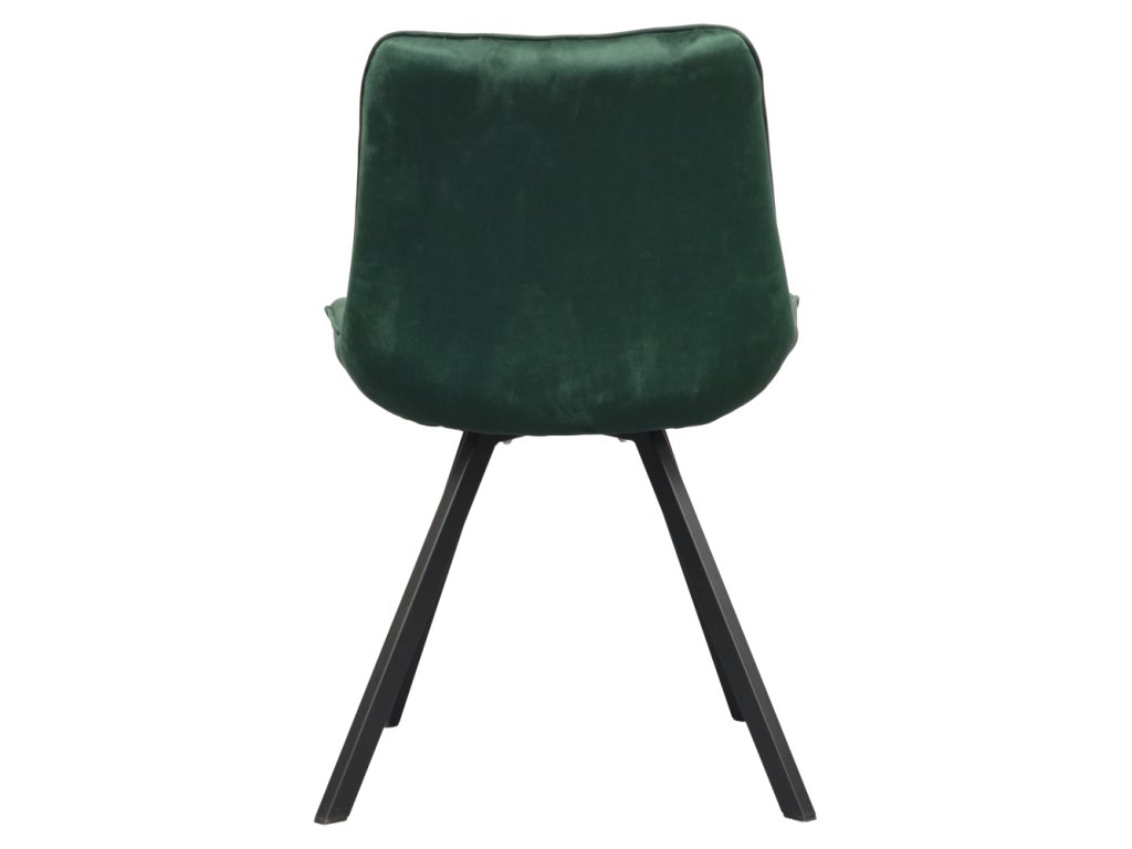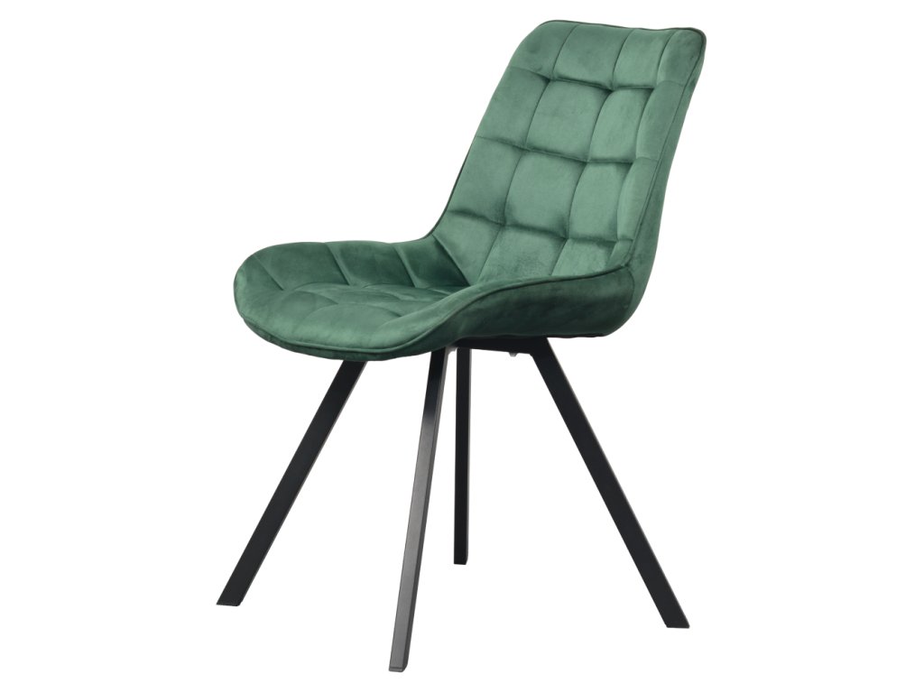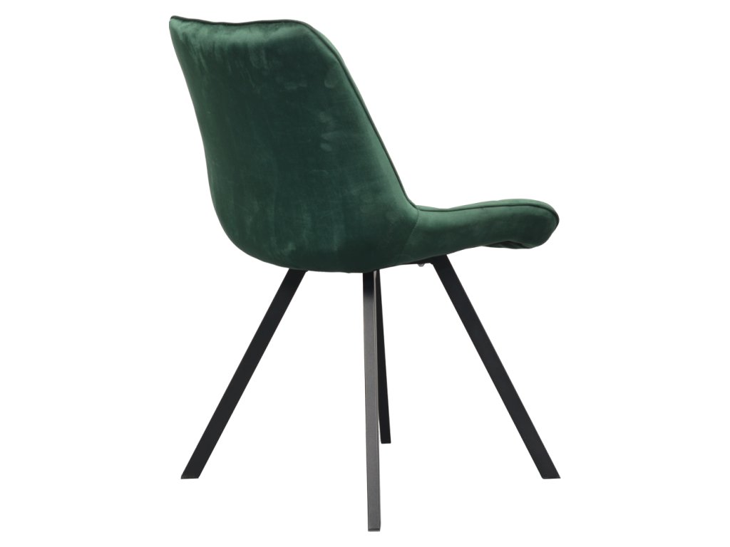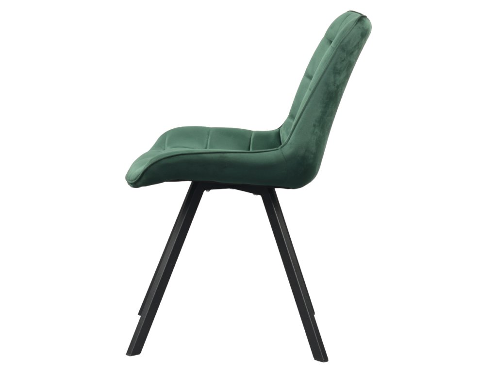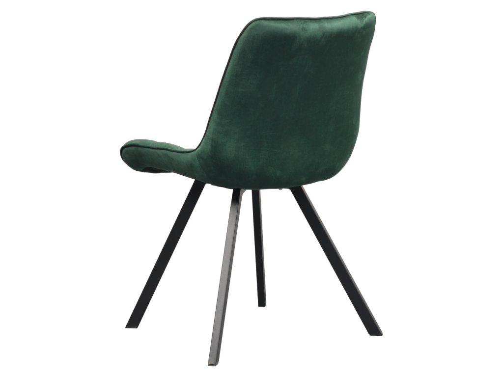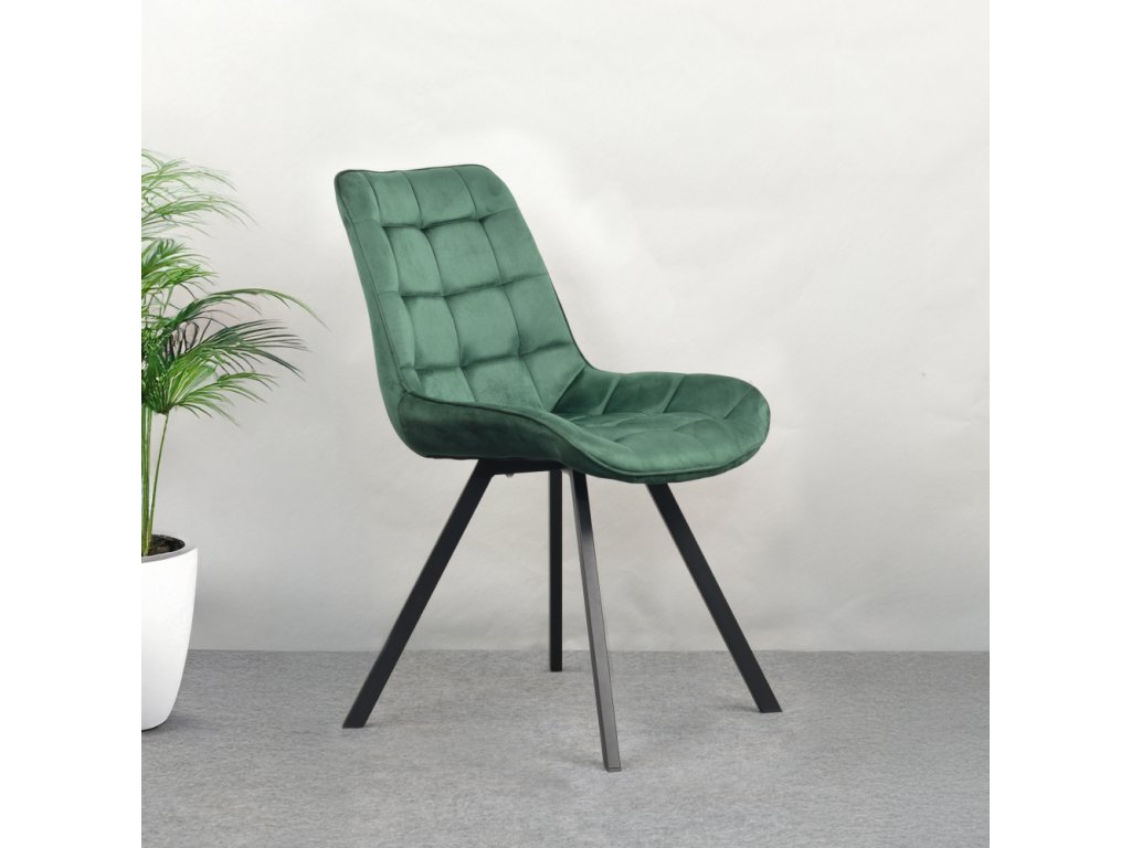Sedák i opěrka jsou pohodlně polstrované, takže se v židli budete cítit příjemně i při delším sezení. Dekorativní prošívání dodává židli elegantní detail, který zvýrazňuje její kvalitní zpracování a moderní styl. Stabilitu zajišťují černé kovové nohy, které nejen skvěle kontrastují s tmavě zeleným čalouněním, ale také poskytují vysokou pevnost a odolnost.